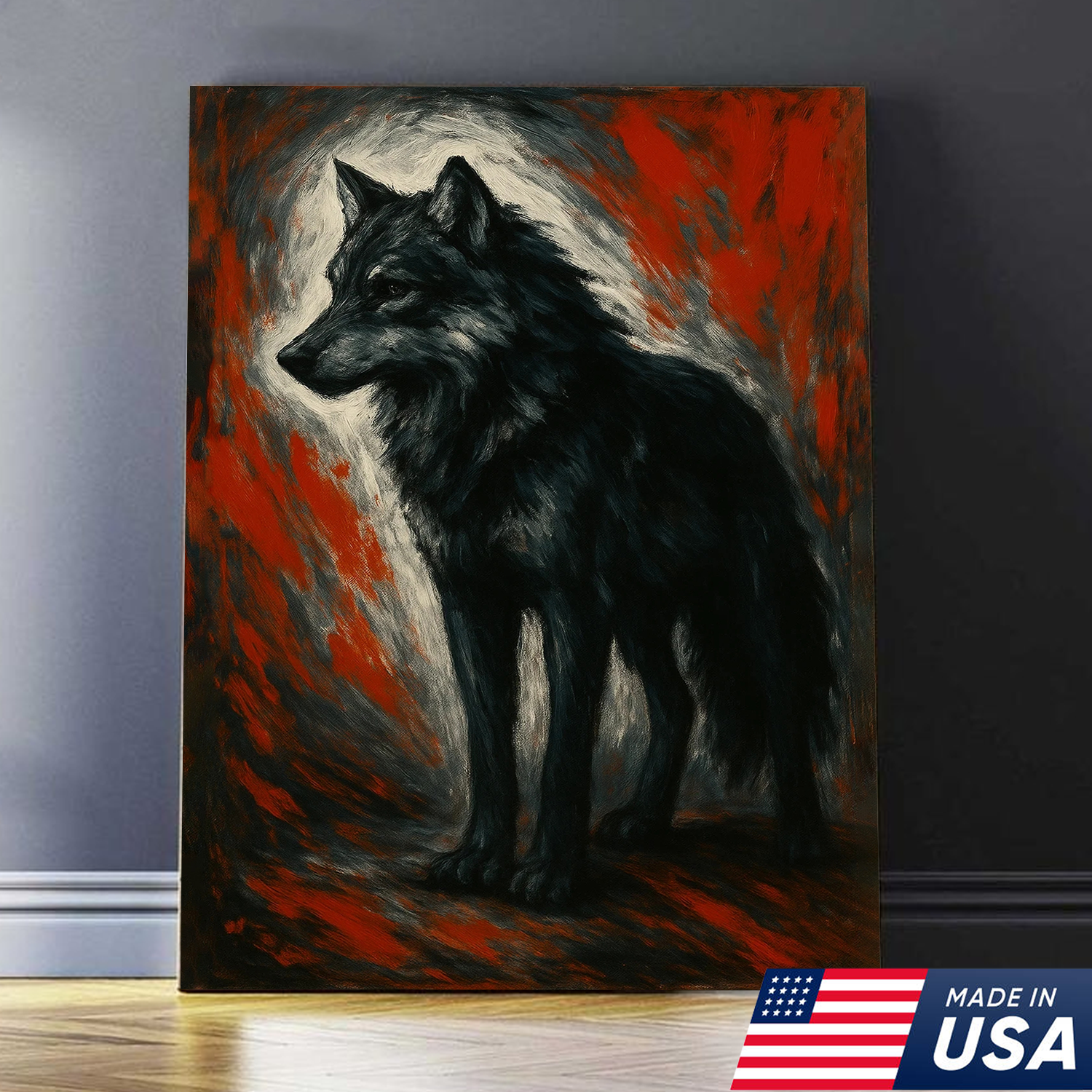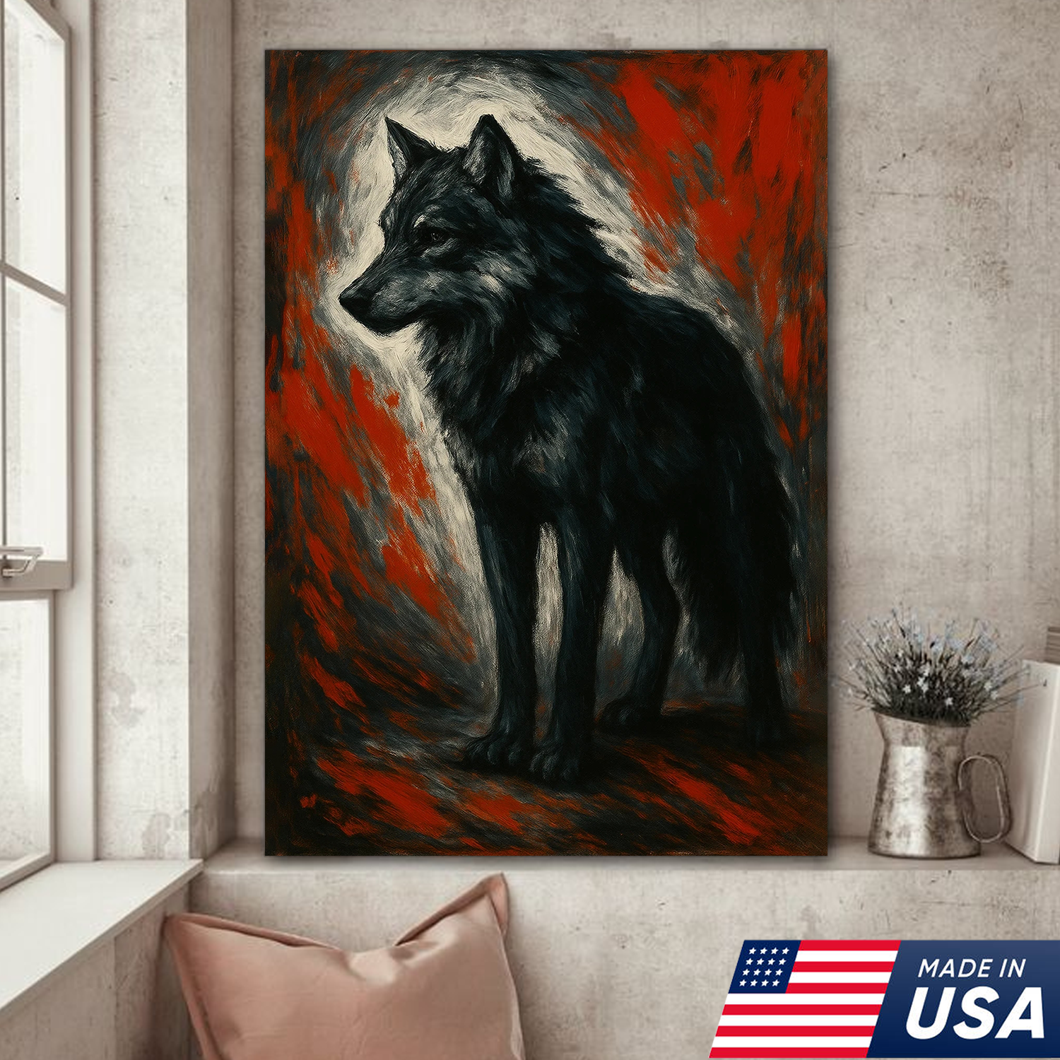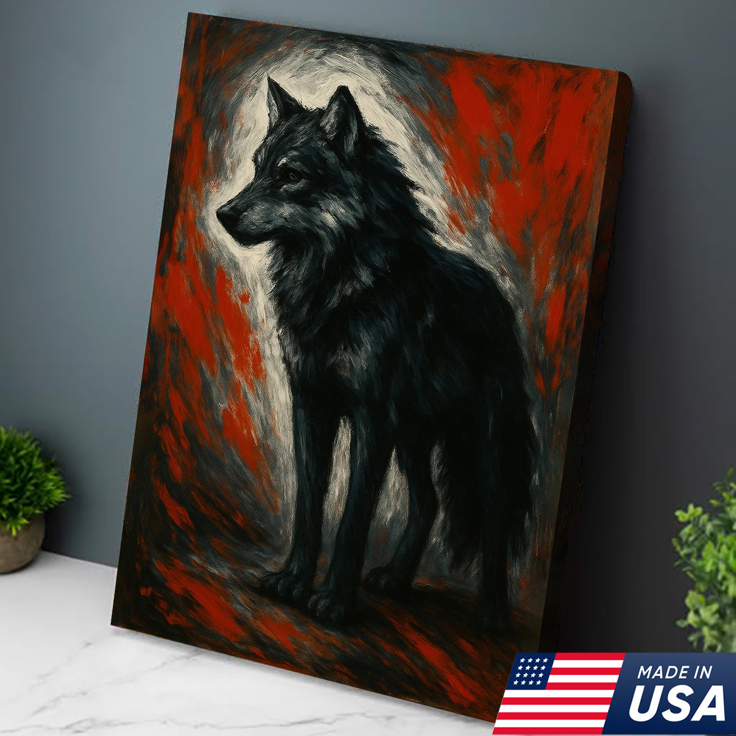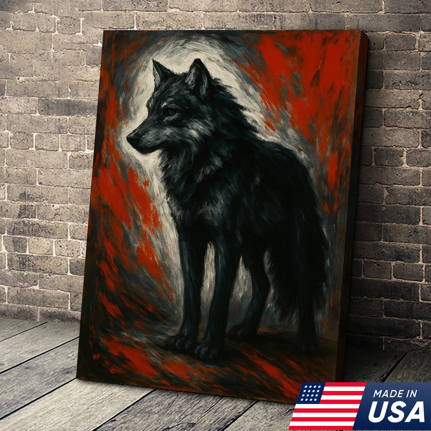 Black Wolf Canvas Wall Art – Rustic Wildlife Decor for Cabin, Lodge & Man Cave