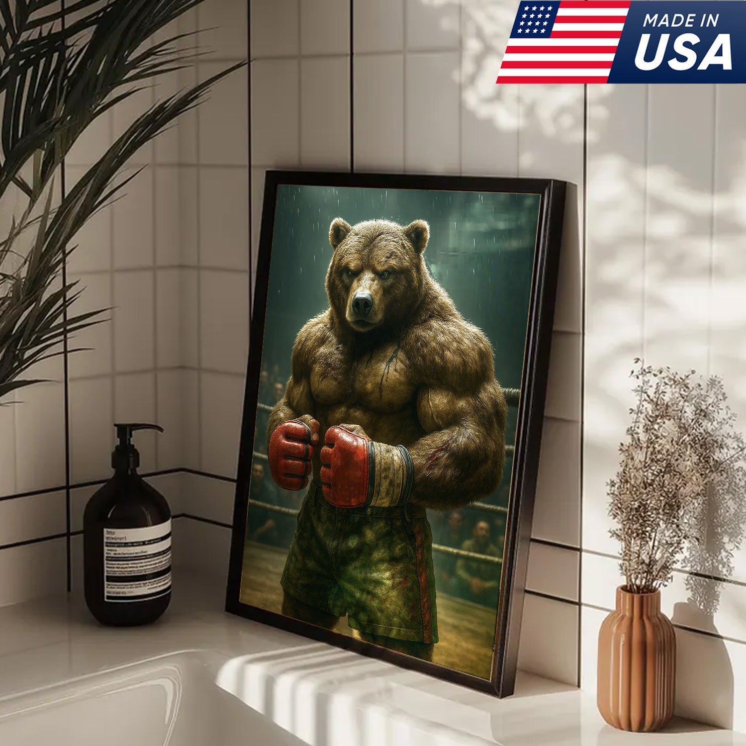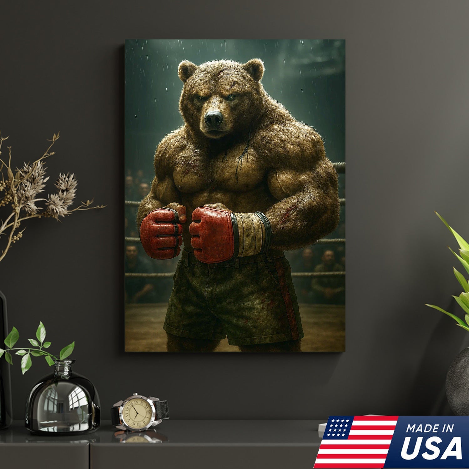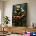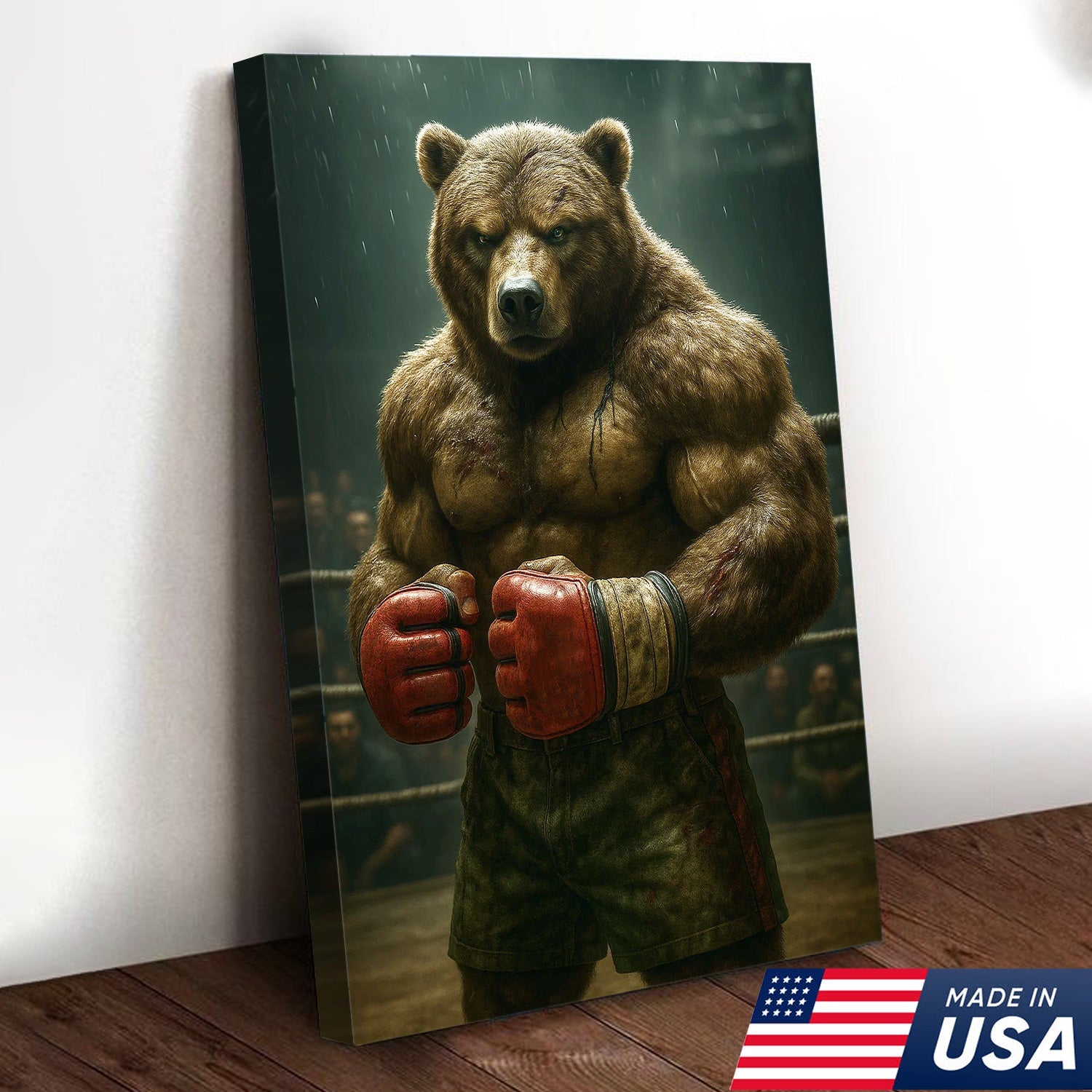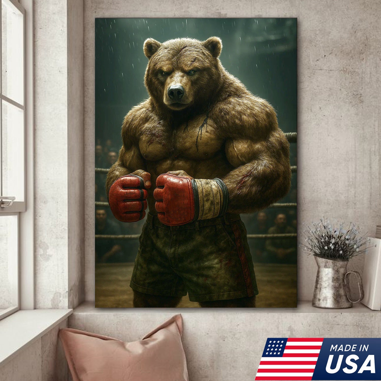 Boxer Bear Canvas Wall Art, Fierce Animal Fighter Artwork, Powerful Strength and Determination Sports Decor for Men