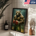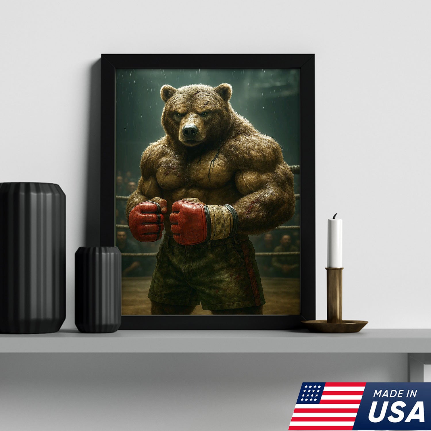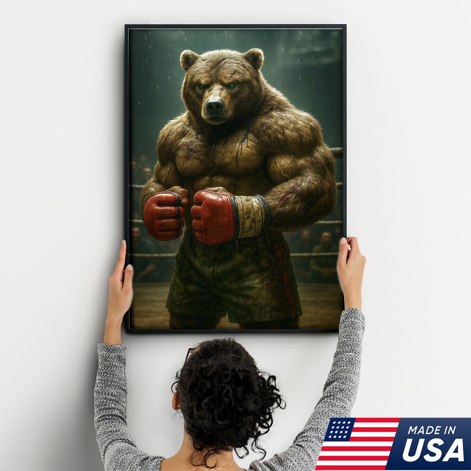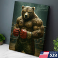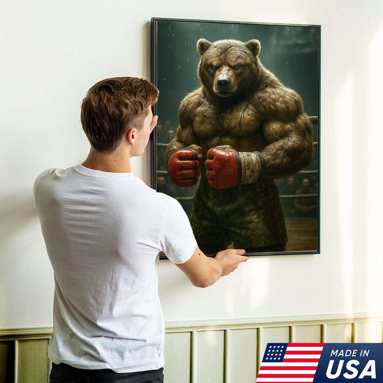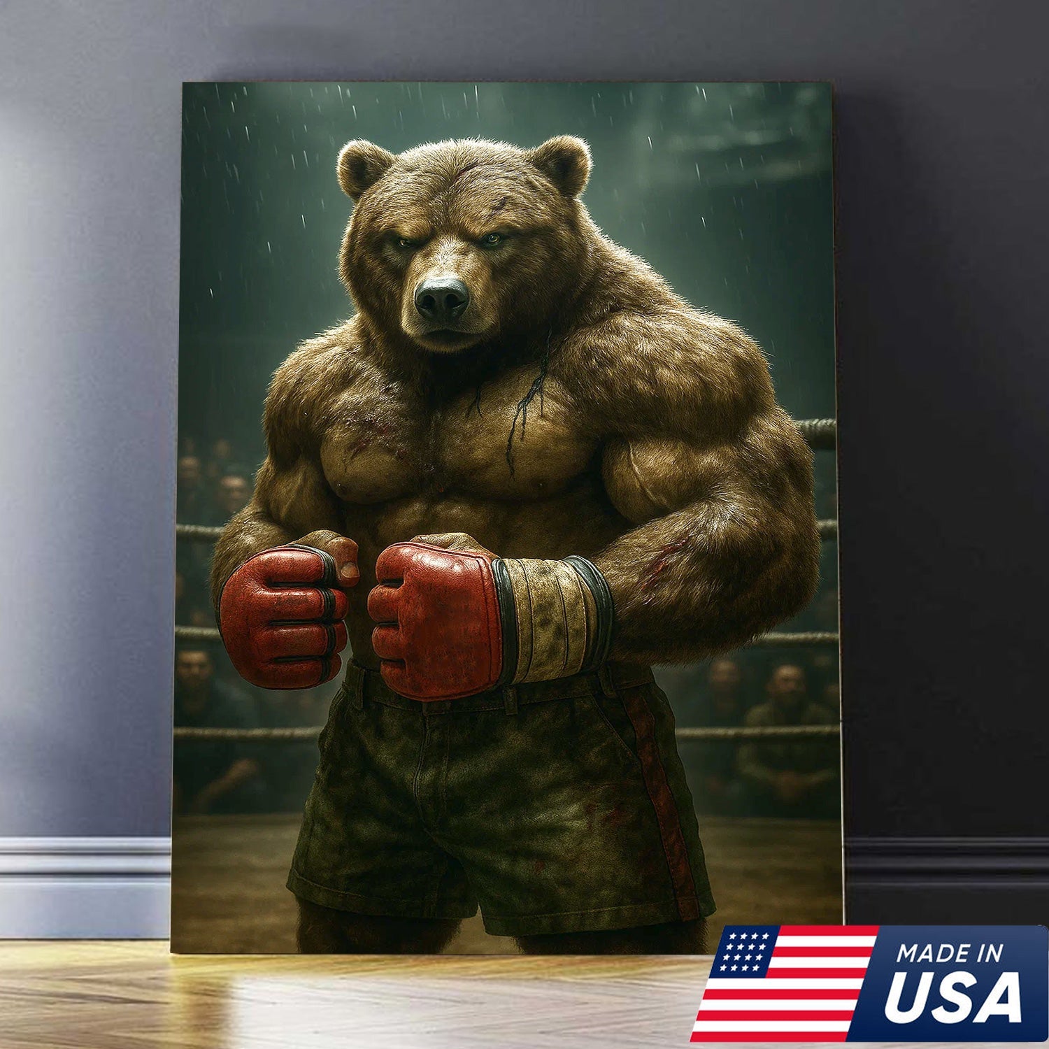 Boxer Bear Canvas Wall Art, Fierce Animal Fighter Artwork, Powerful Strength and Determination Sports Decor for Men