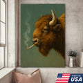 Buffalo Bison Smoking Canvas Wall Art – Rustic Western Cabin Decor for Hunters