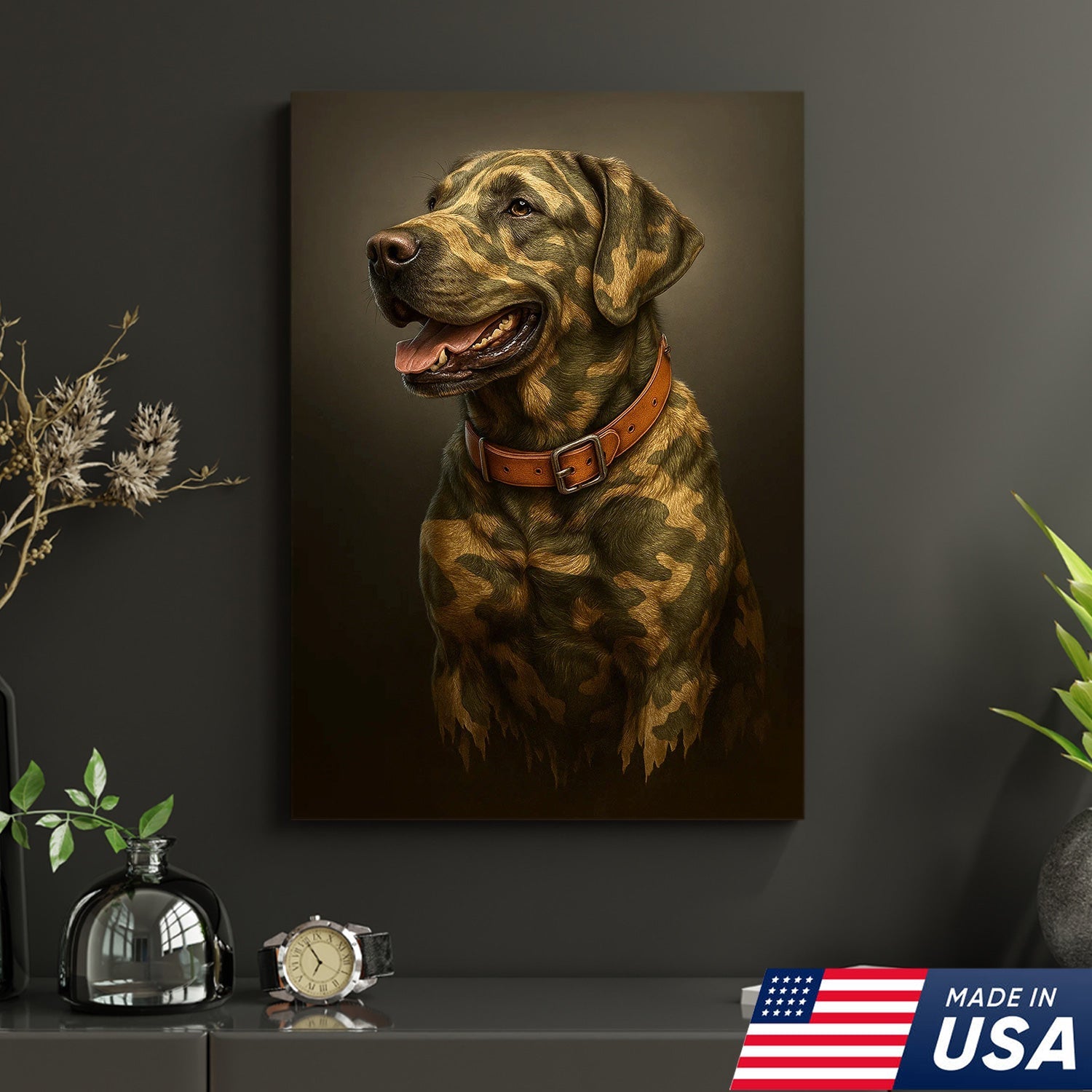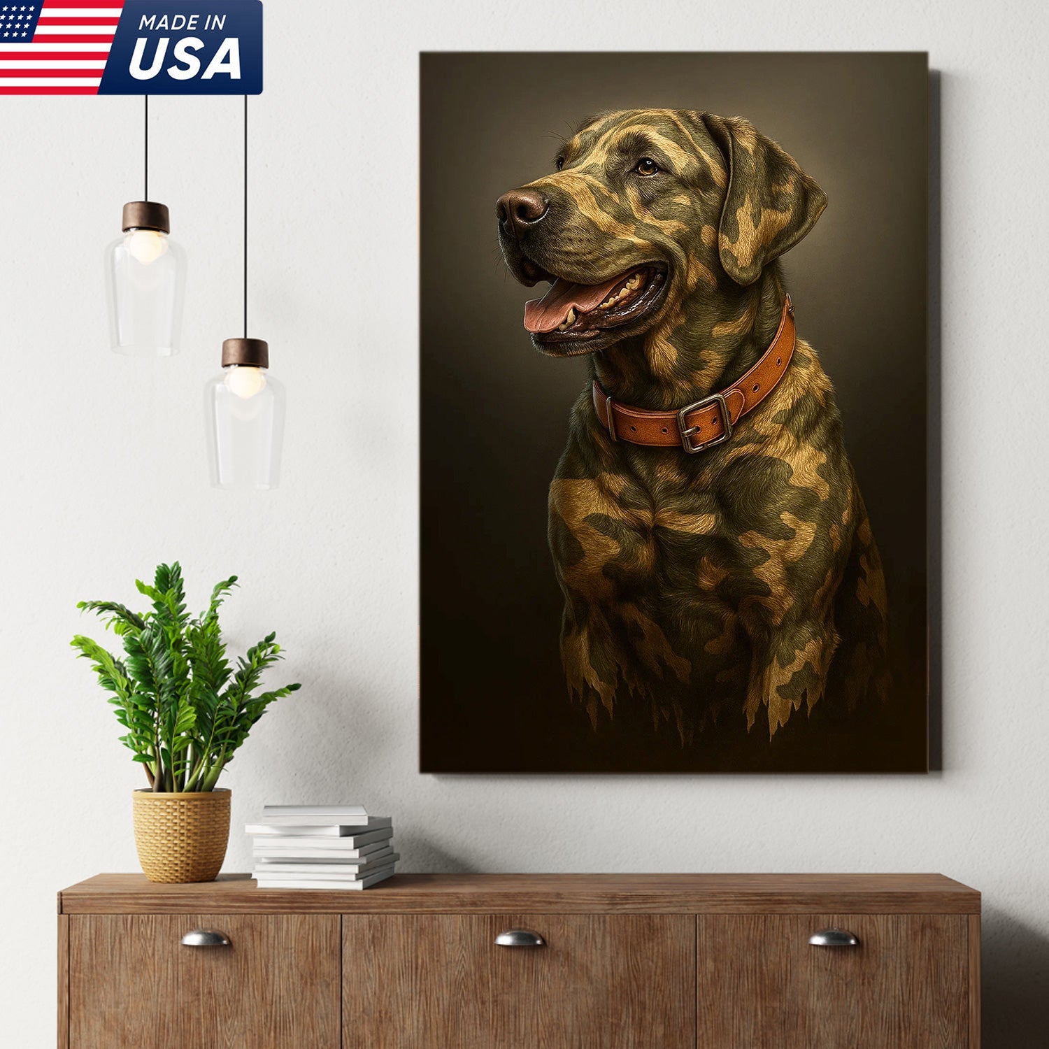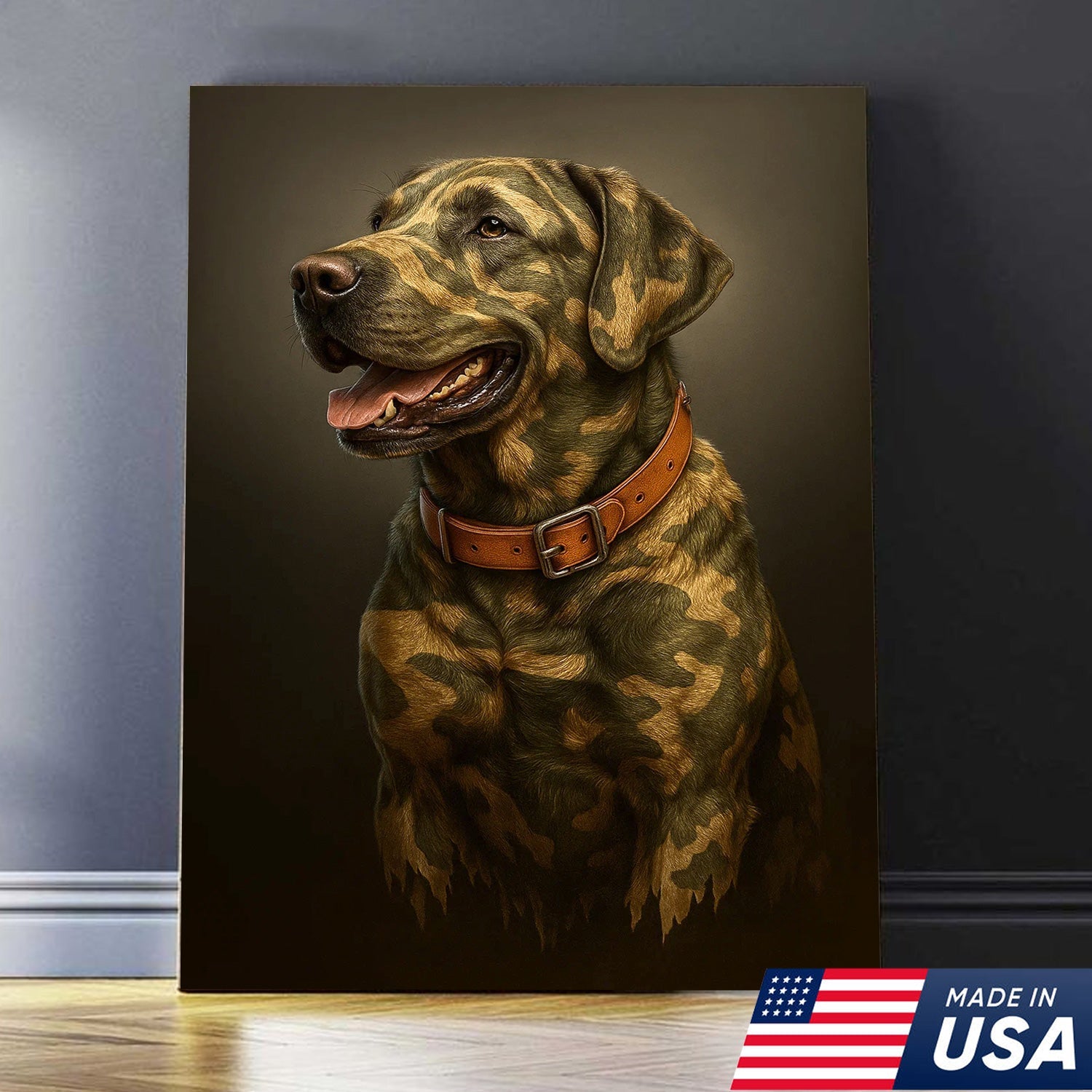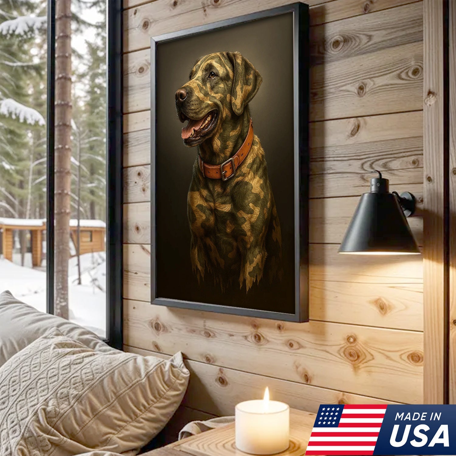 Camouflage Hunting Dog Canvas Wall Art – Rustic Lodge Decor for Hunters and Dog Lovers