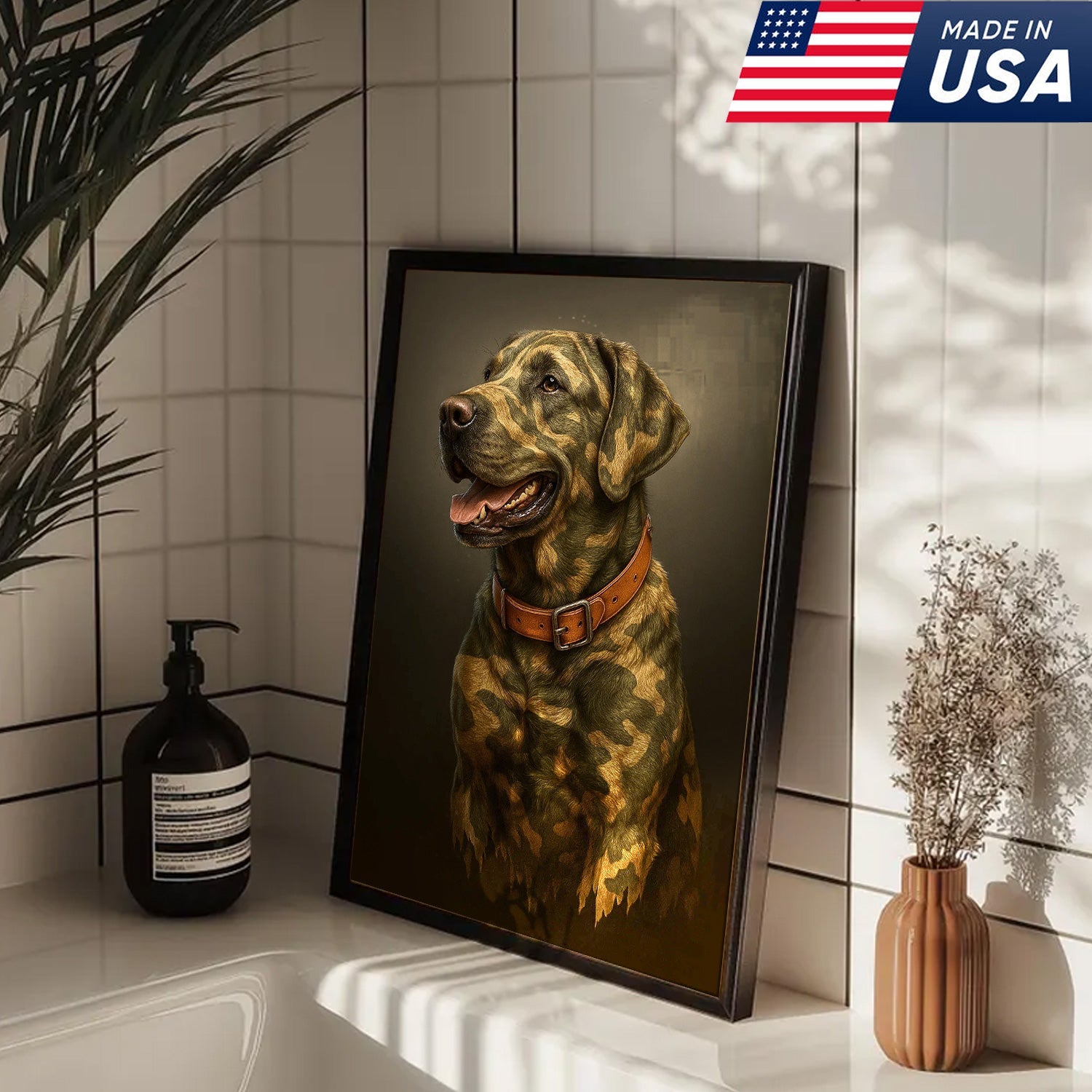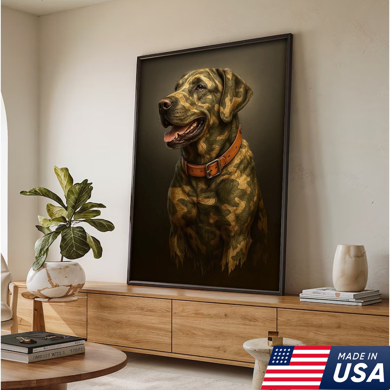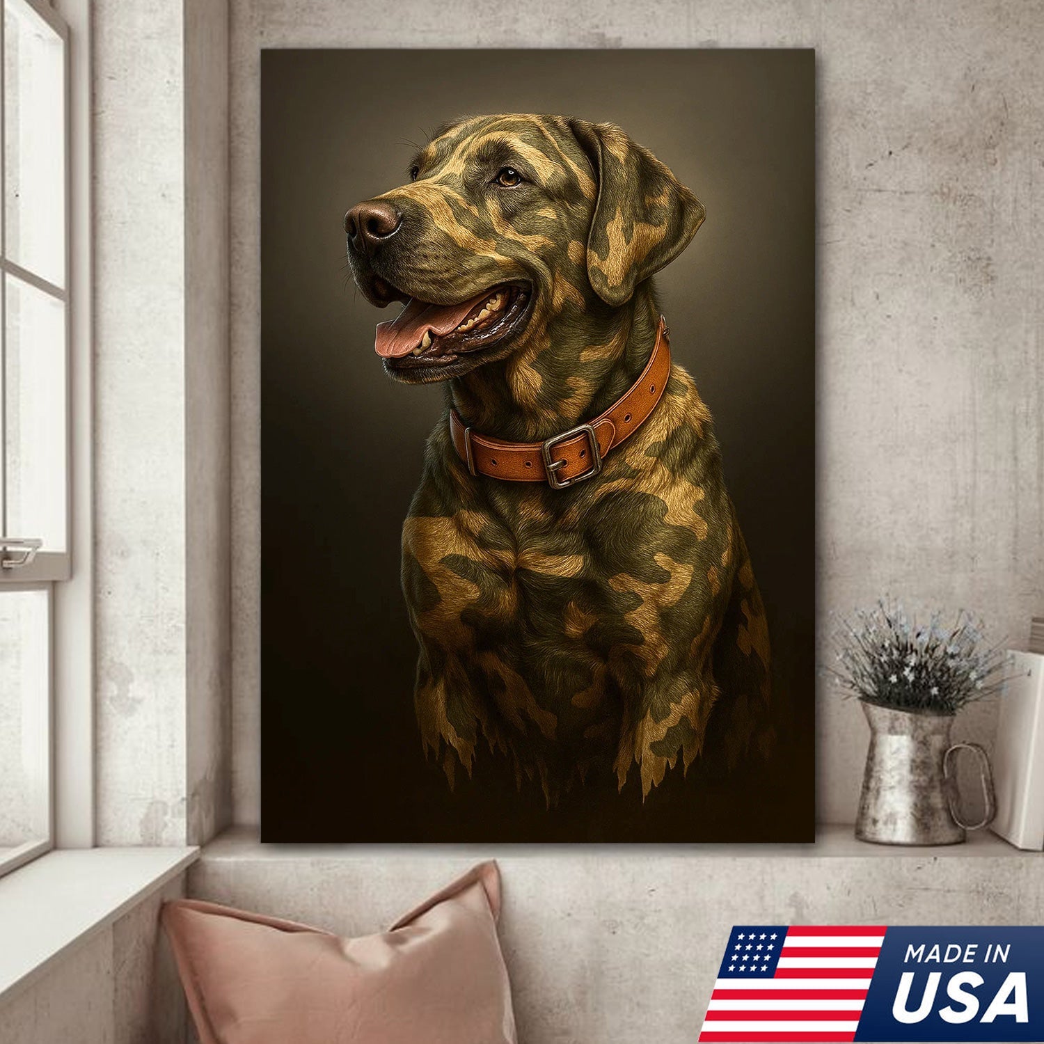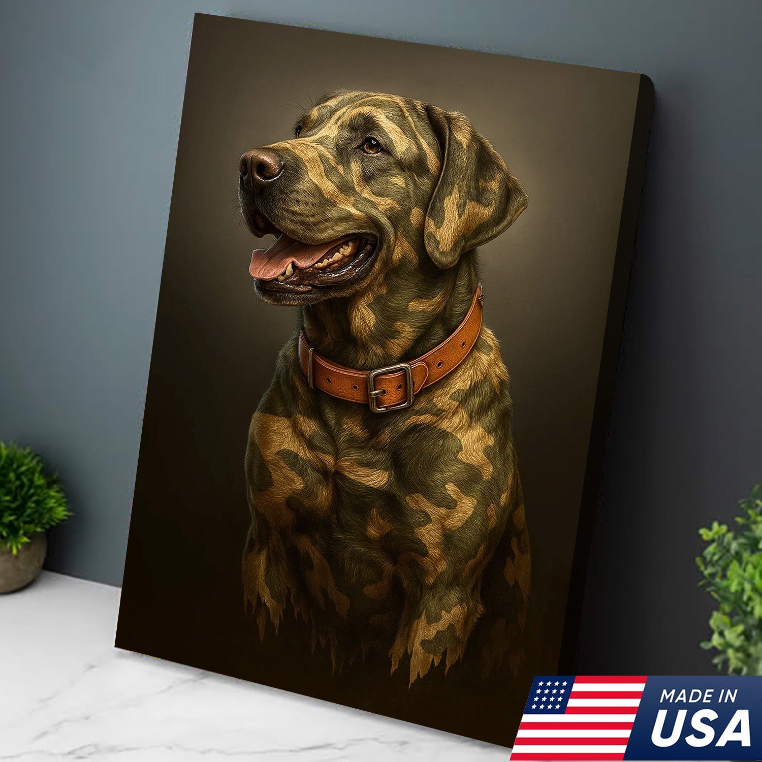 Camouflage Hunting Dog Canvas Wall Art – Rustic Lodge Decor for Hunters and Dog Lovers