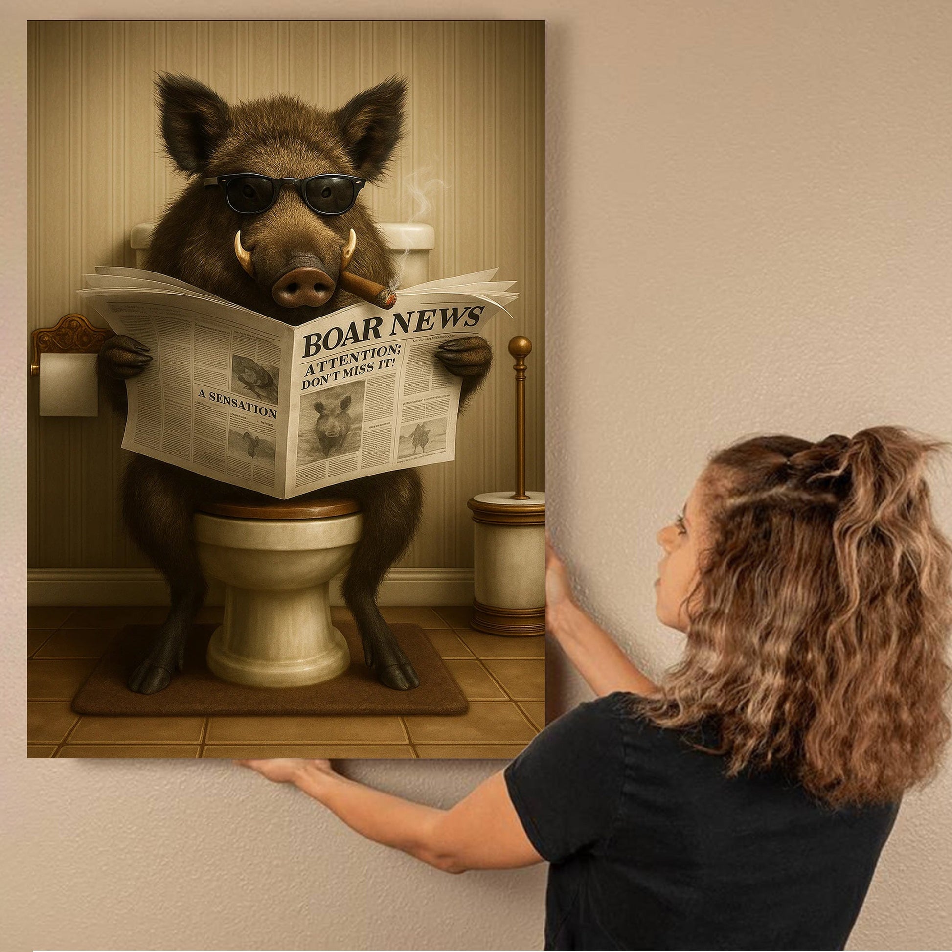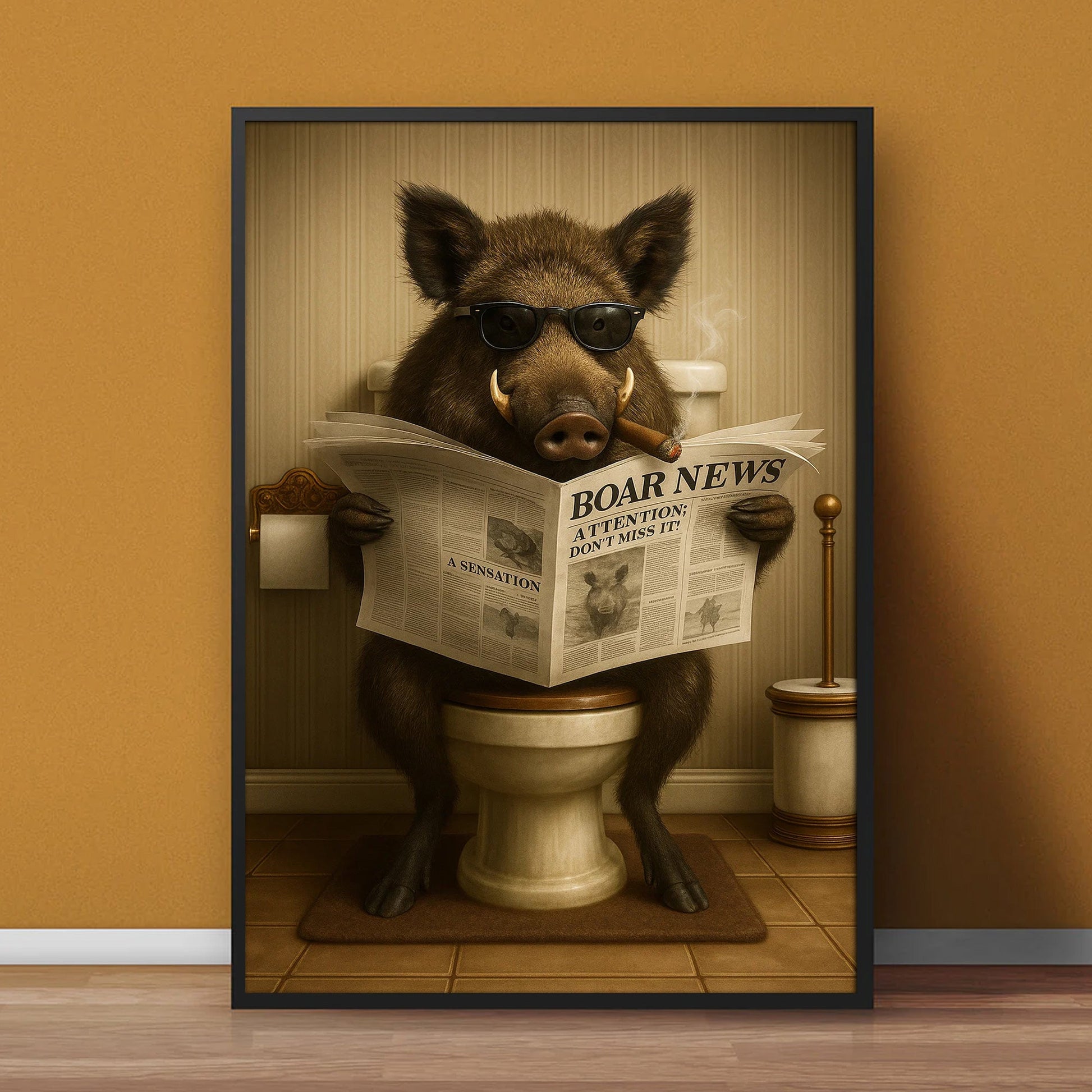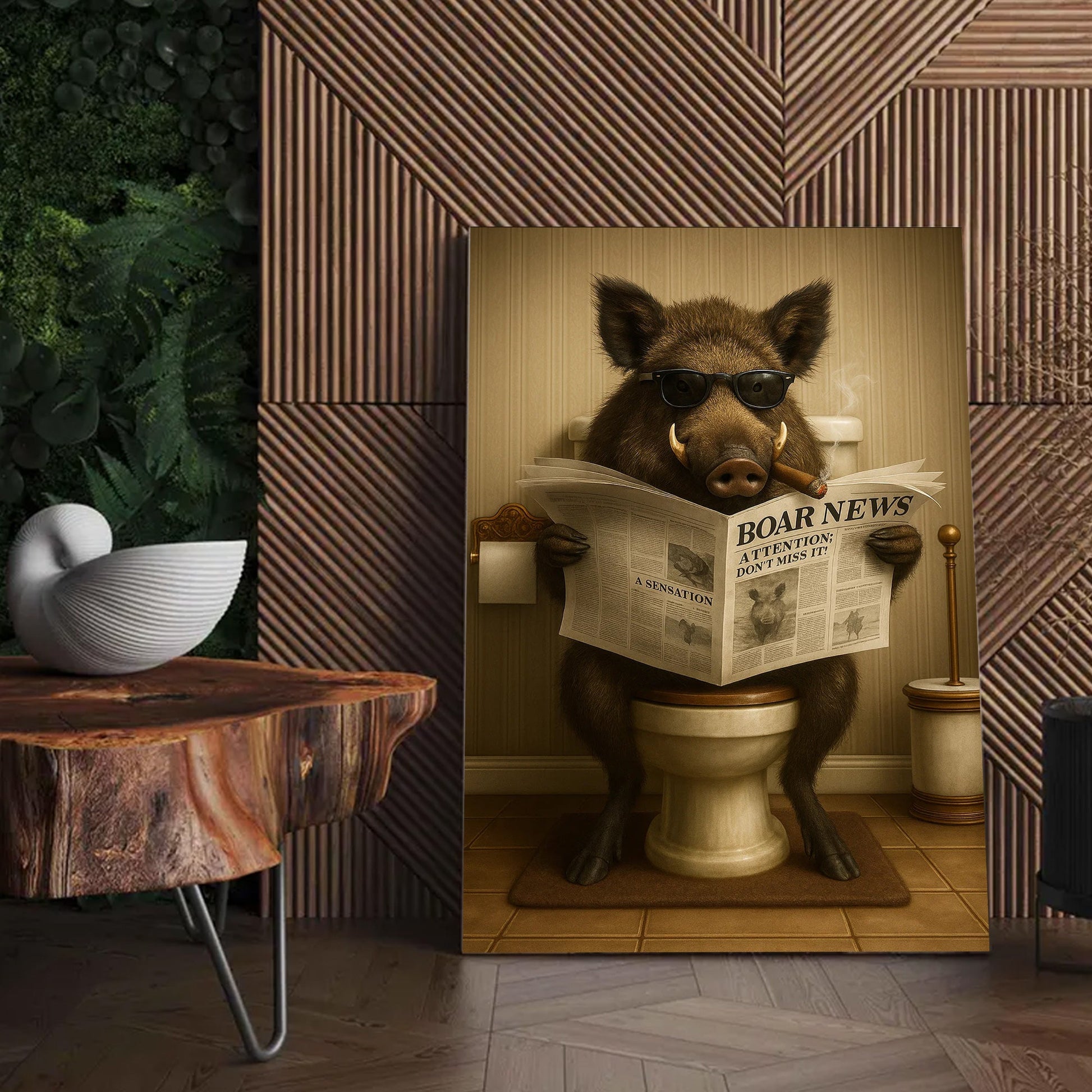 Smoking Boar Canvas – Funny Wildlife Wall Art for Hunters & Animal Lovers