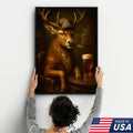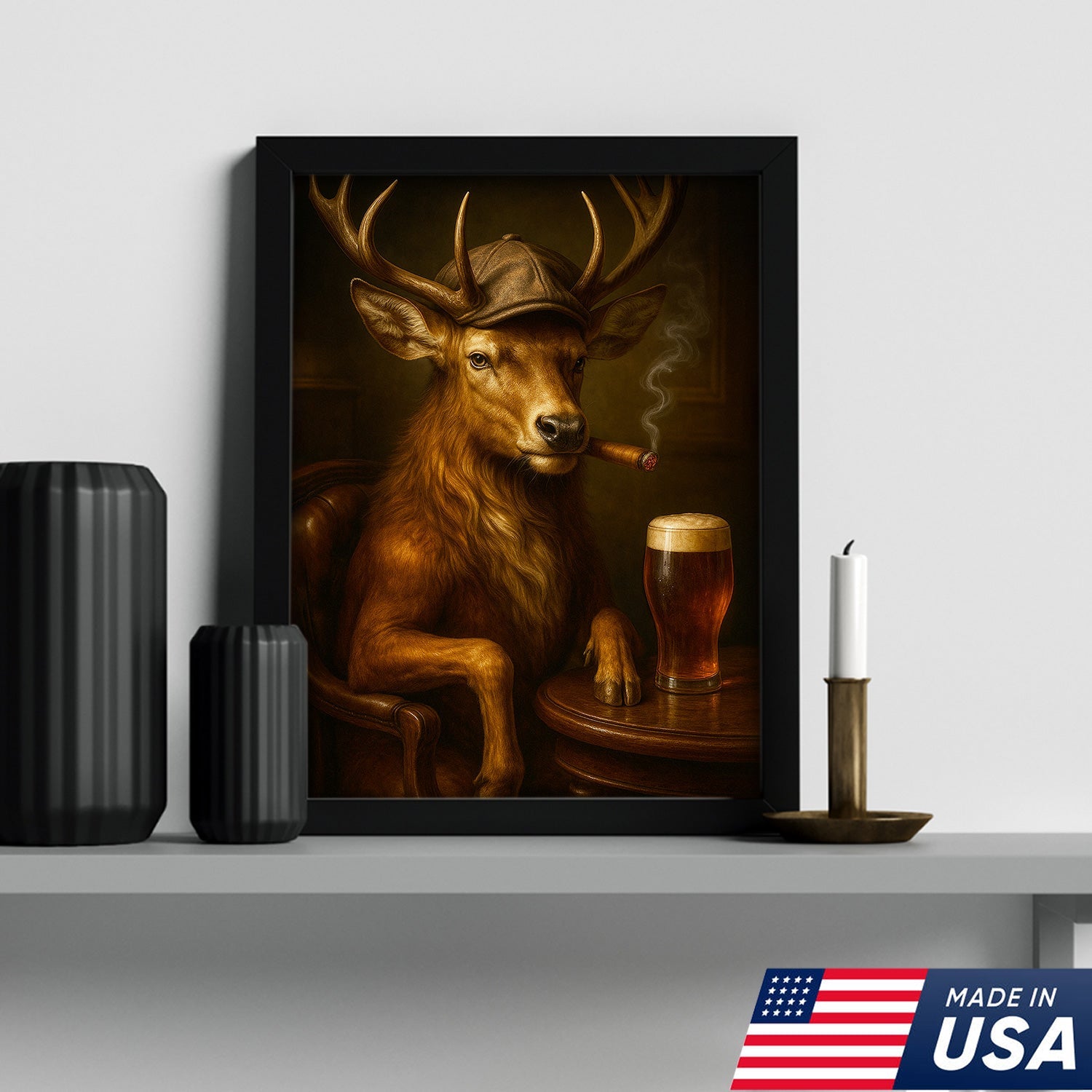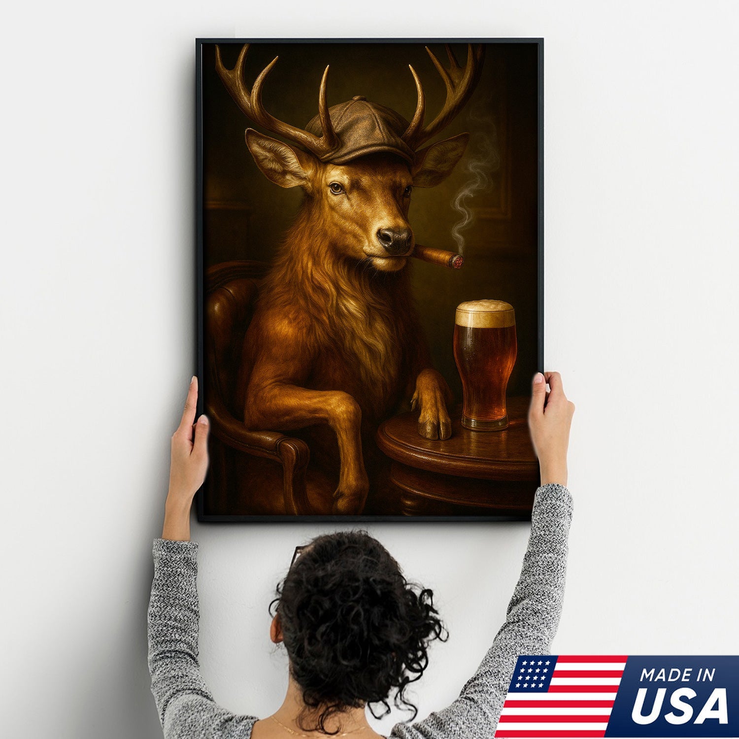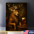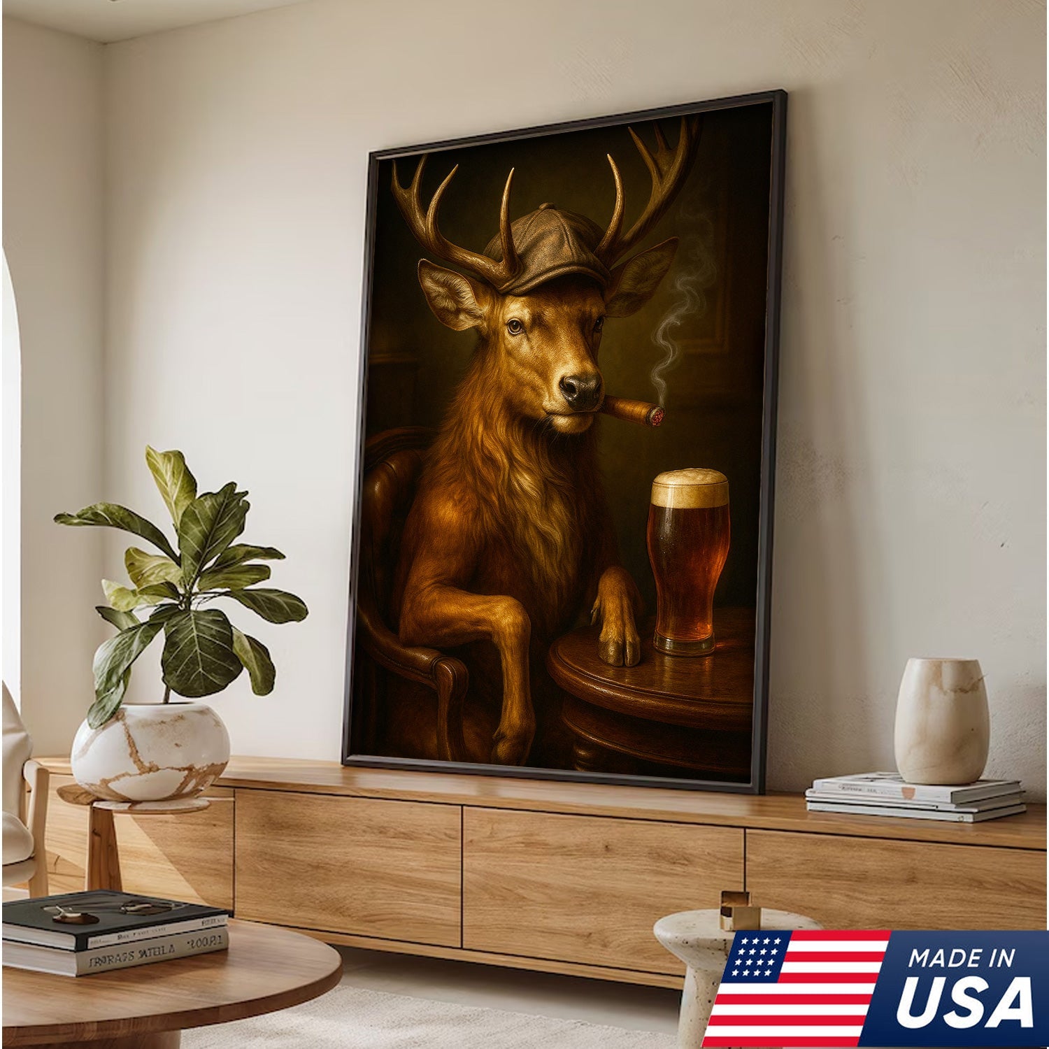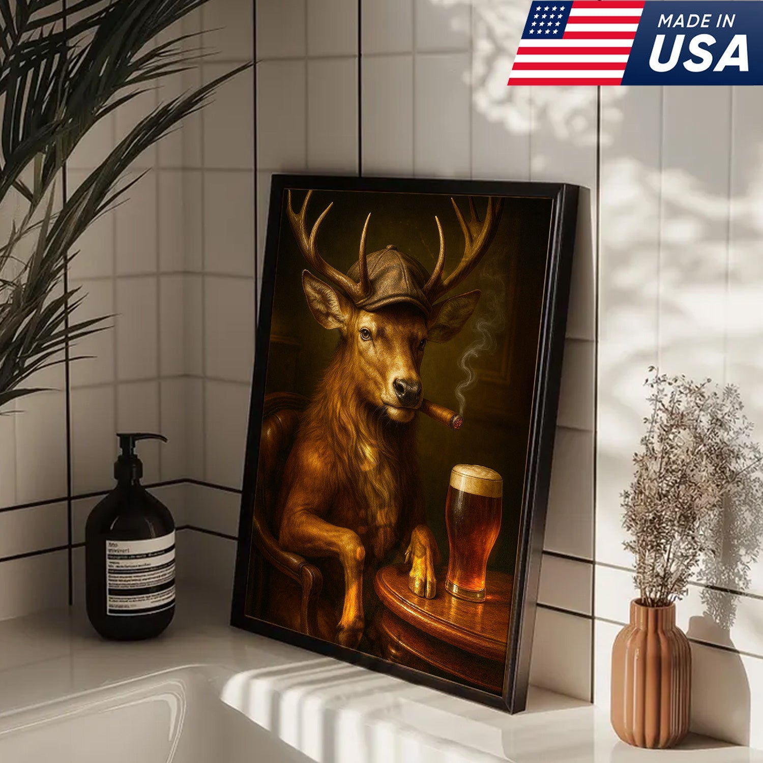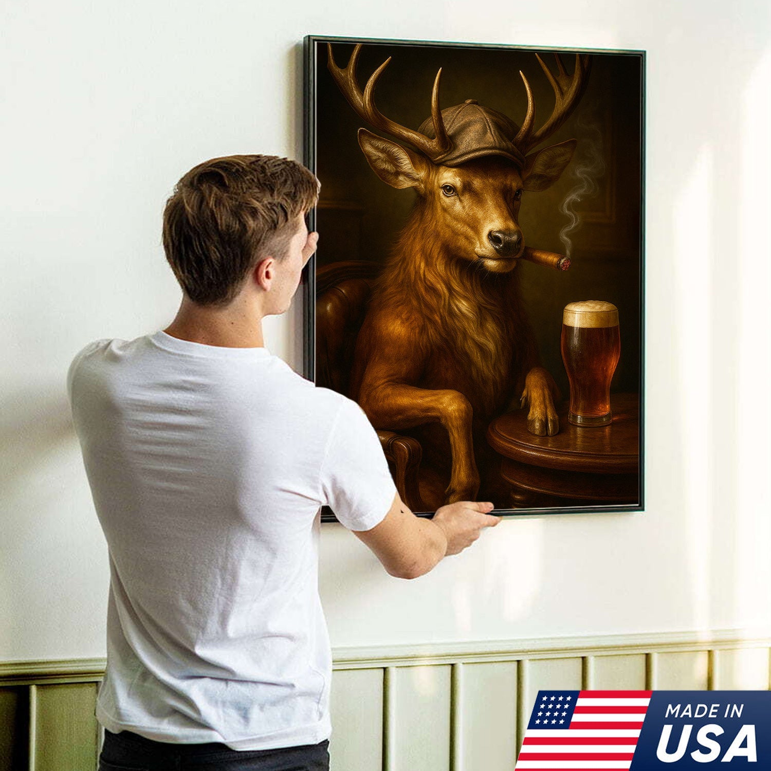 Classy Deer Smoking Cigar Canvas – Rustic Beer Lover Wall Art for Cabin & Man Cave