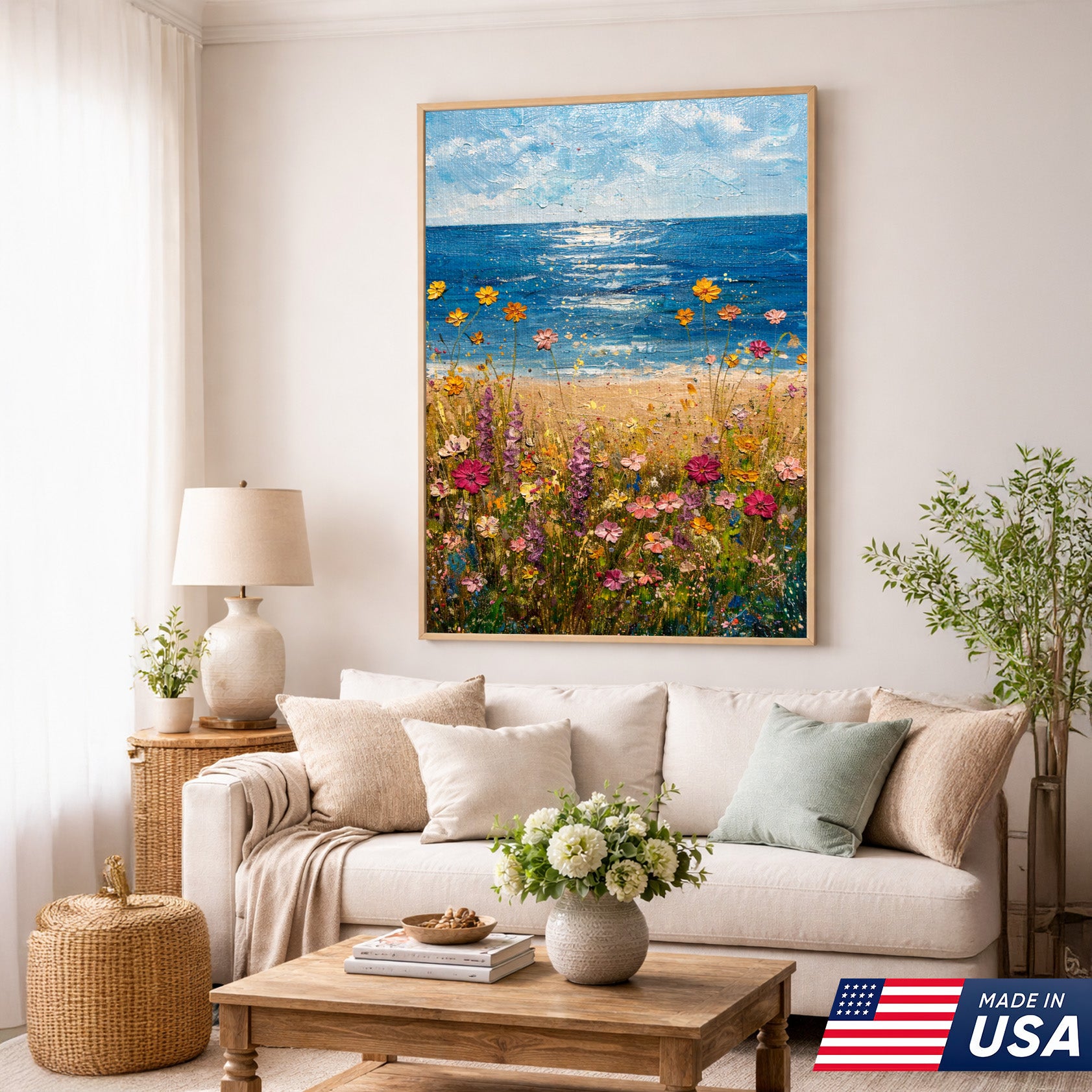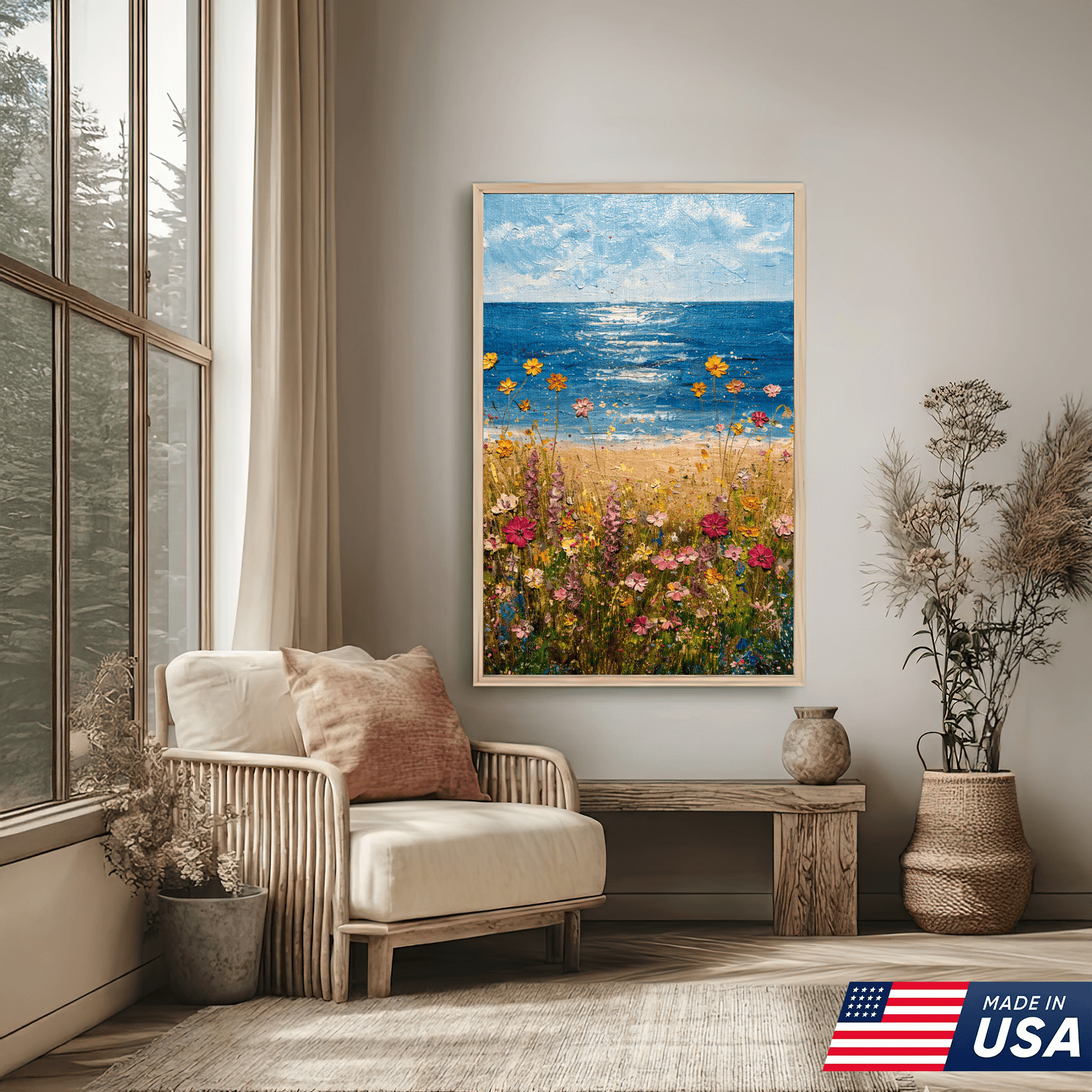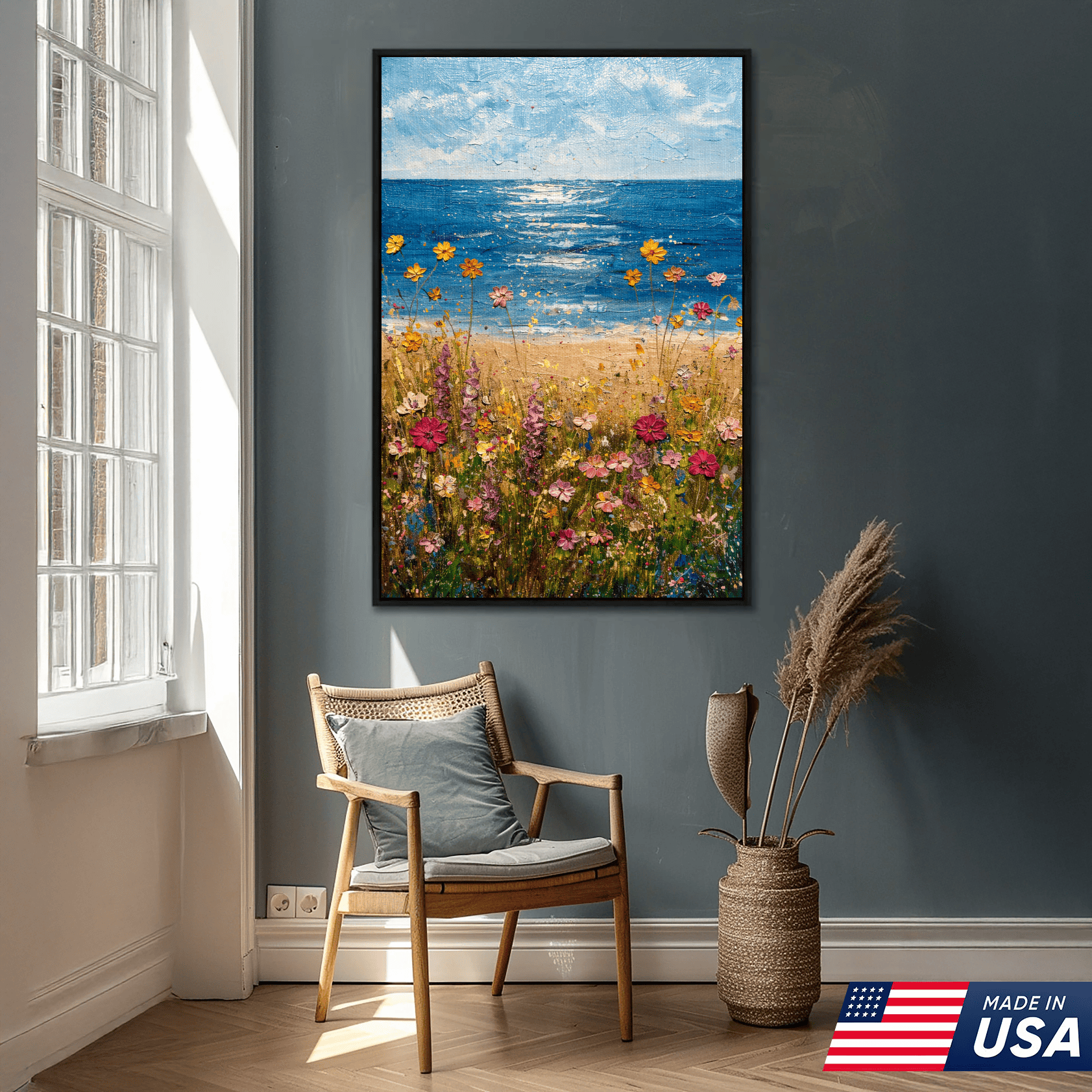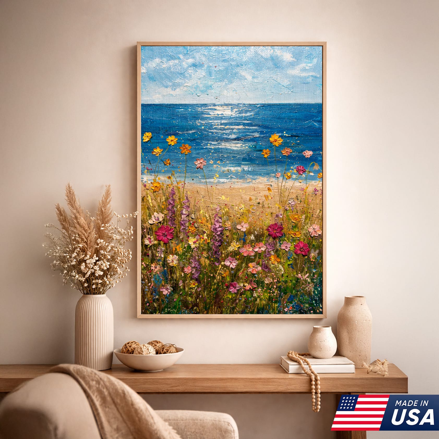 Where Flowers Meet the Sea – Coastal Bloom Canvas Art