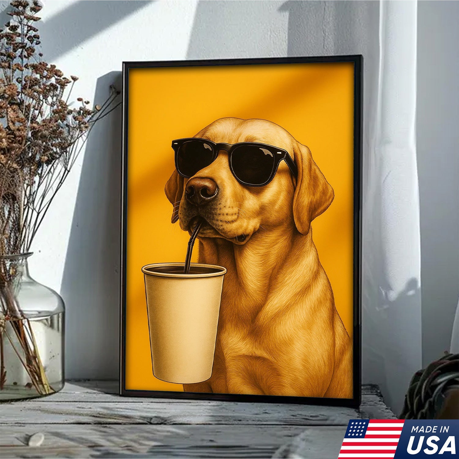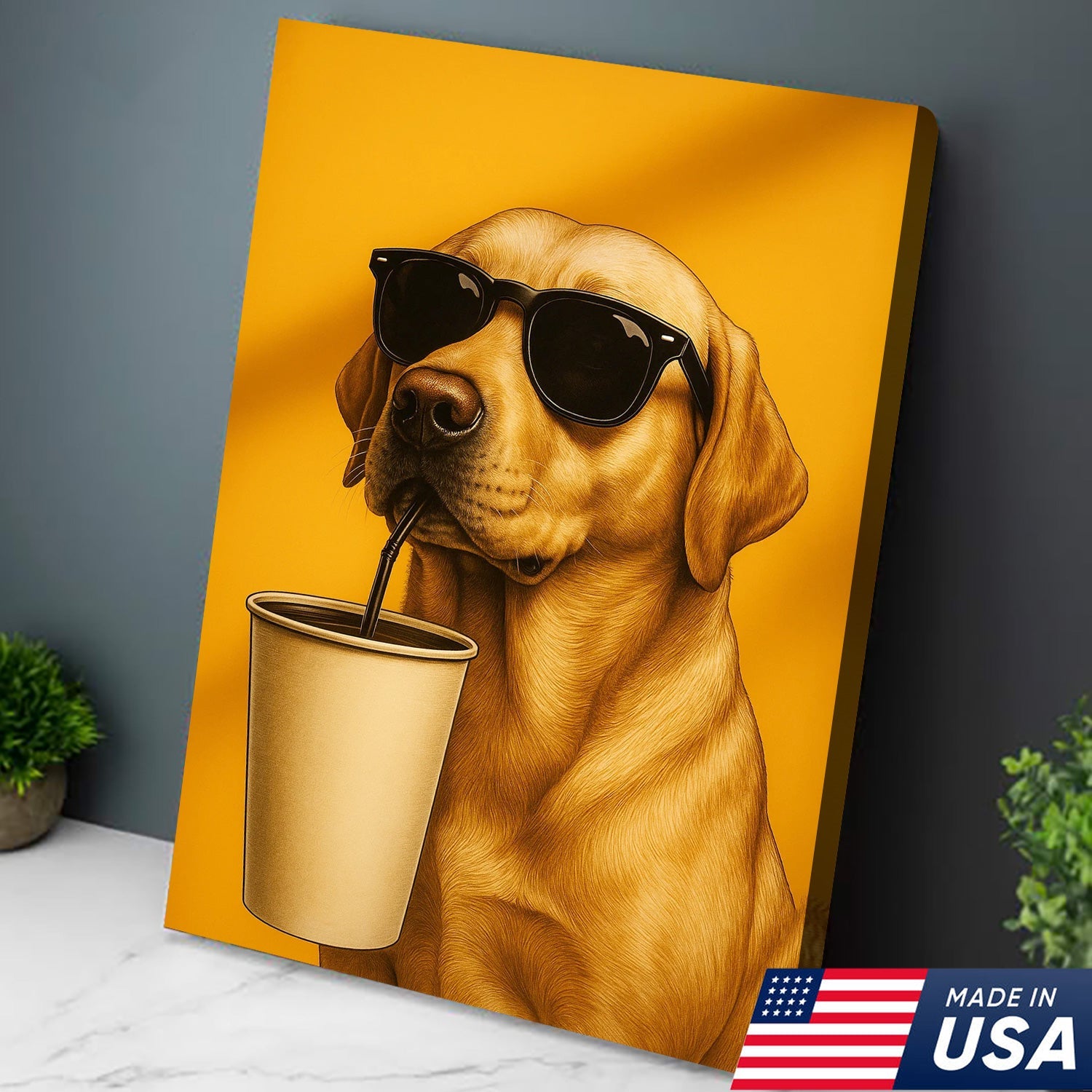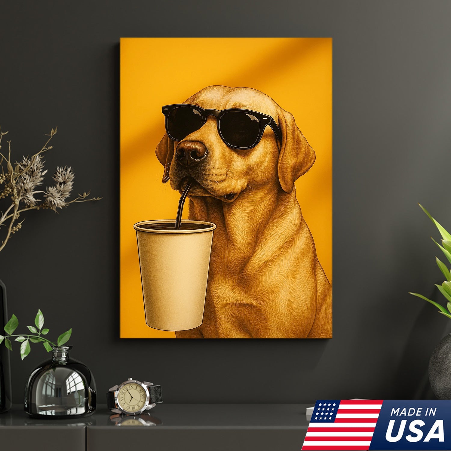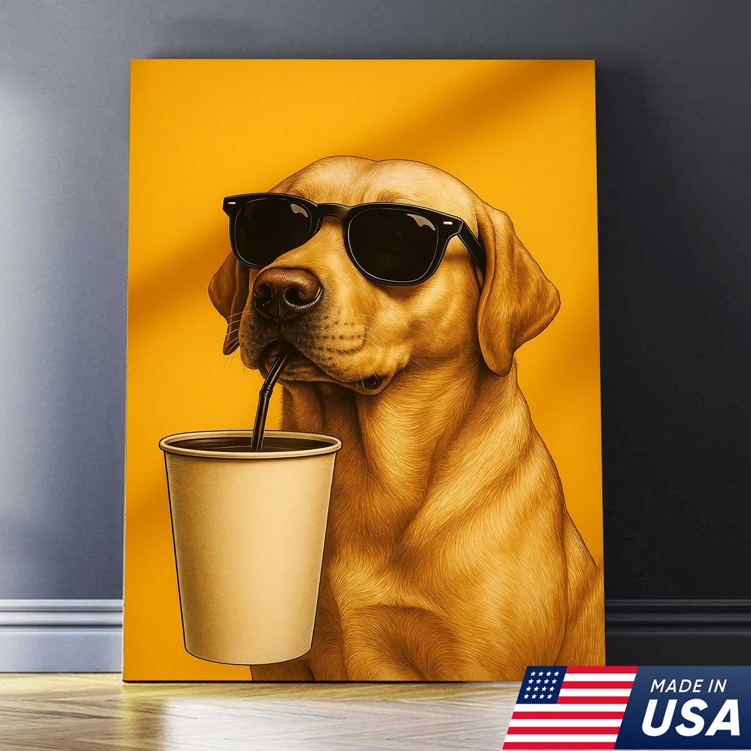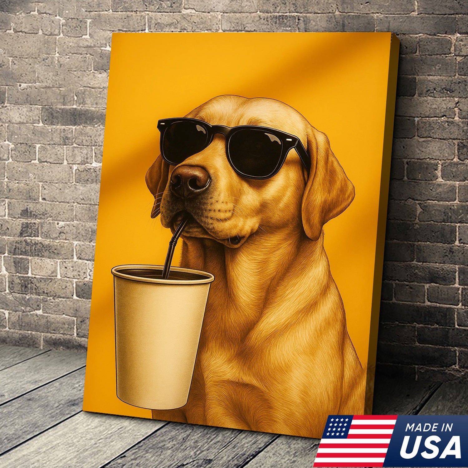 Cool Dog Canvas Wall Art – Funny Labrador with Sunglasses – Playful Rustic Home or Lodge Decor