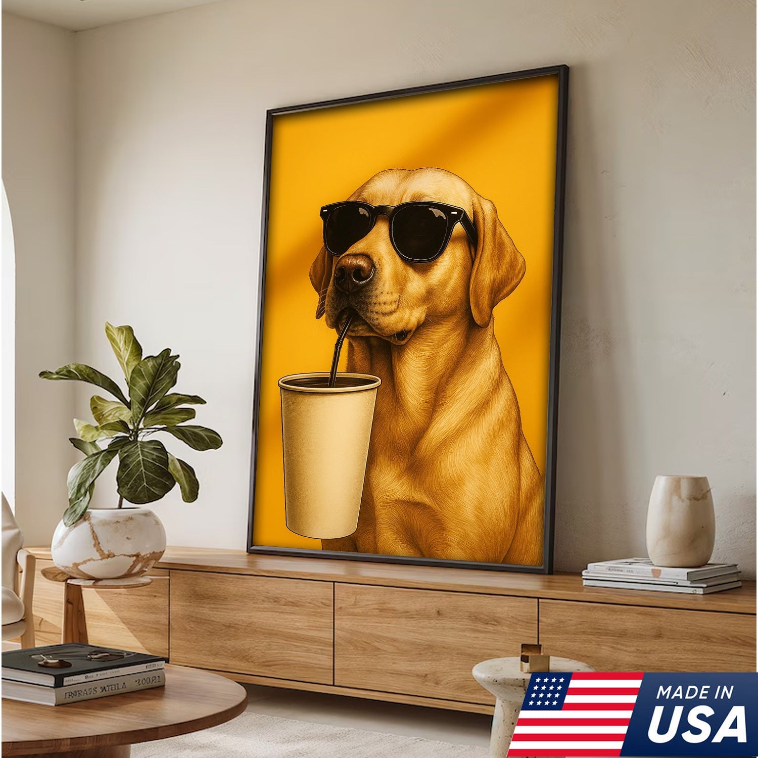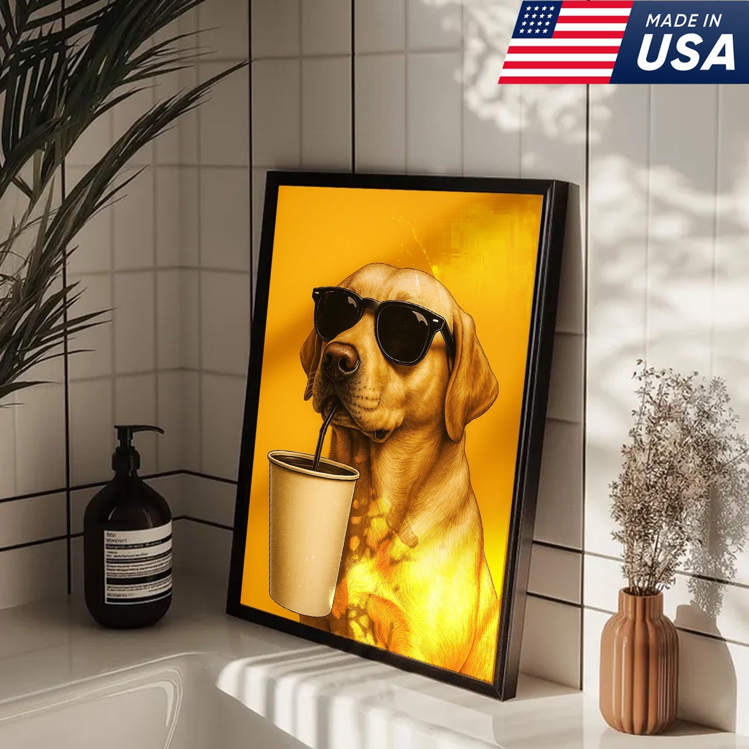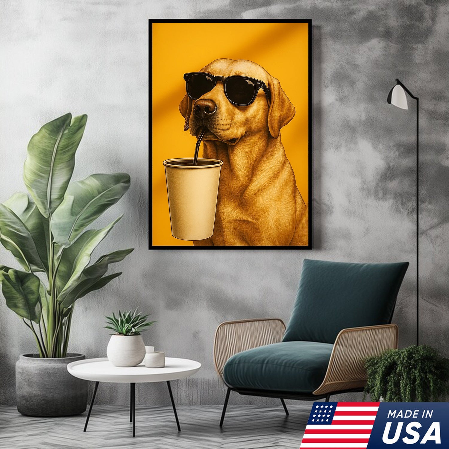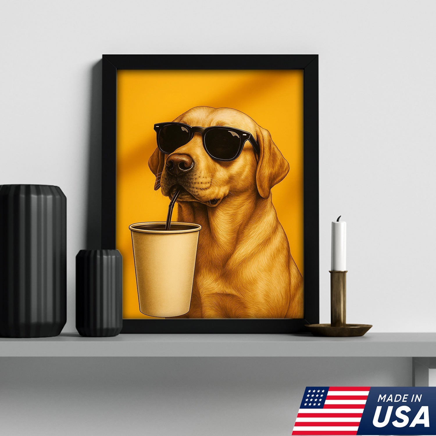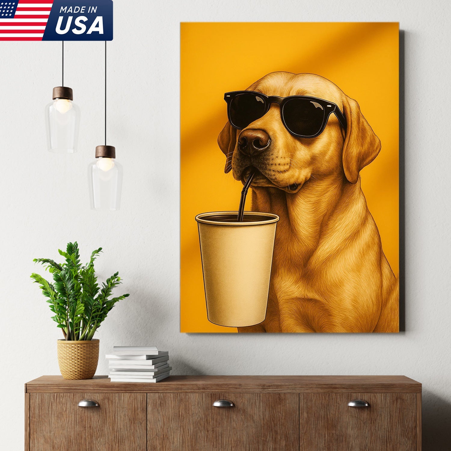 Cool Dog Canvas Wall Art – Funny Labrador with Sunglasses – Playful Rustic Home or Lodge Decor