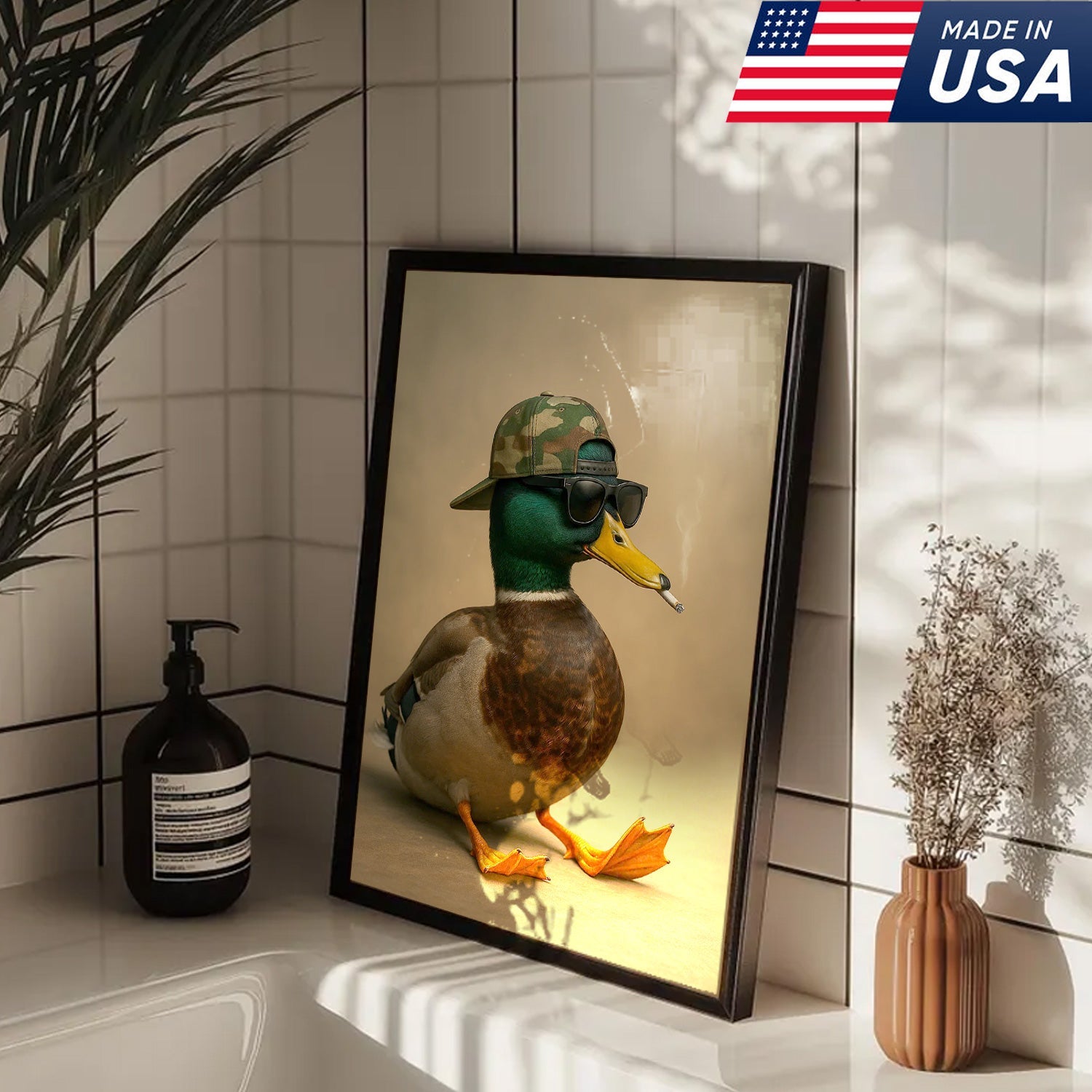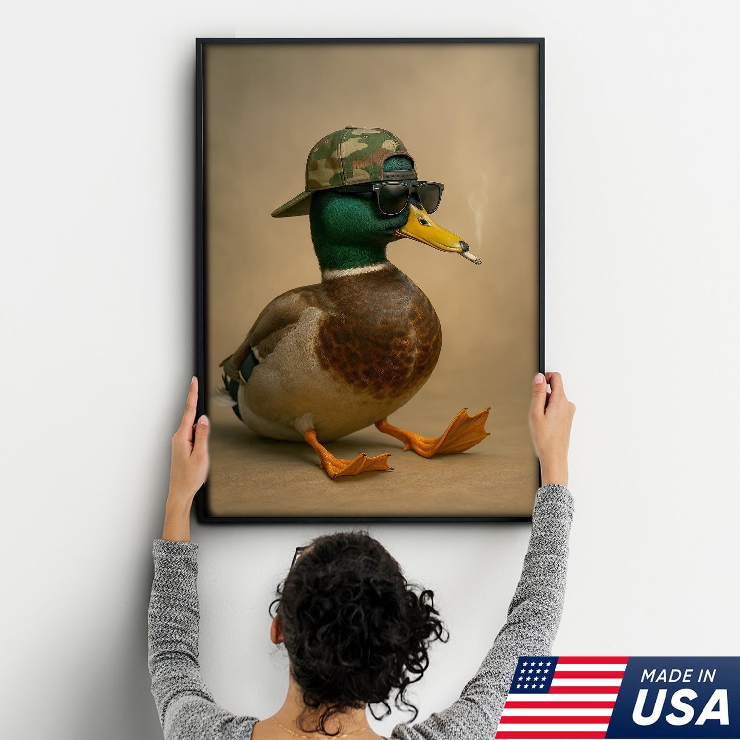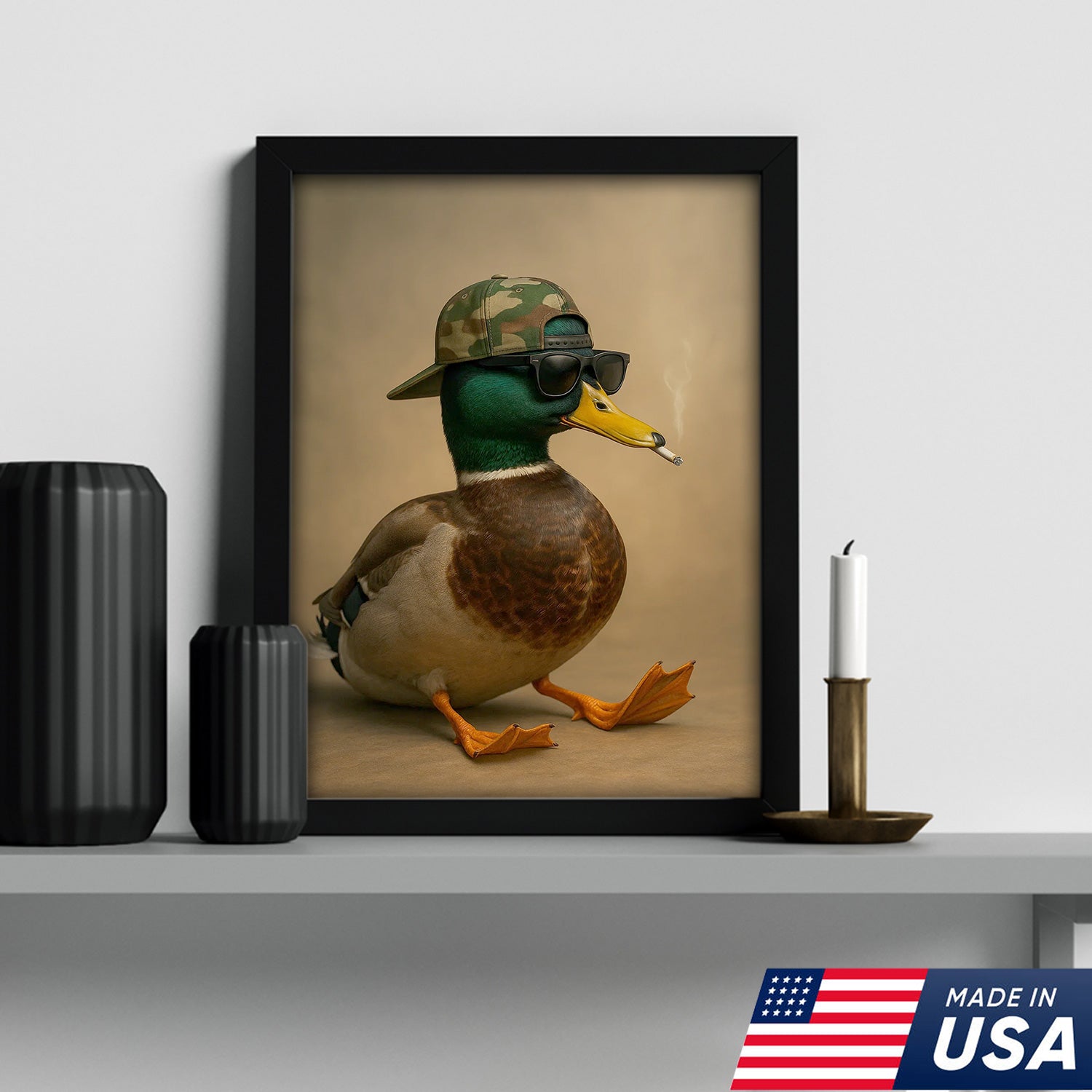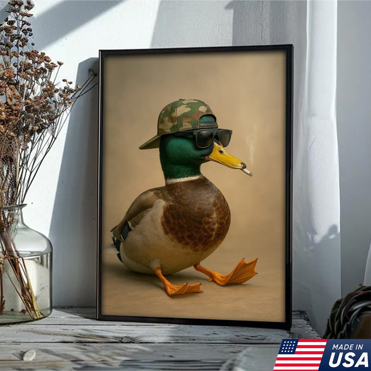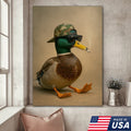 Cool Mallard Duck with Camo Hat Wall Art – Funny Hunting Canvas Print for Cabin, Lodge & Man Cave Decor