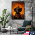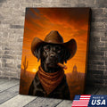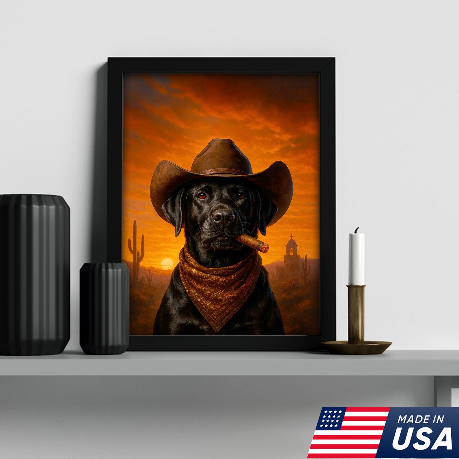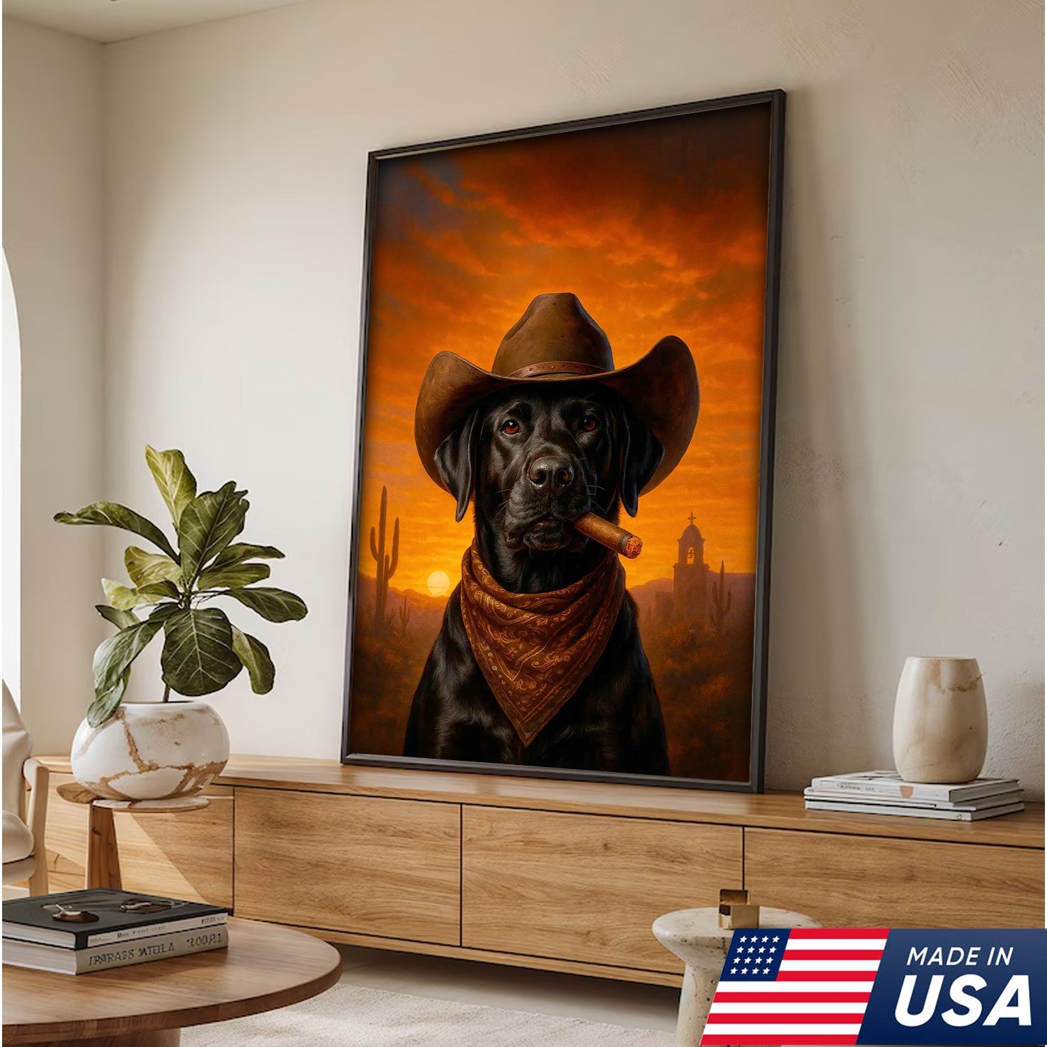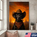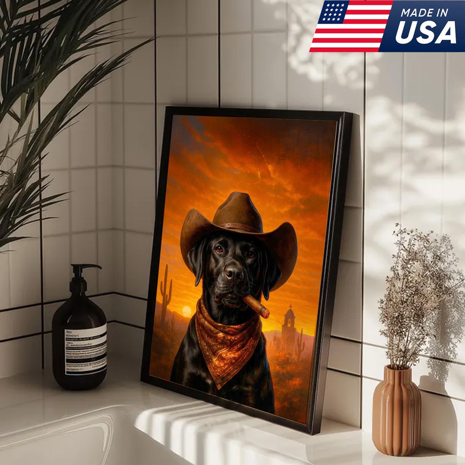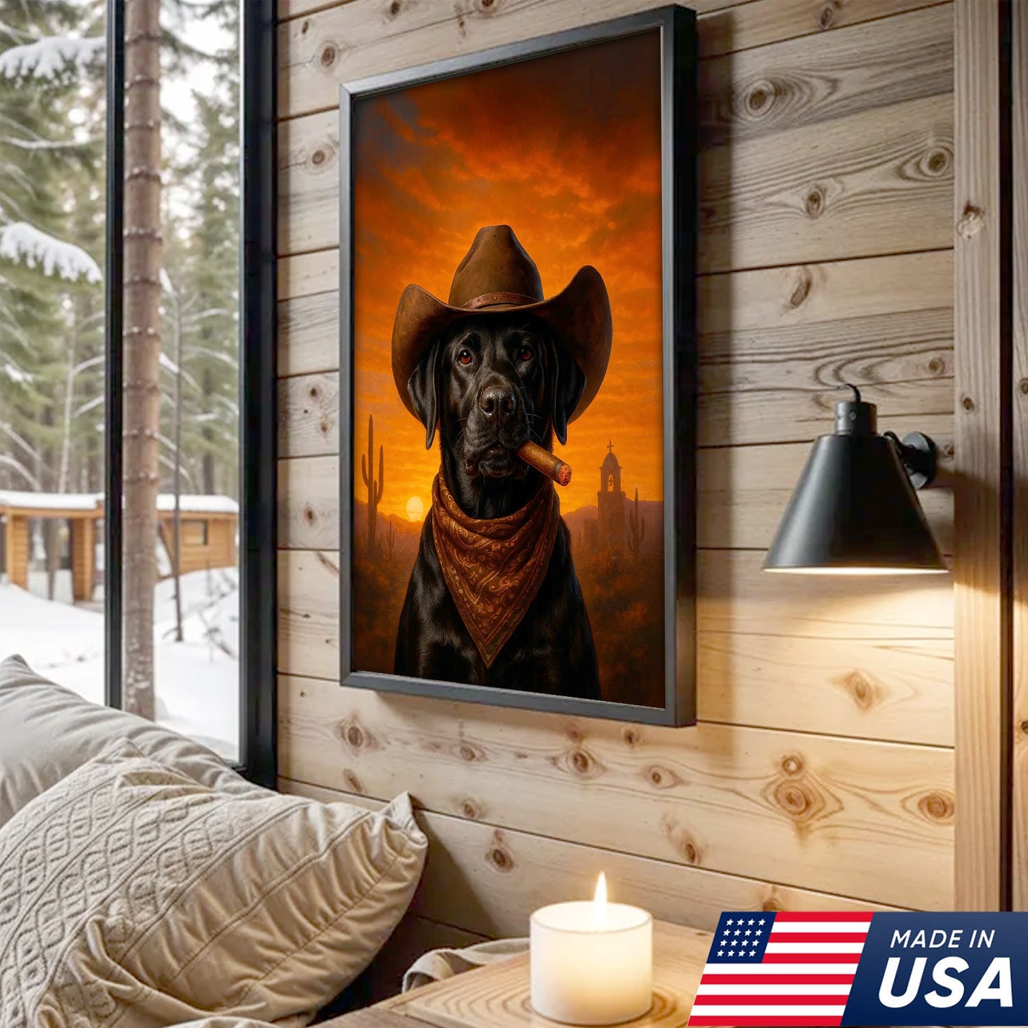 Cowboy Dog Canvas Wall Art – Rustic Western Decor – Black Labrador with Hat and Bandana Print