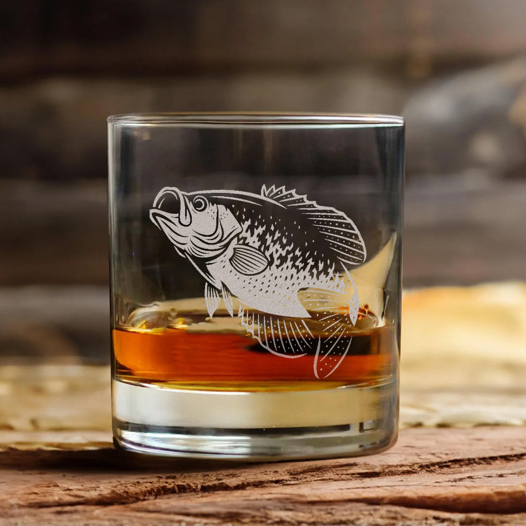 Crappie Fishing Whiskey Glass – Engraved Fisherman Gift for Dad, Husband,