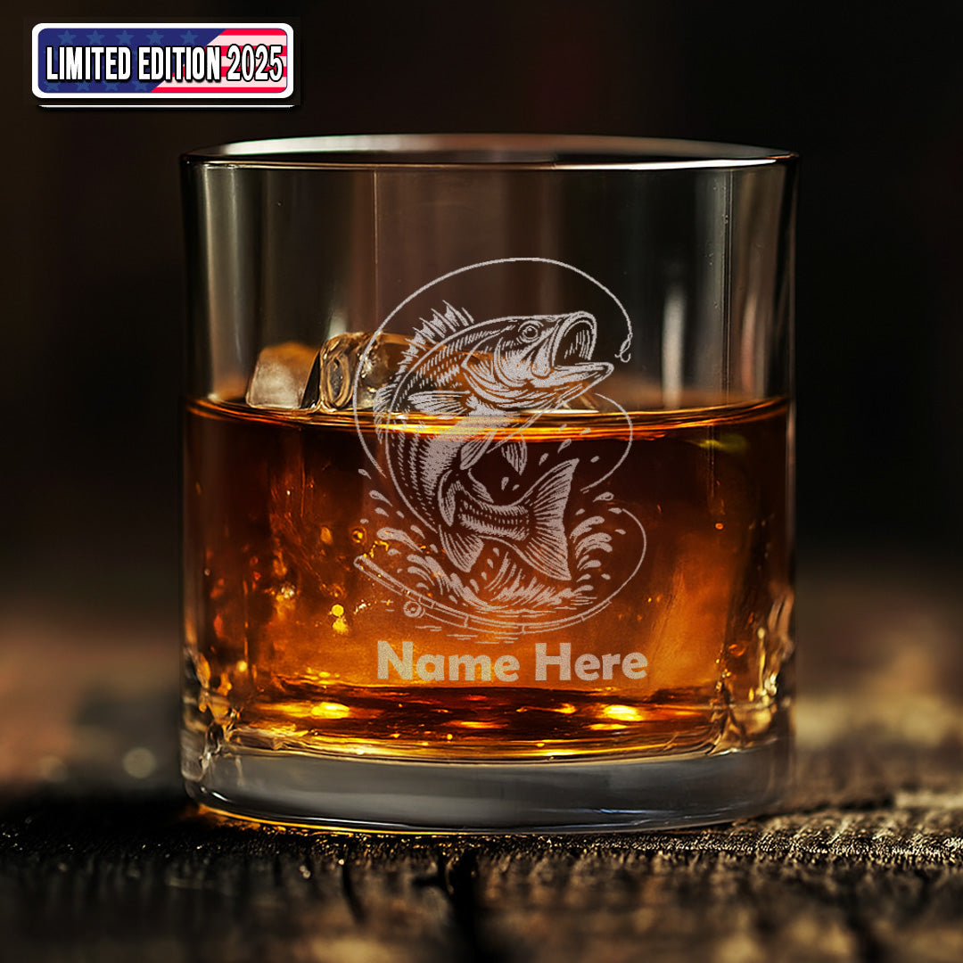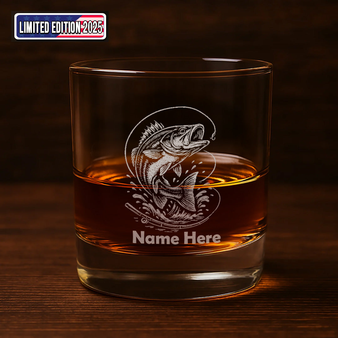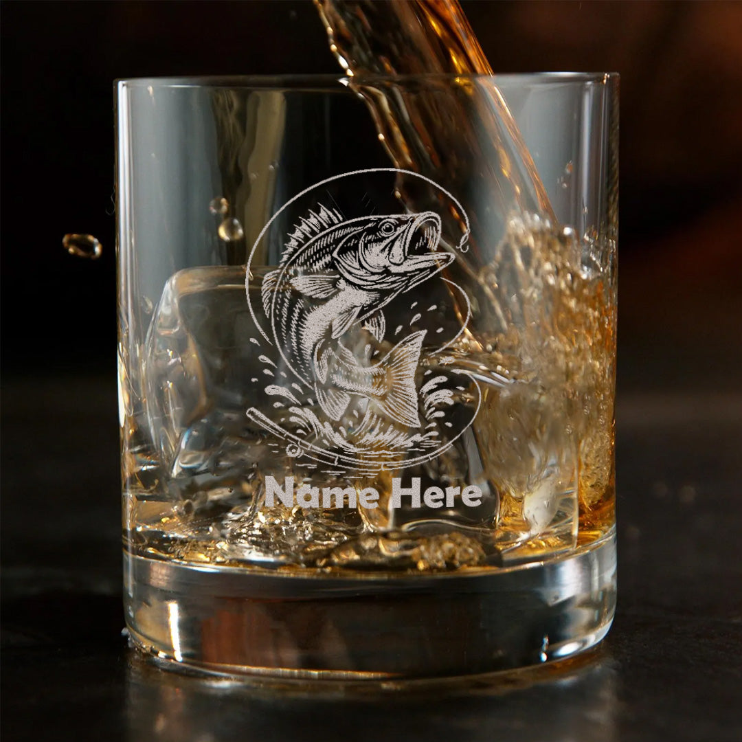 Custom Name Bass Fishing Whiskey Glass – Personalized Engraved Fisherman Gift 2025