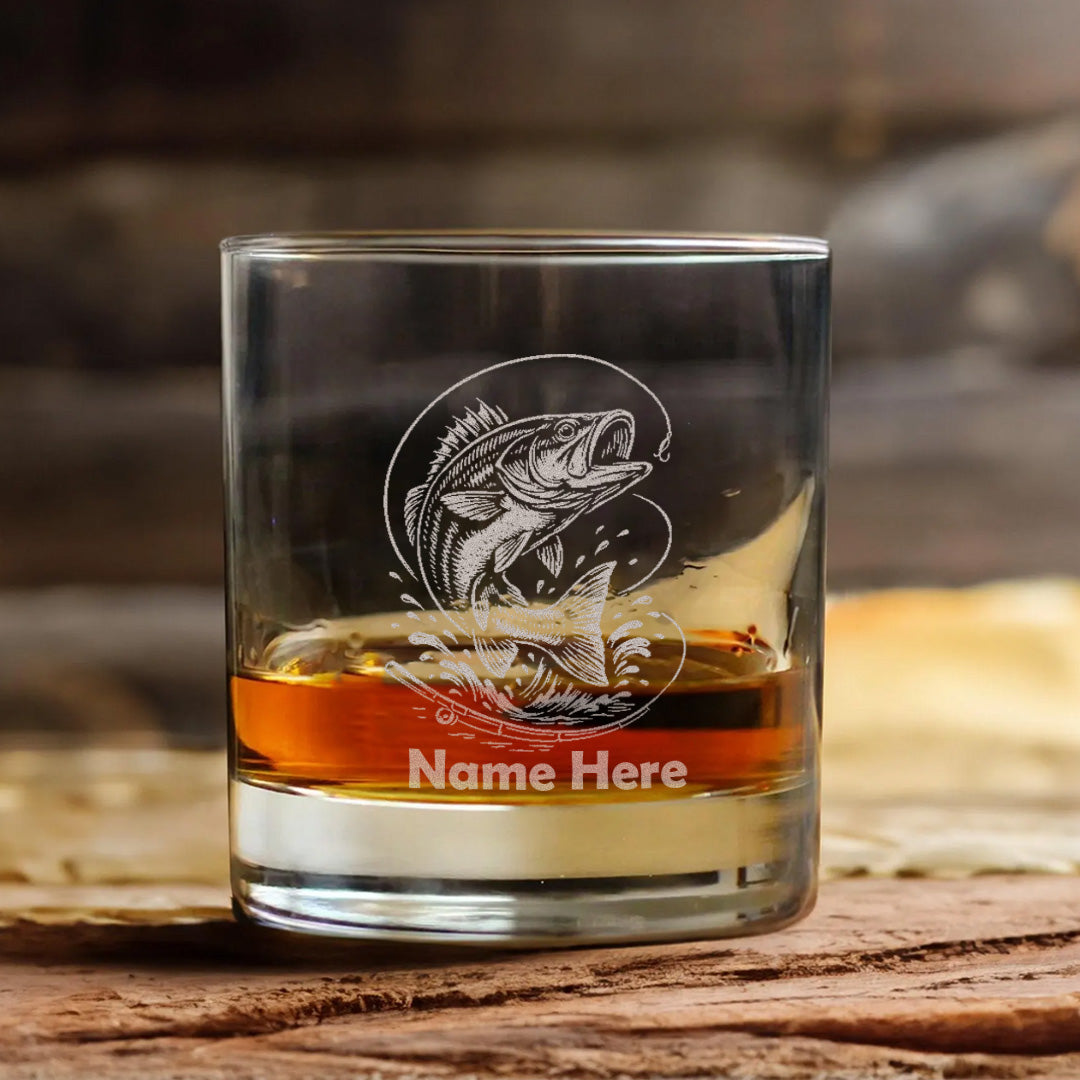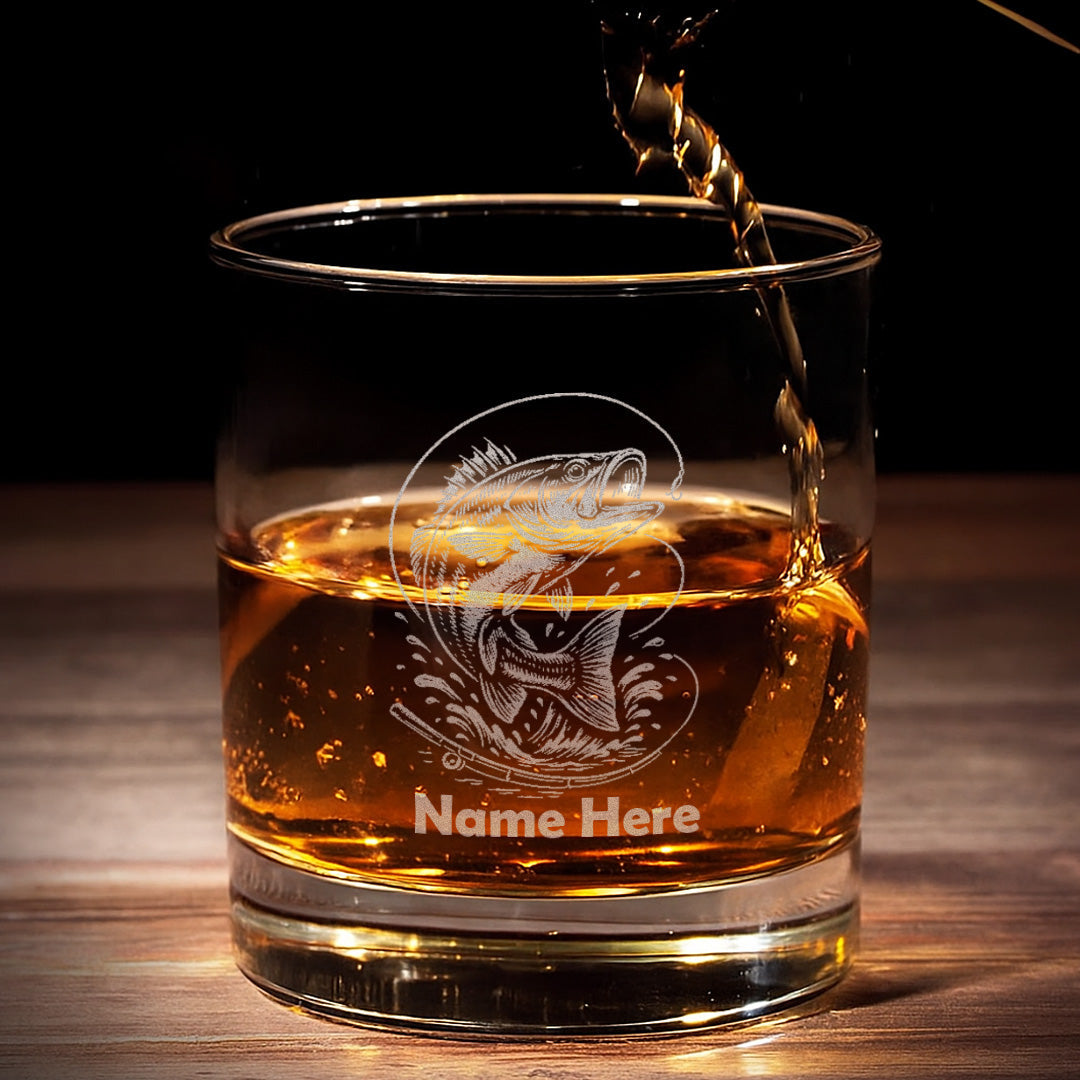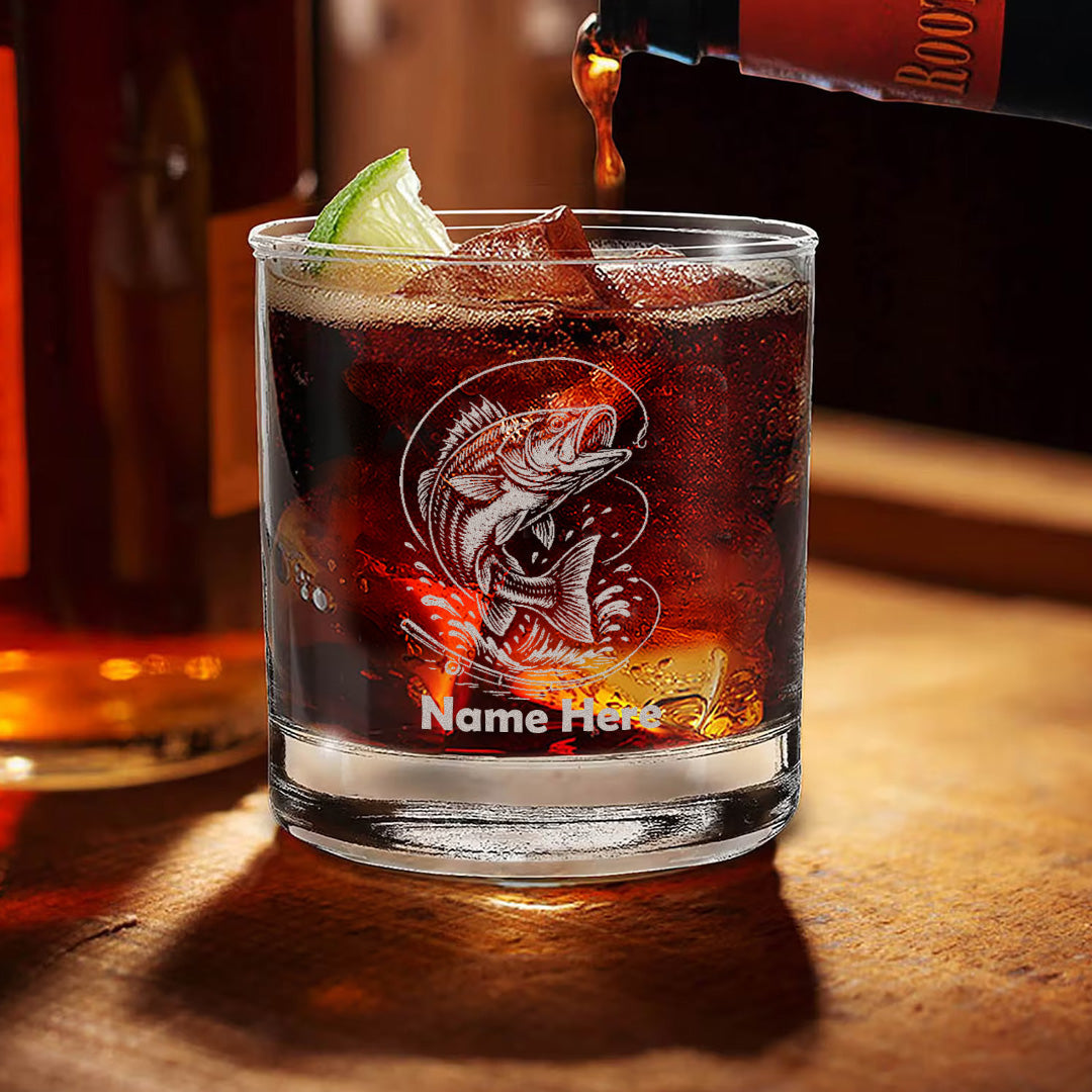 Custom Name Bass Fishing Whiskey Glass – Personalized Engraved Fisherman Gift 2025