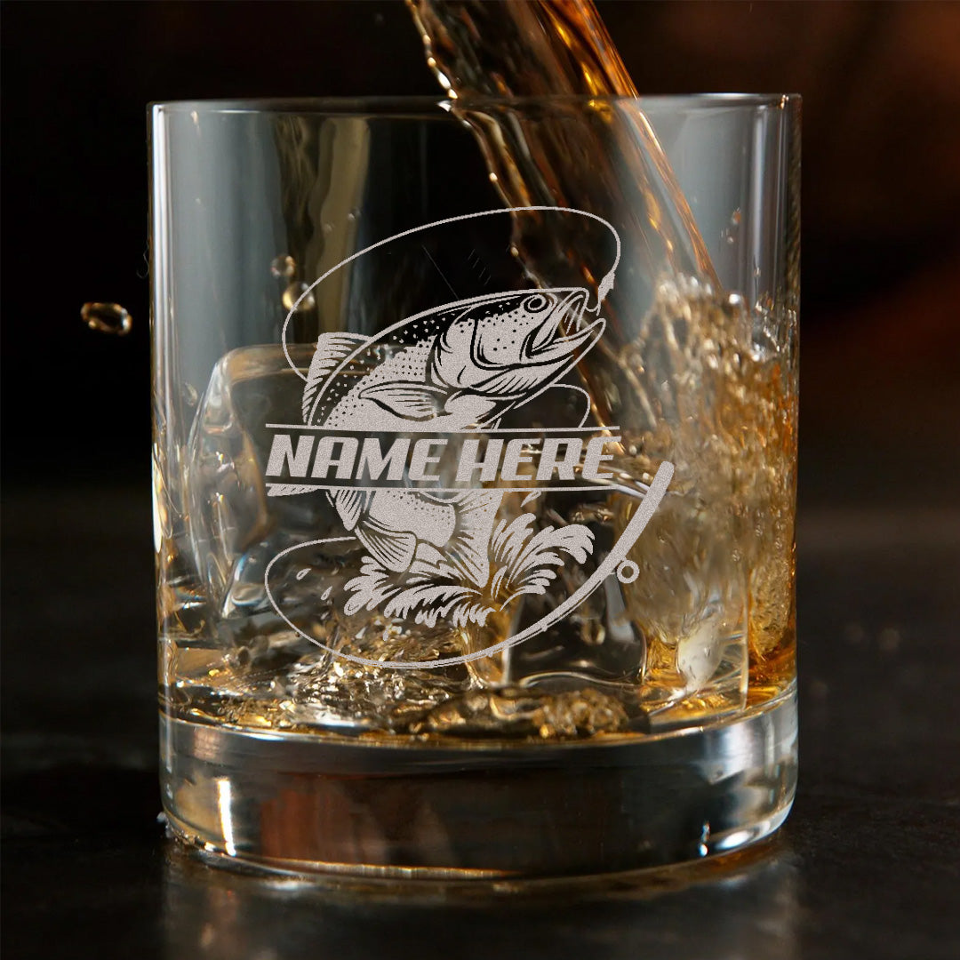 Custom Name Trout Fishing Whiskey Glass – Personalized Engraved Fly Fisherman Gift
