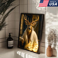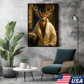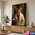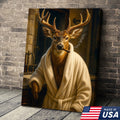 Deer Canvas Wall Art – Stylish Buck in Bathrobe Smoking Cigar Rustic Bathroom Decor for Hunters