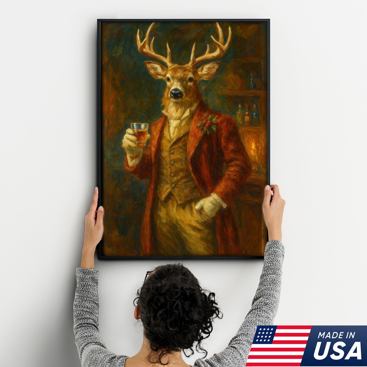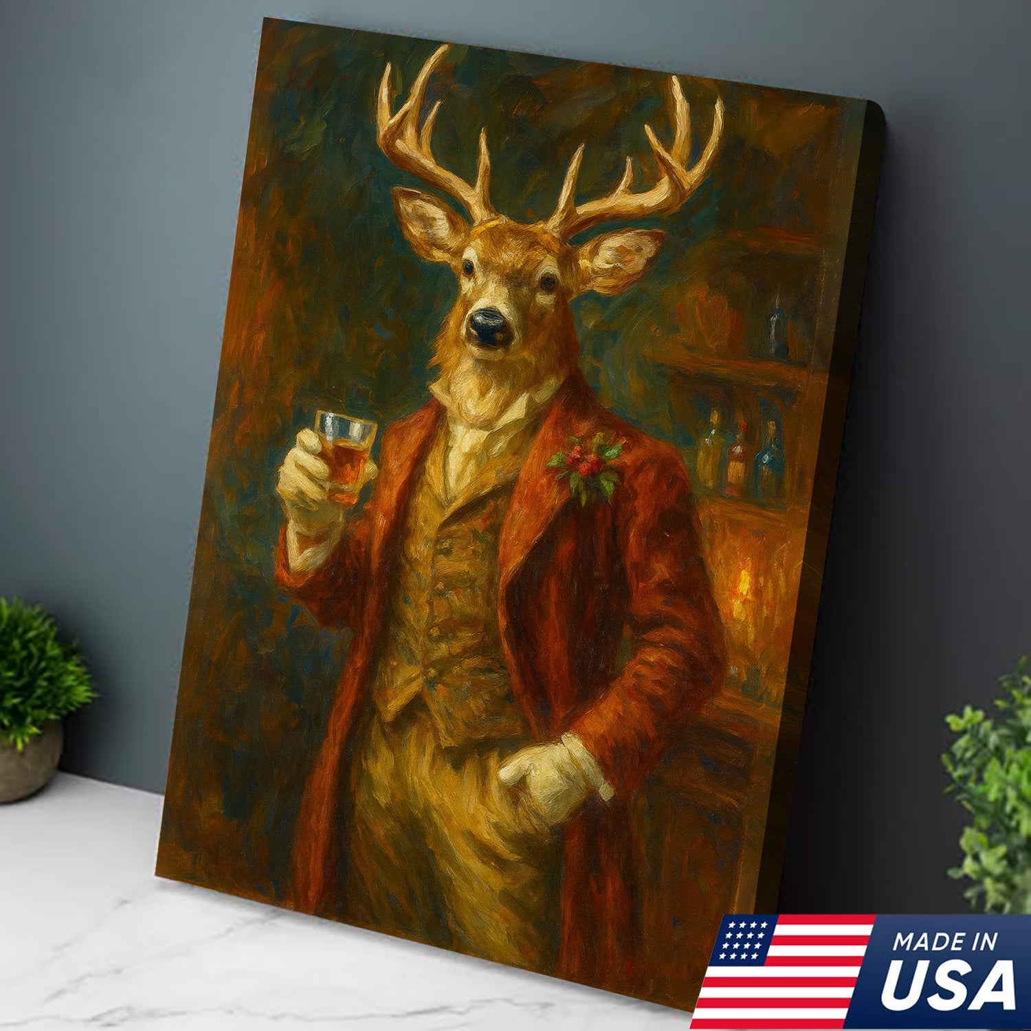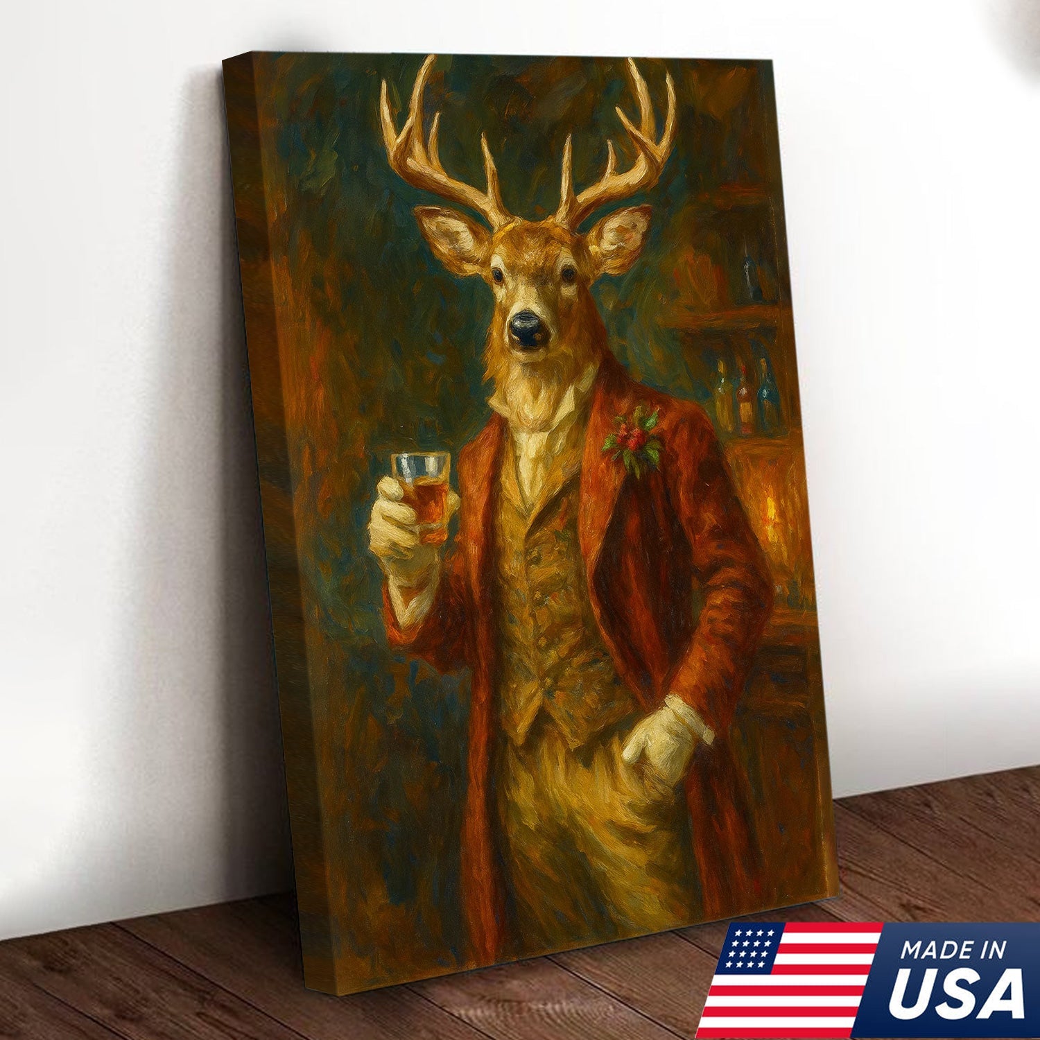 Deer Gentleman Wall Art Canvas – Whiskey Hunter Canvas Decor for Rustic Cabin, Lodge & Man Cave Gift