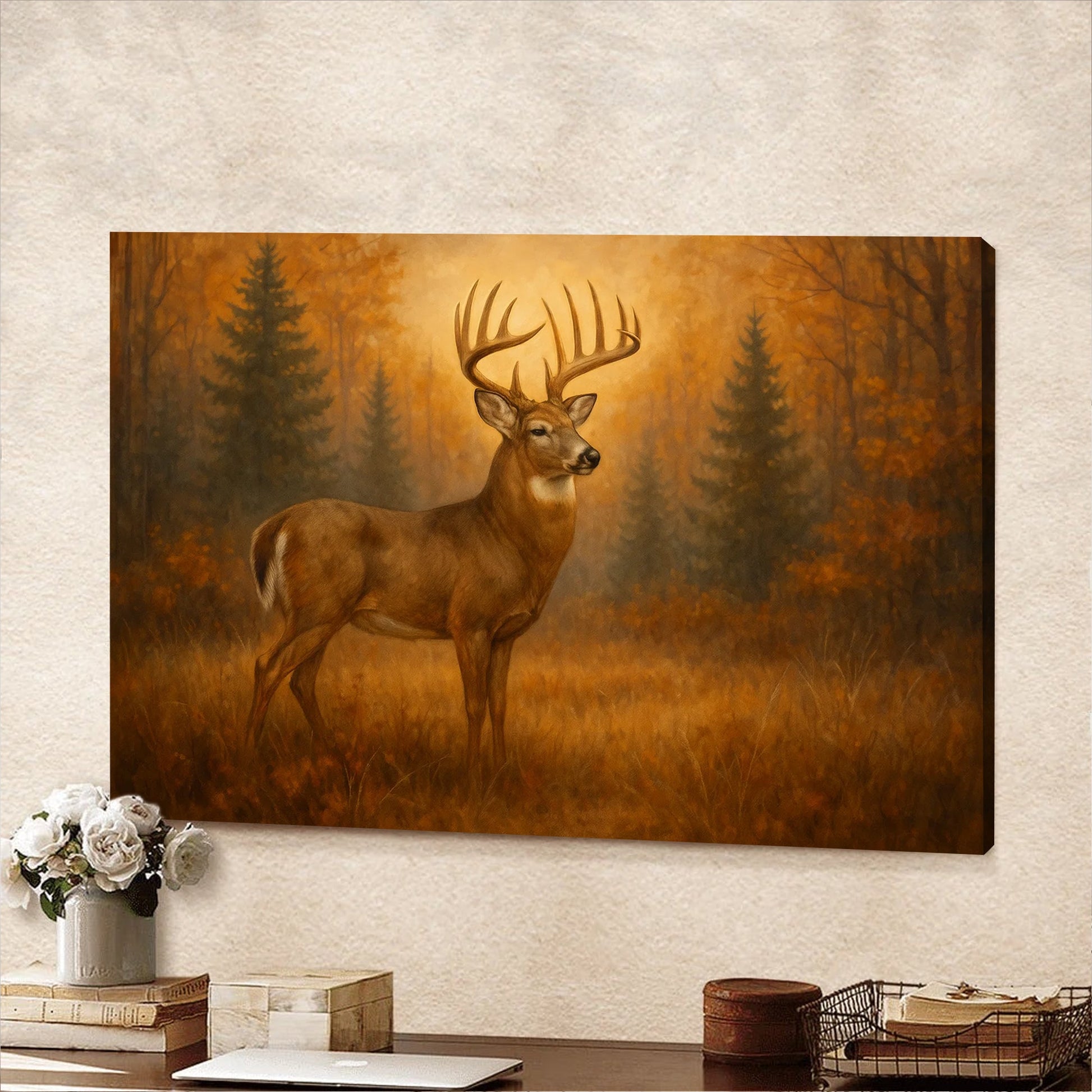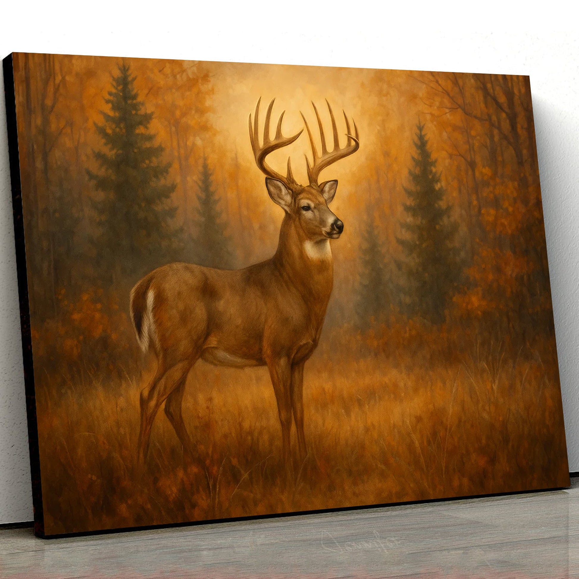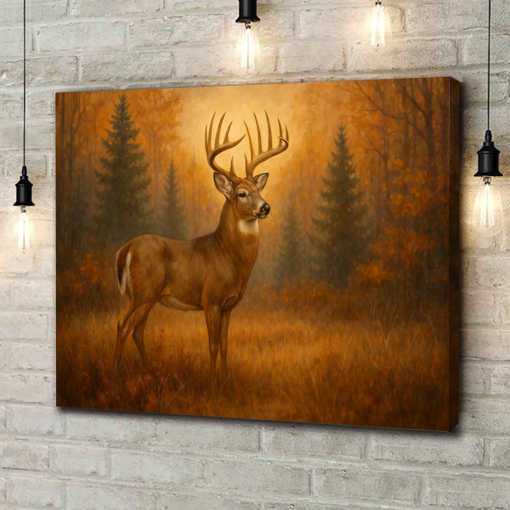 Deer In Autumn Forest Wall Art Canvas – Majestic Buck Hunting Cabin & Lodge Decor