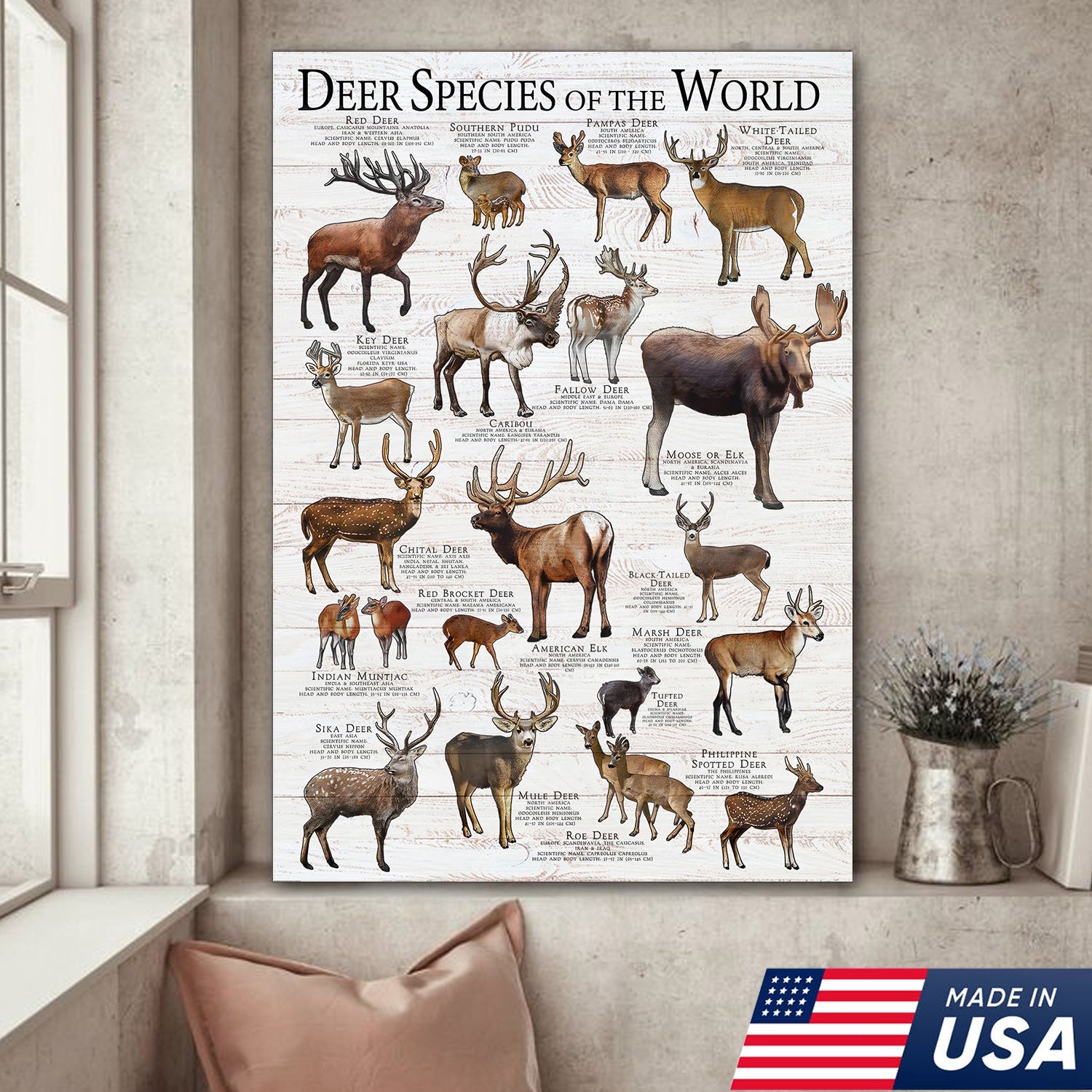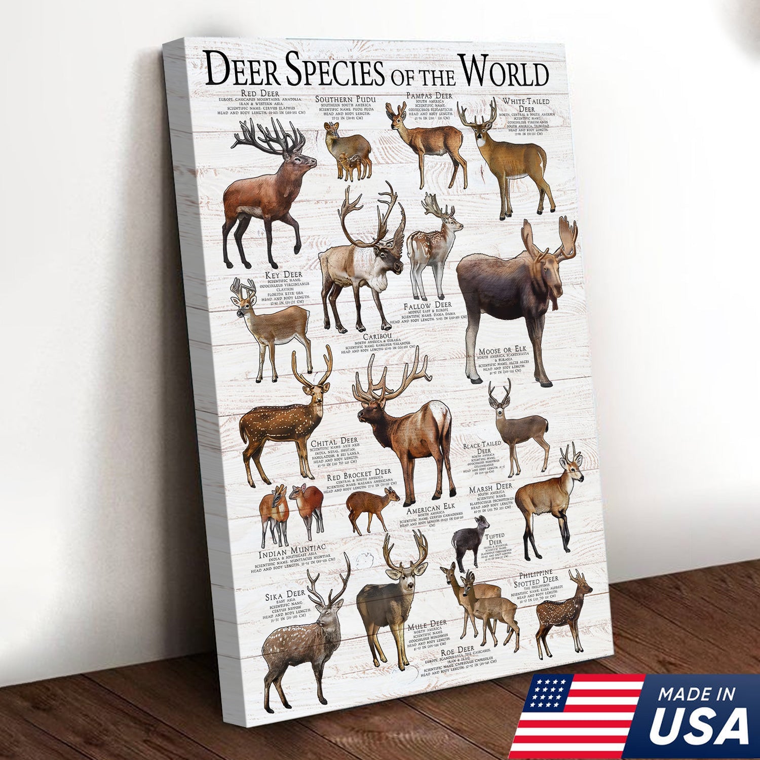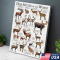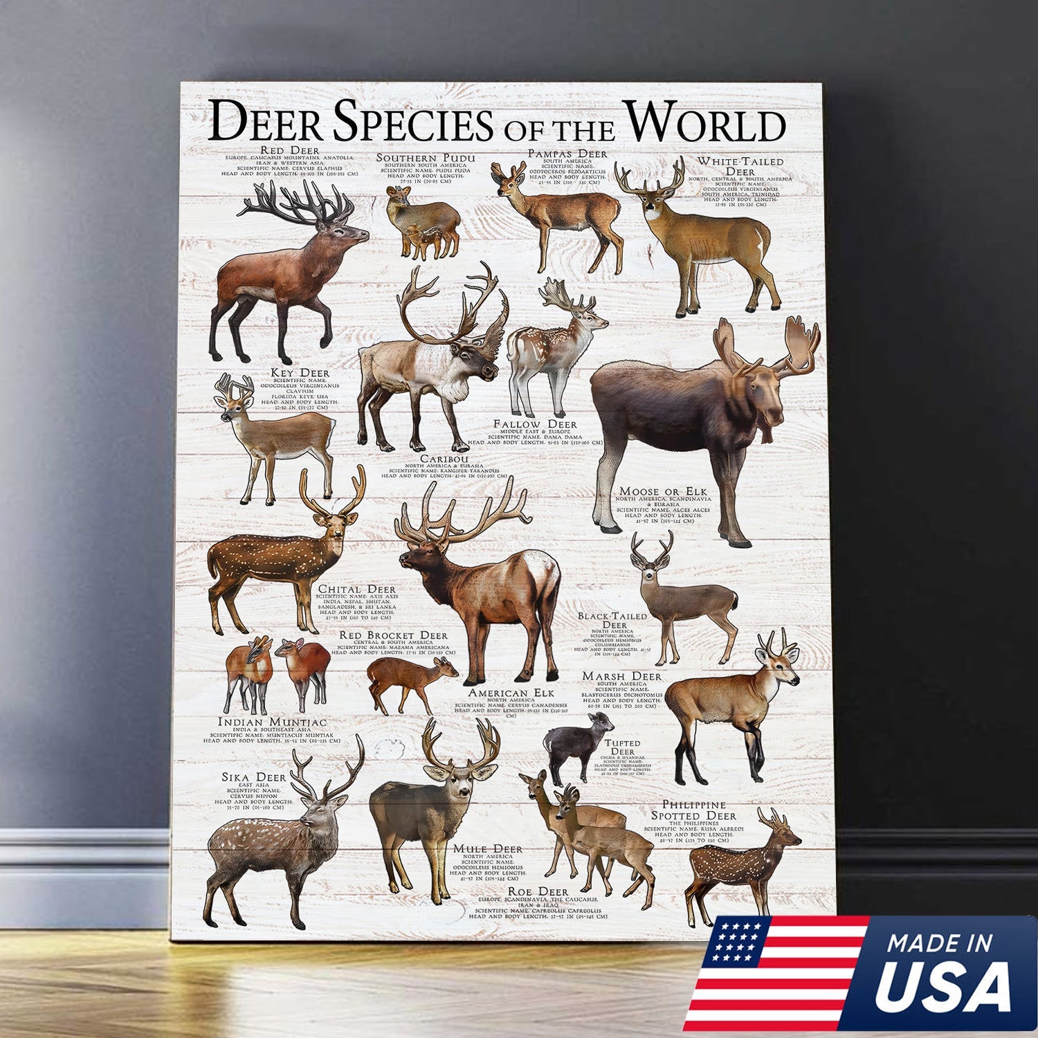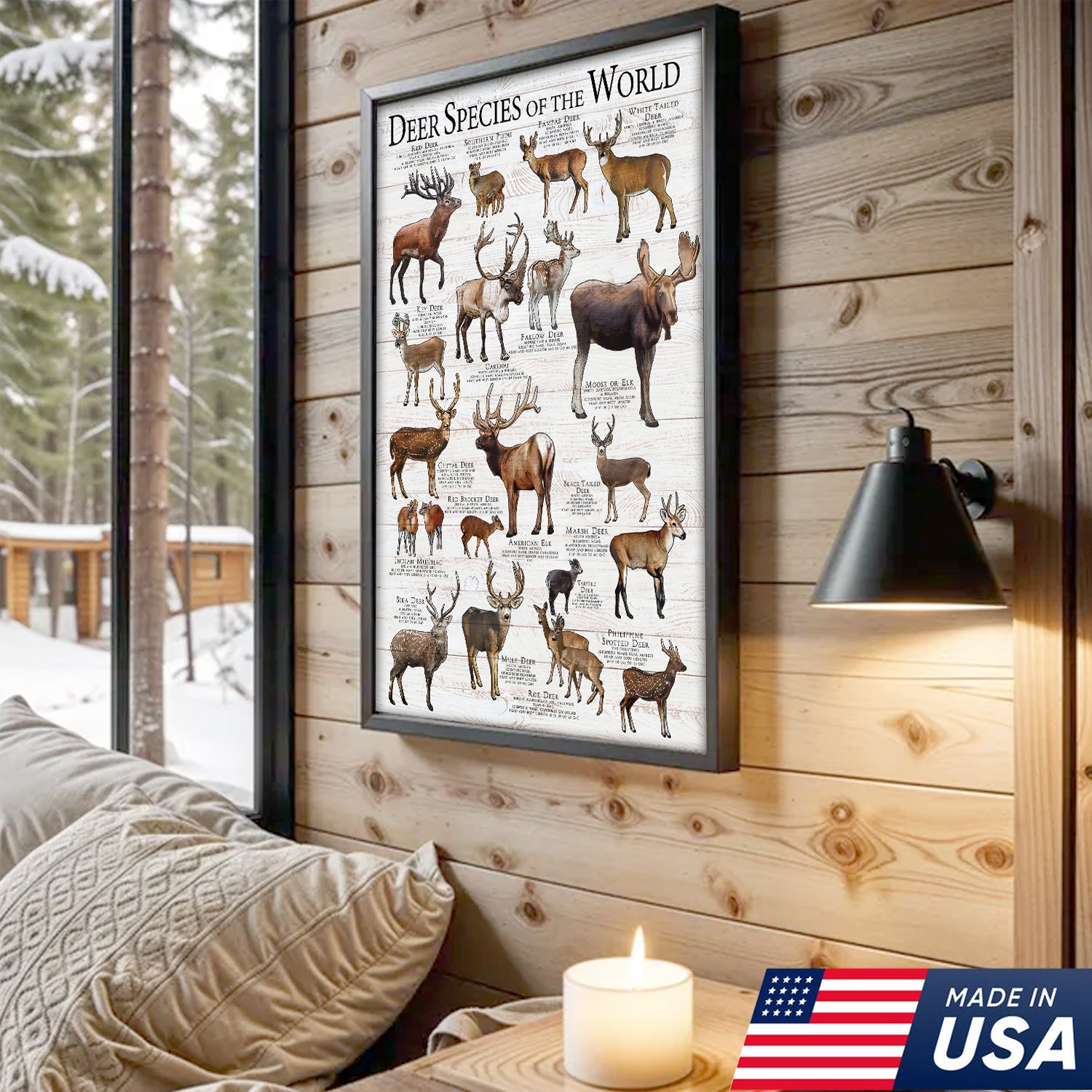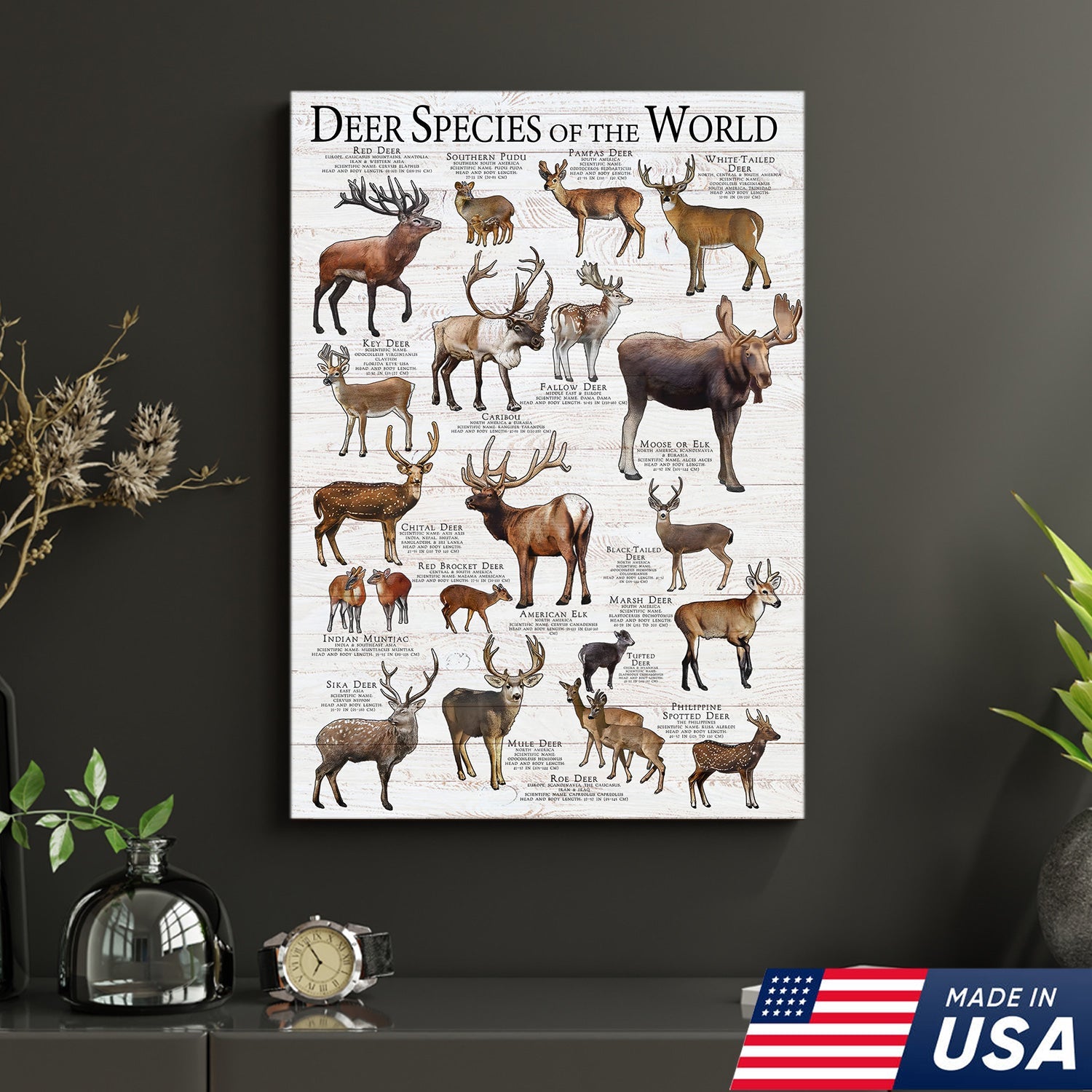 Deer Species of the World Vintage Educational Canvas Poster – Rustic Wildlife Wall Art for Cabin & Nature Lovers