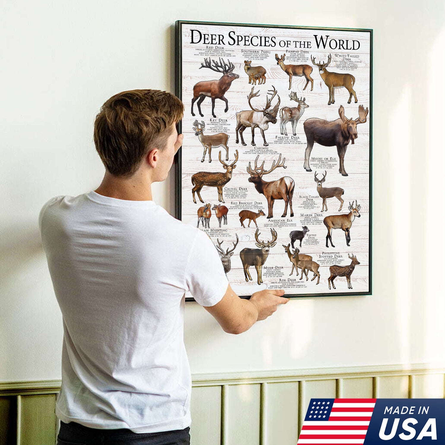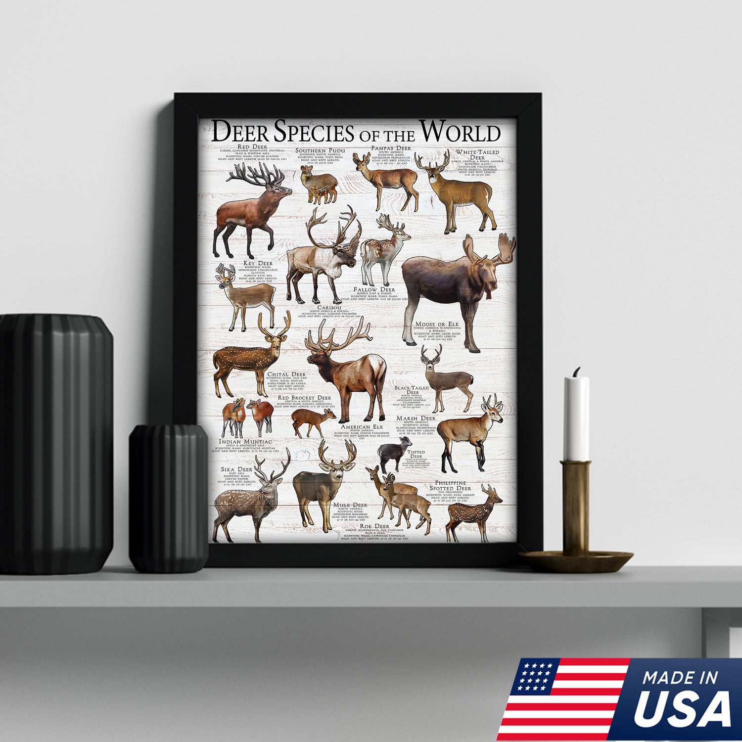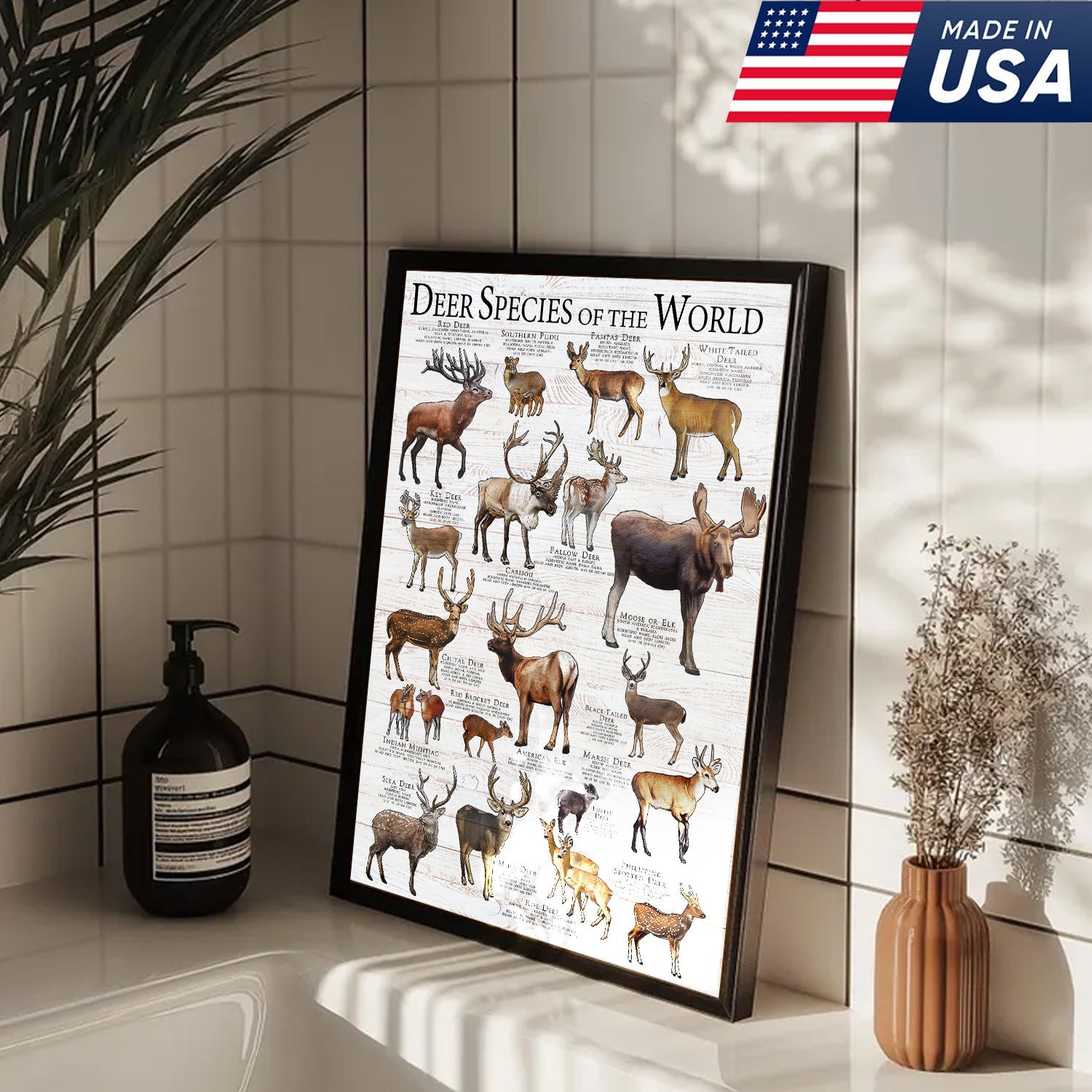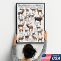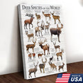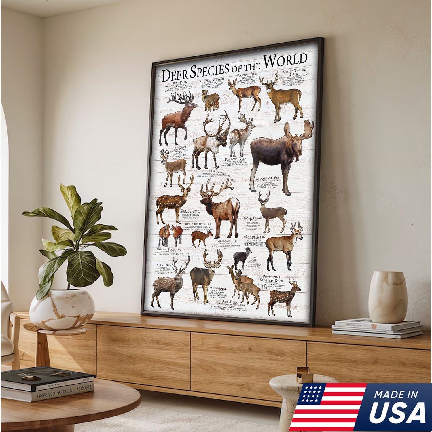 Deer Species of the World Vintage Educational Canvas Poster – Rustic Wildlife Wall Art for Cabin & Nature Lovers