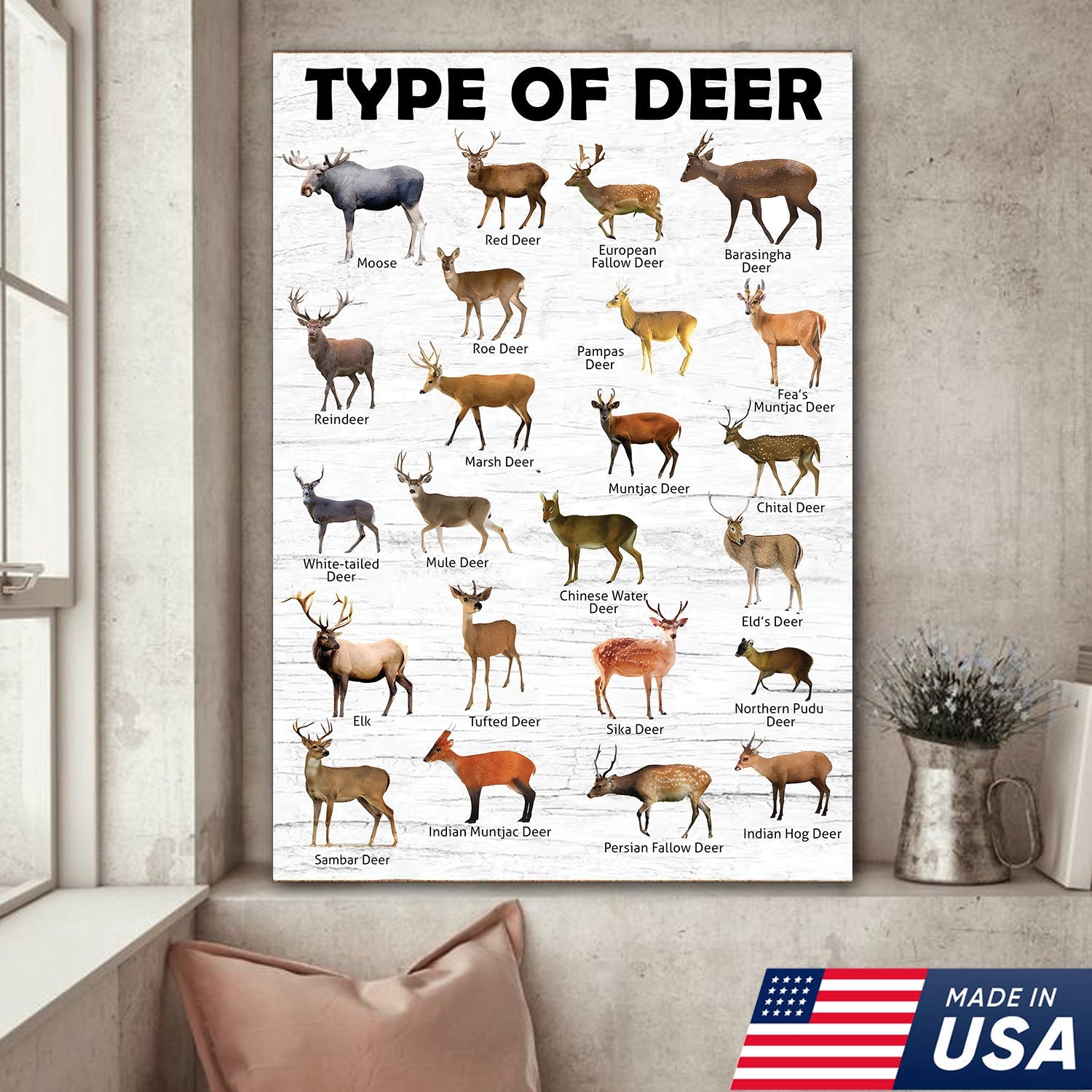 Deer Species Wall Art - Wildlife Educational Canvas - Hunting Lodge Decoration