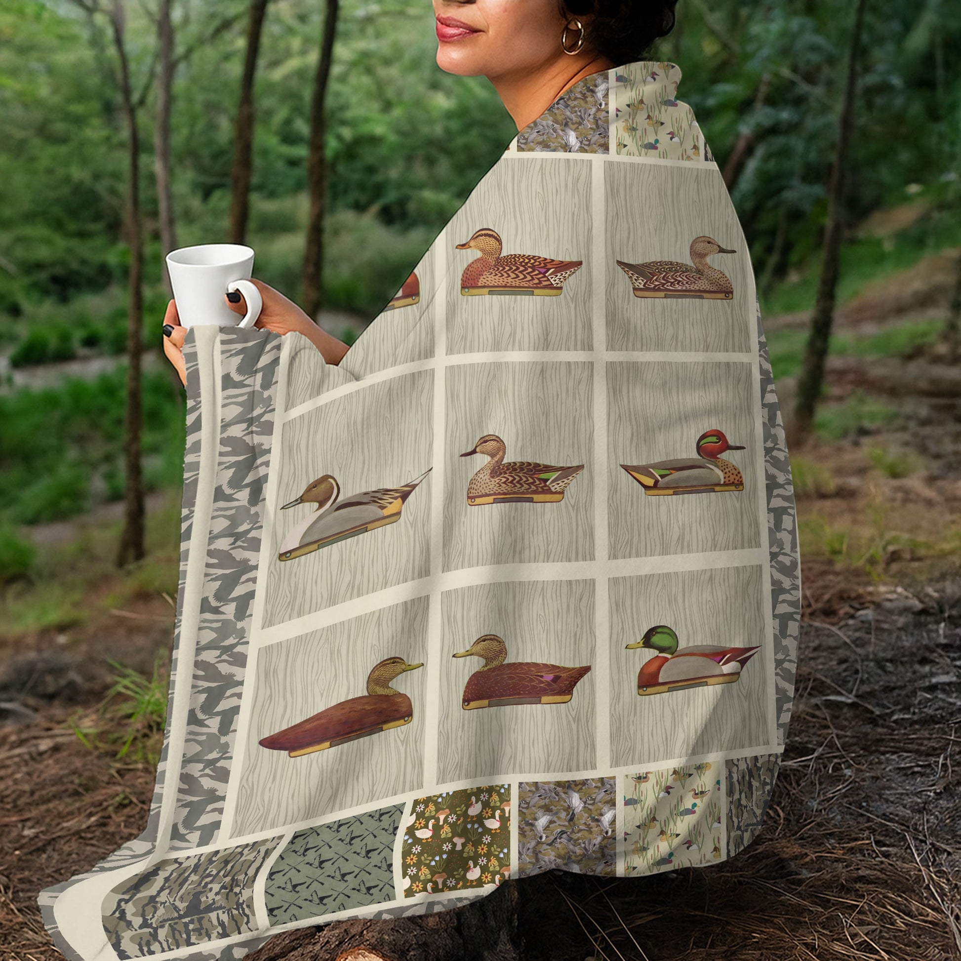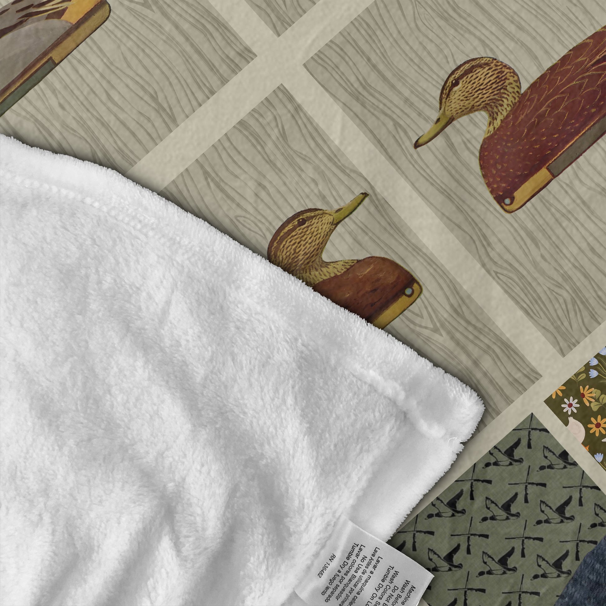 Duck Decoy Patchwork Fleece Blanket – Cozy Hunting Cabin Gift