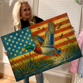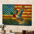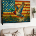 Duck Hunting Canvas – Mallard Flying with American Flag Rustic Wall Art for Hunters, Man Cave & Cabin Décor