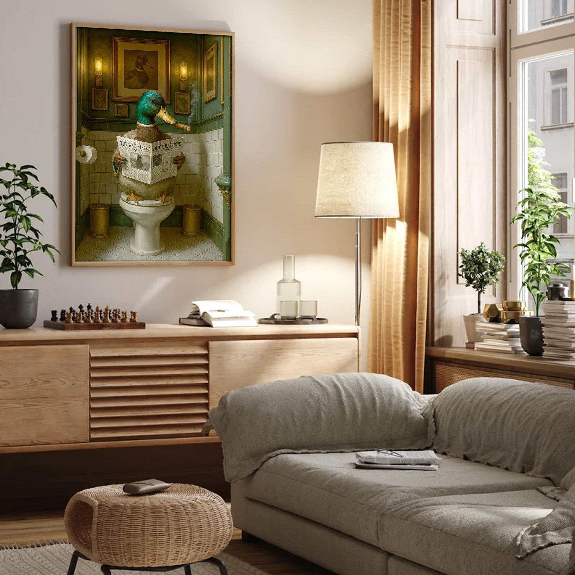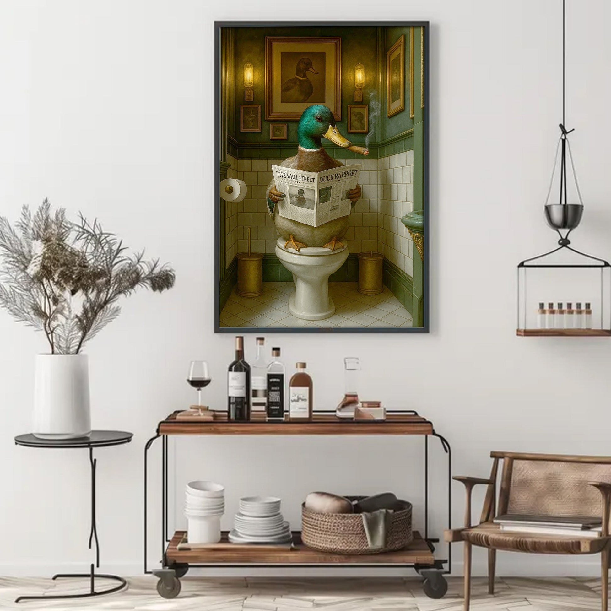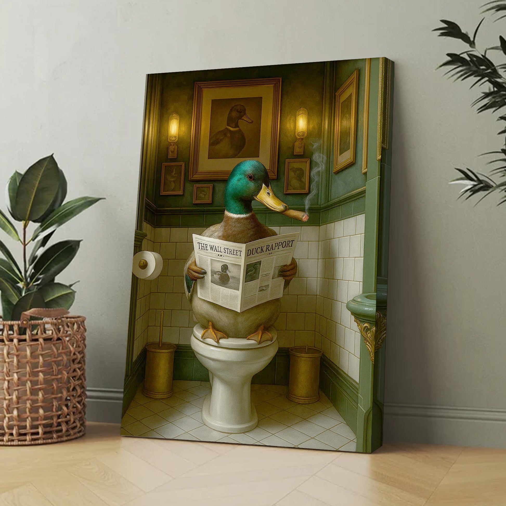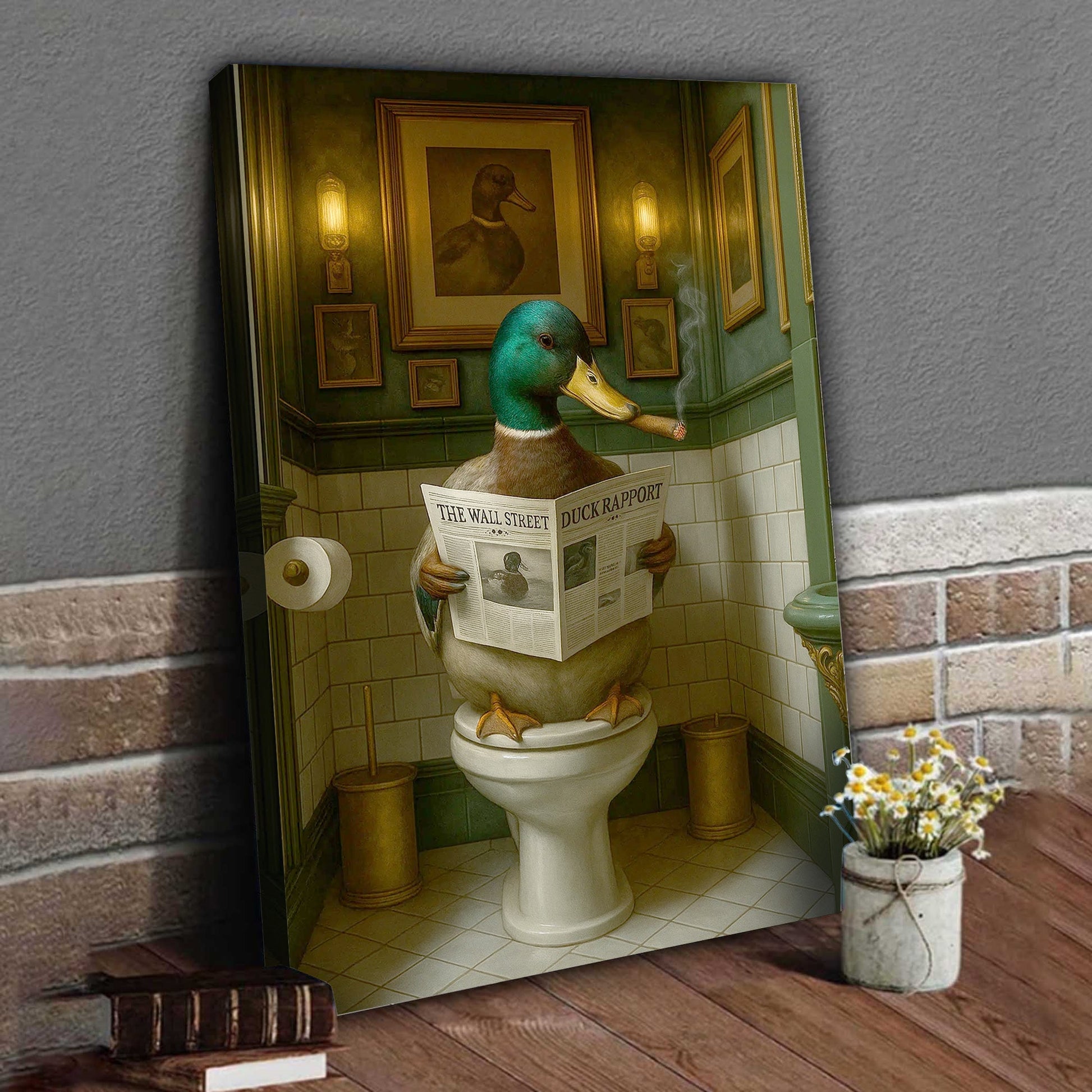 Duck Reading News Bathroom Wall Art – Rustic Decor for Men, Hunting Cabin Poster Hunters