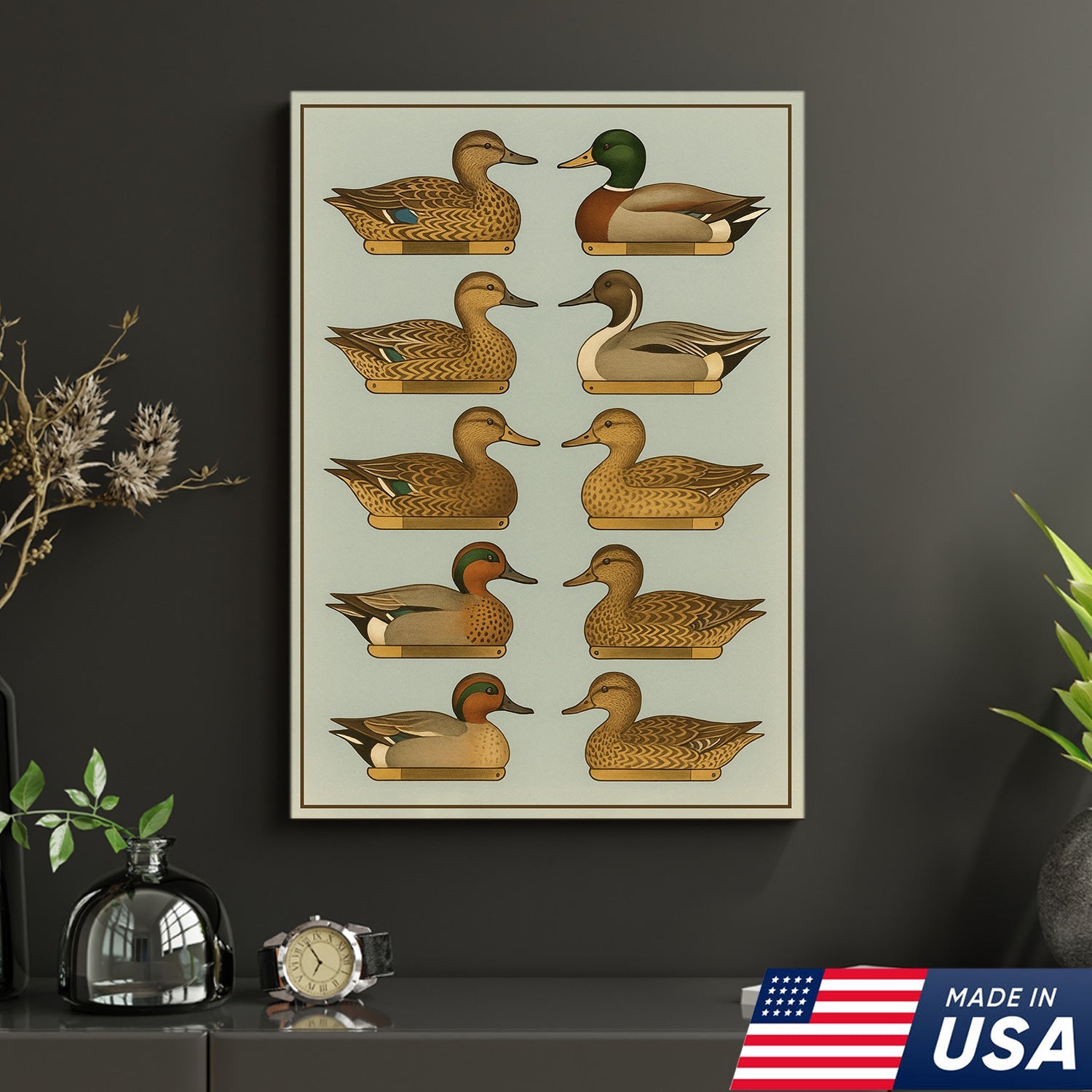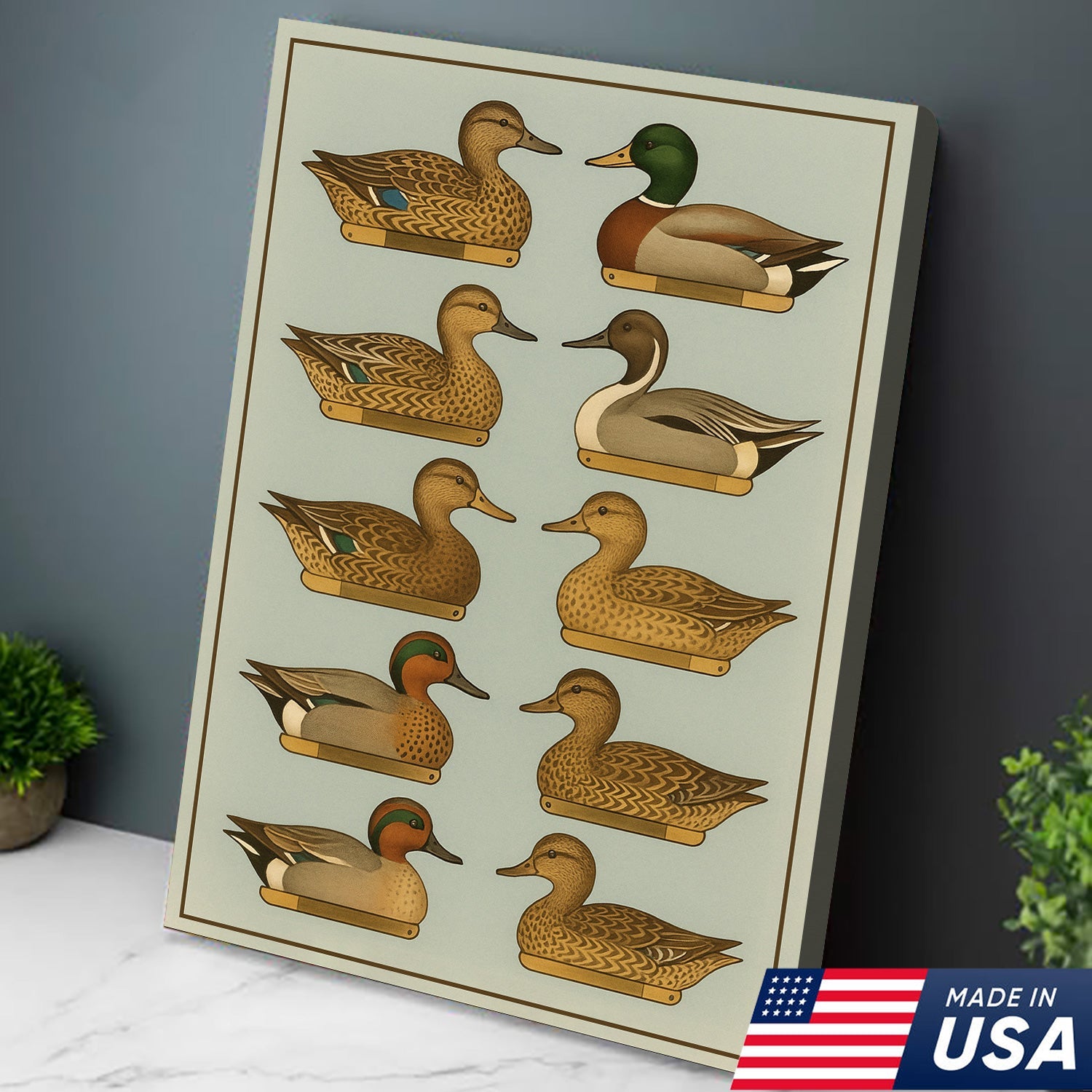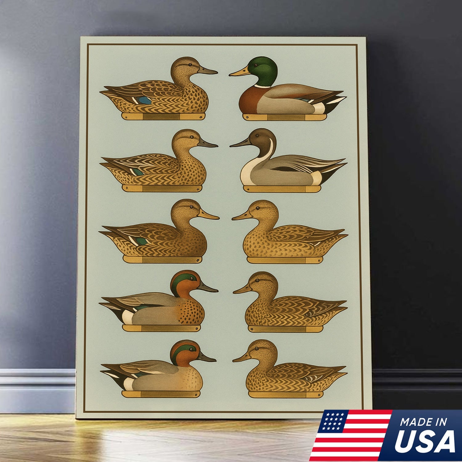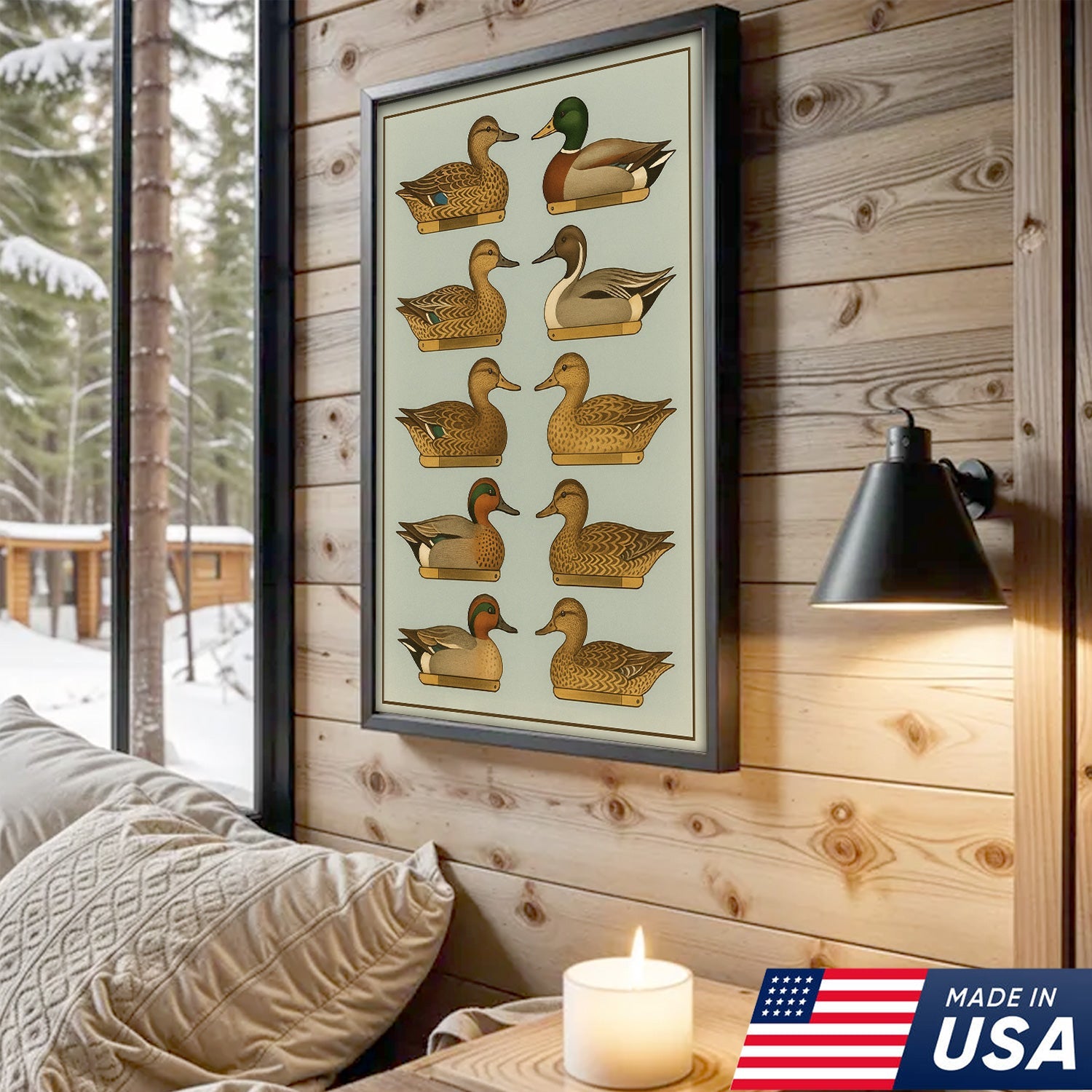Duck Species Identification Canvas Wall Art – Rustic Hunting Lodge Decor for Hunters & Bird Lovers