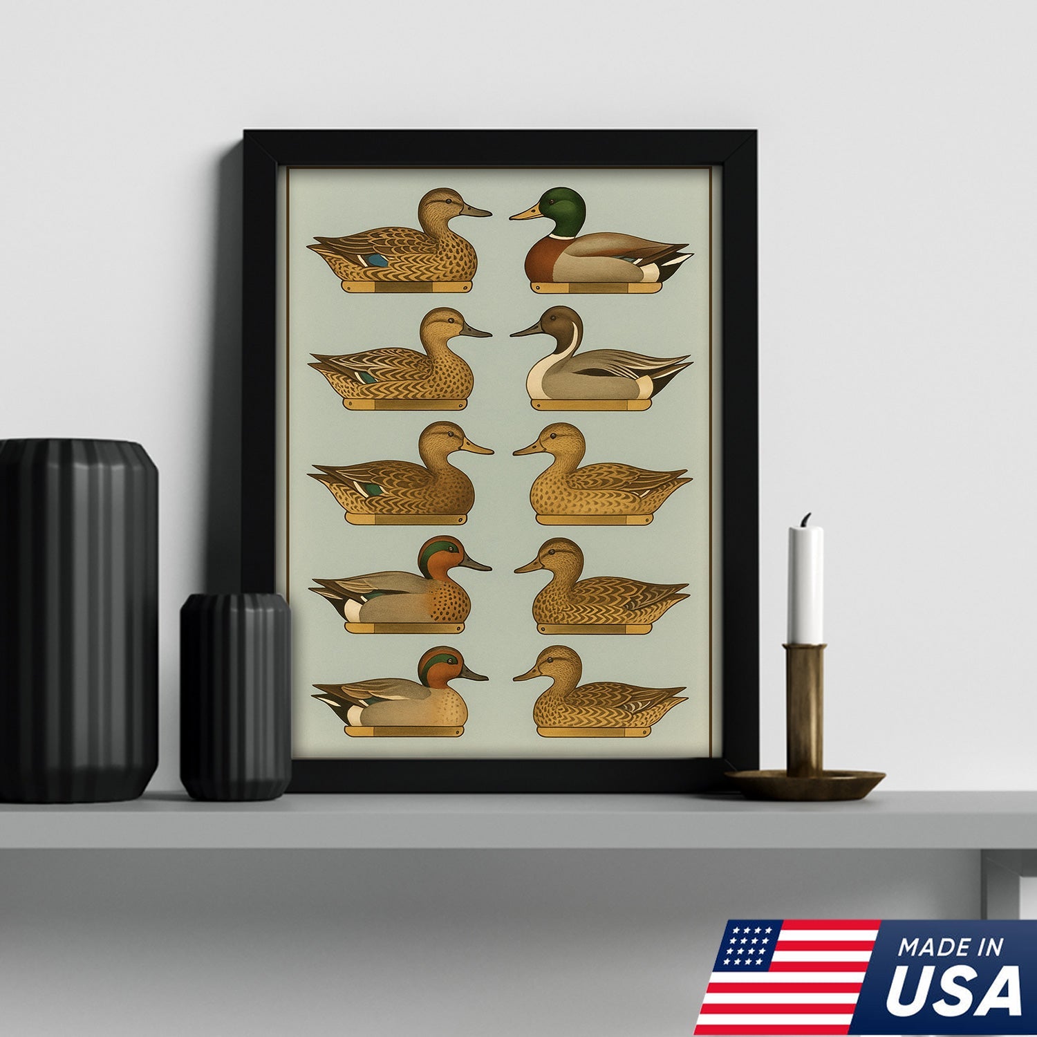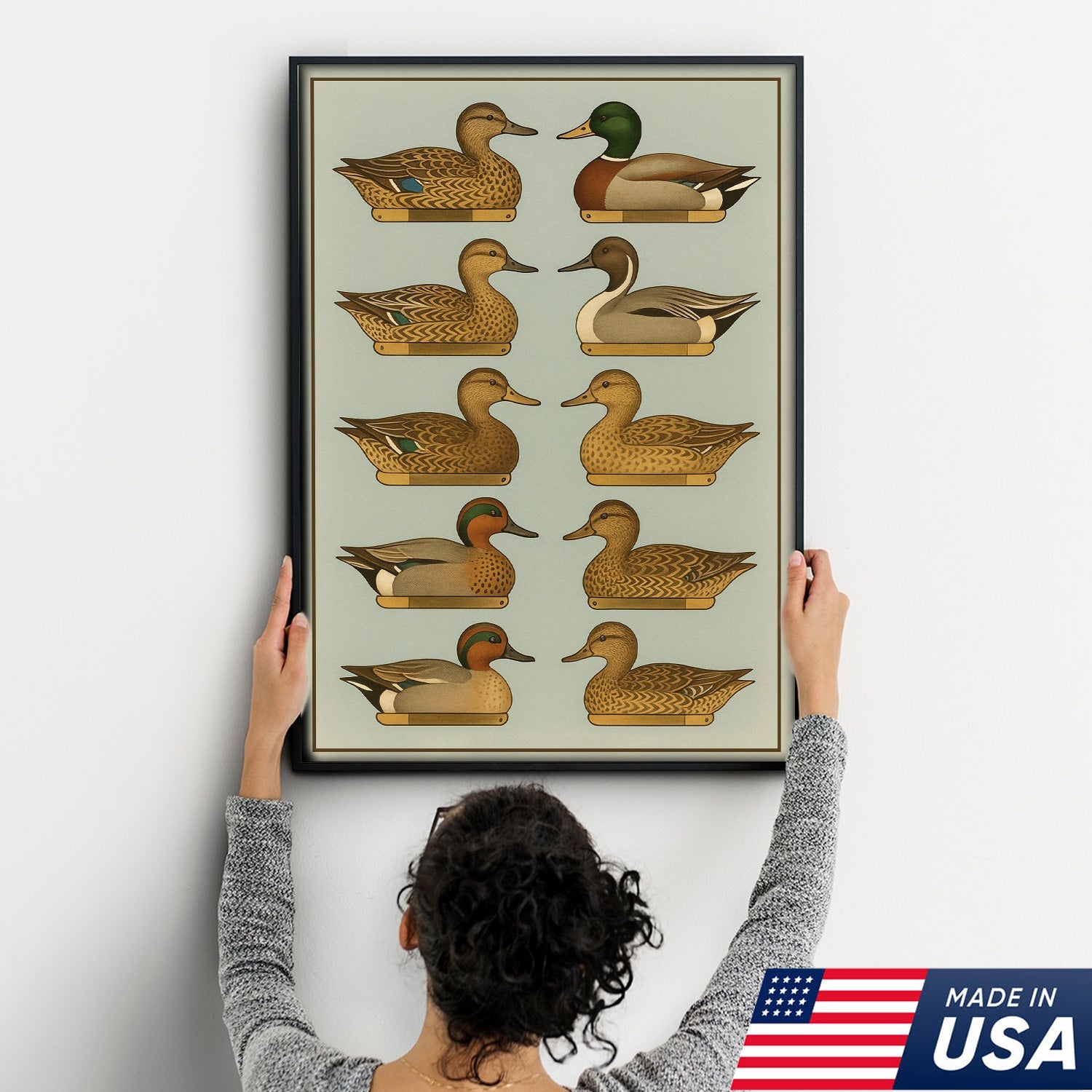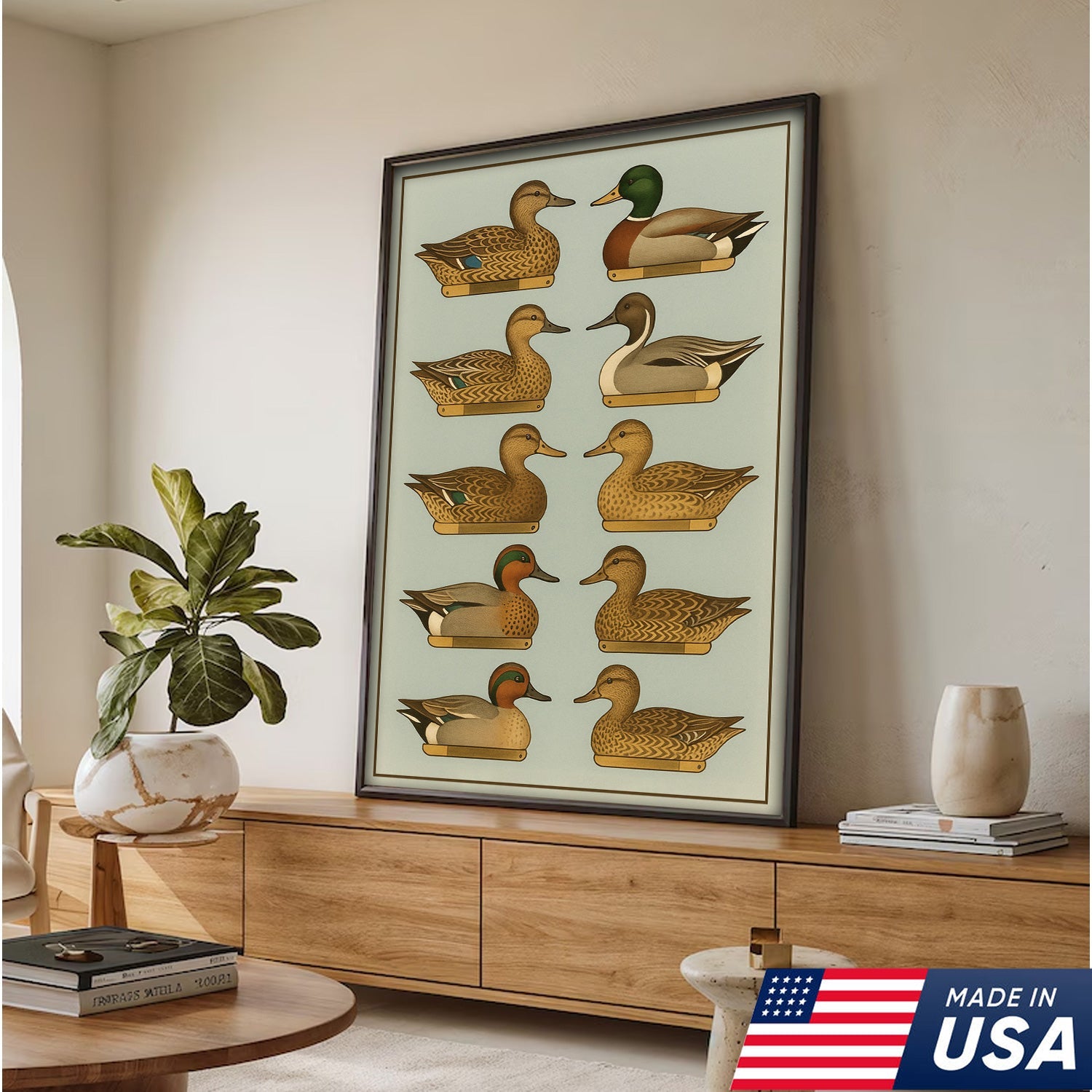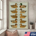 Duck Species Identification Canvas Wall Art – Rustic Hunting Lodge Decor for Hunters & Bird Lovers