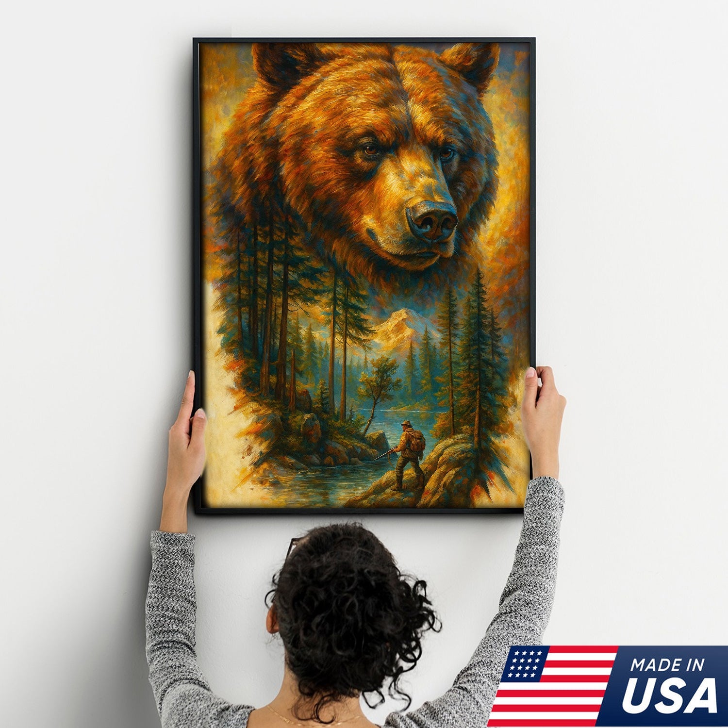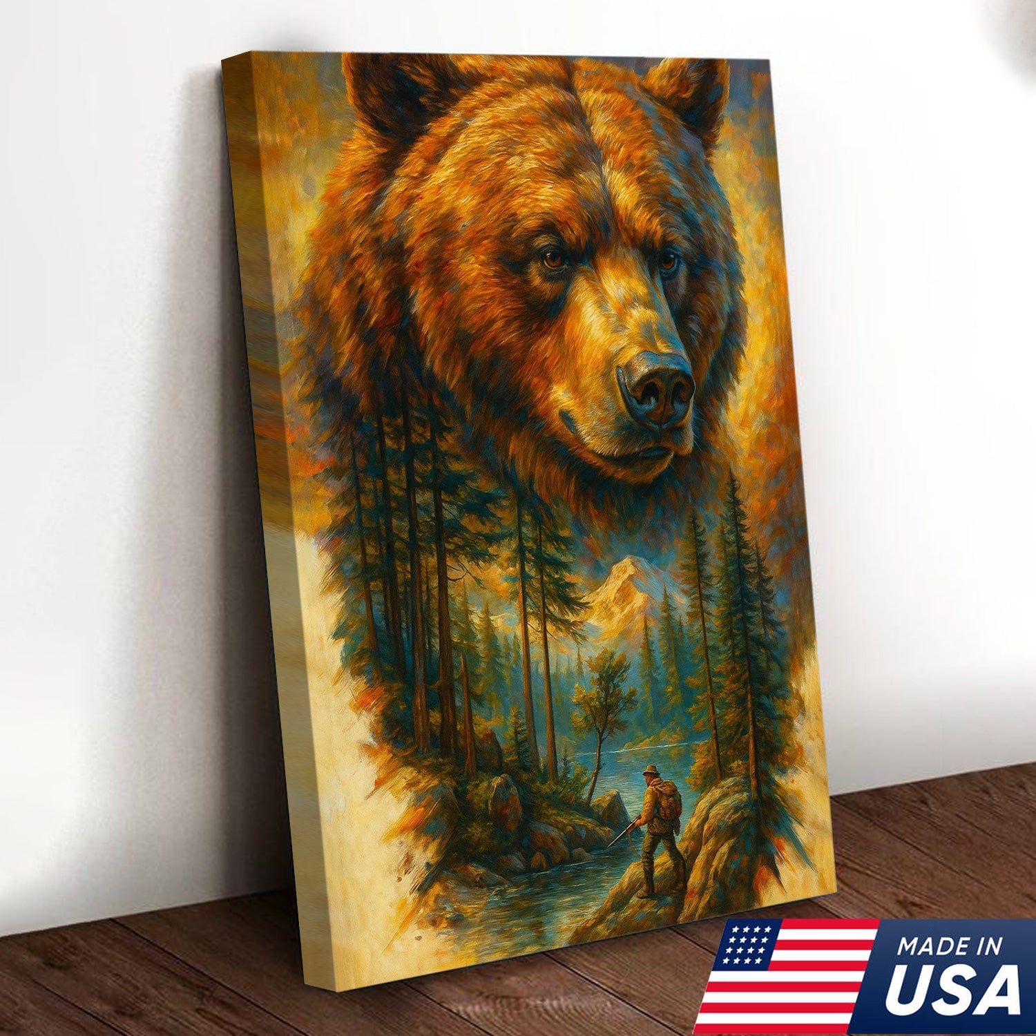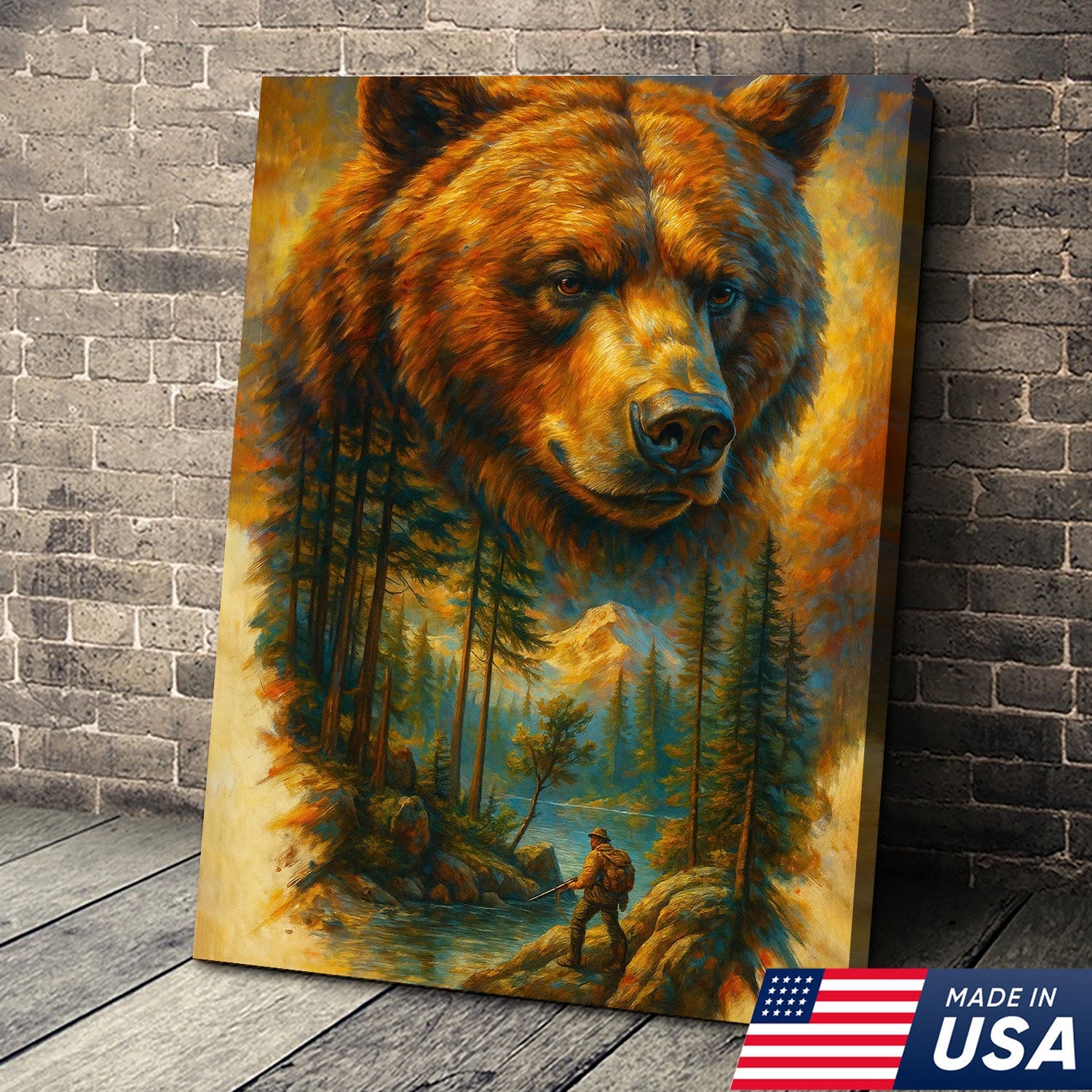 Epic Bear Canvas Wall Art – Wilderness Mountain Adventure Scene, Bold Nature Decor