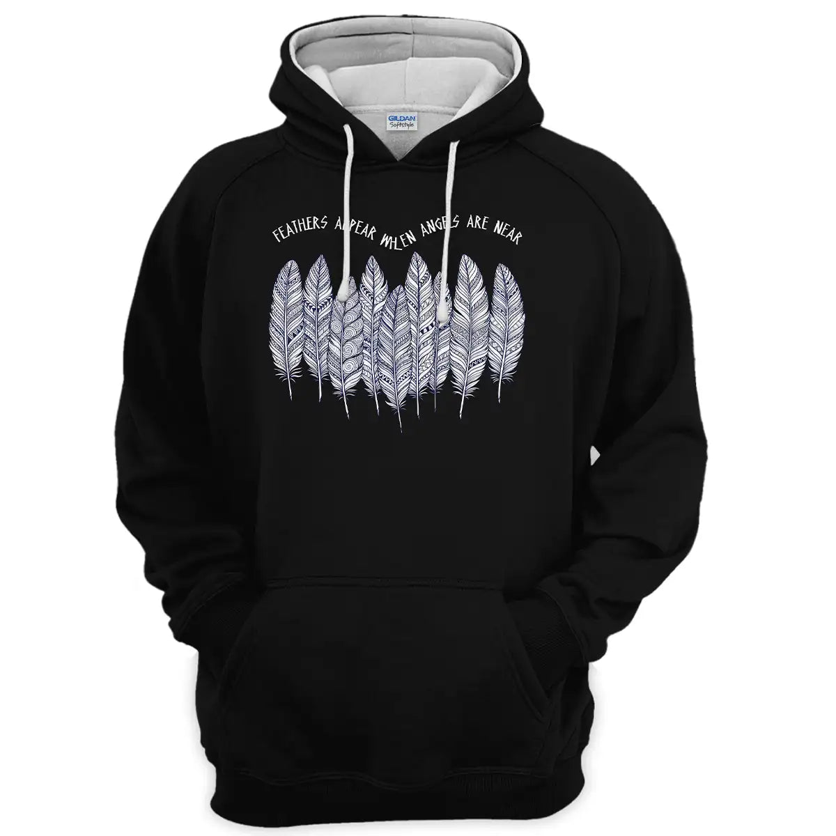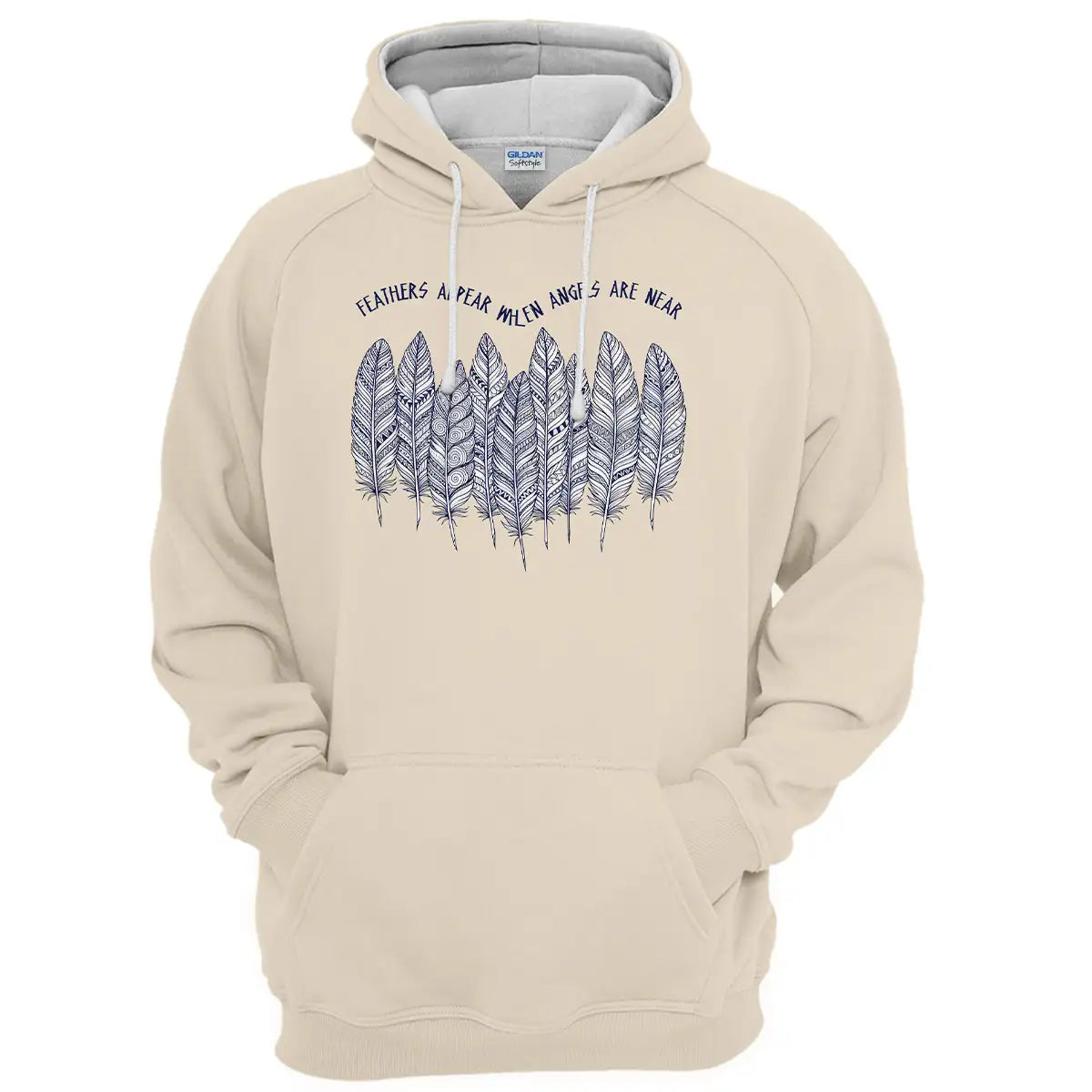 This Feathers Appear When Angels Are Near Hoodie is more than just a piece of clothing — it's a symbol of spirituality and connection. designed by Native American beliefs, the feather design represents strength, protection, and guidance from the spiritual realm. The message on the hoodie, "Feathers Appear When Angels Are Near," serves as a reminder of the angelic presence in our lives. Whether you're looking for comfort, inspiration, or a meaningful gift, this hoodie offers both style and a sense of spiritual connection. Wear it to feel uplifted and protected, or share it as a gift to inspire others.