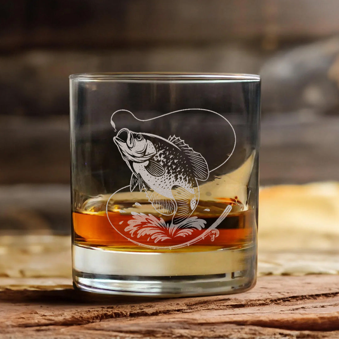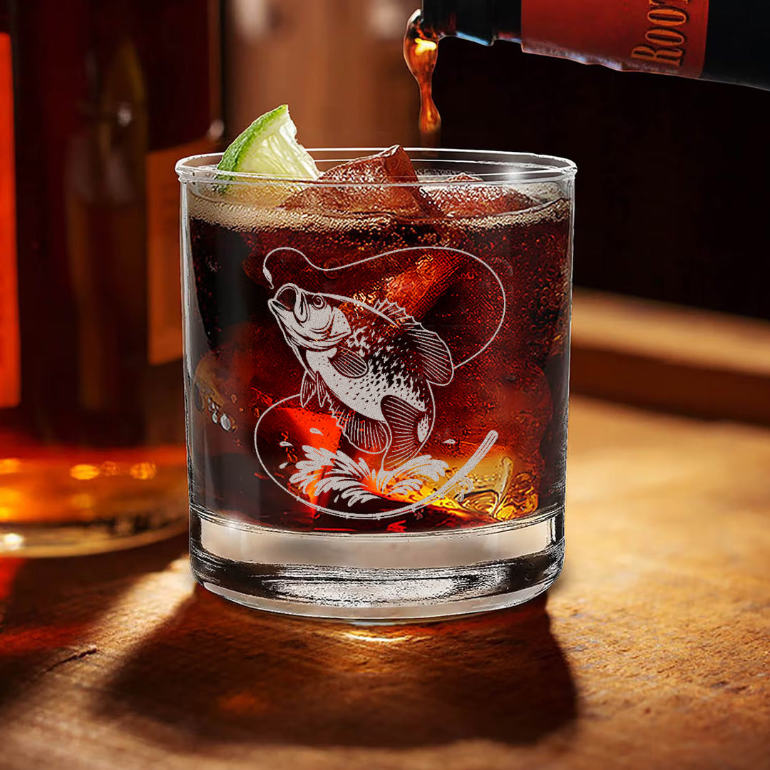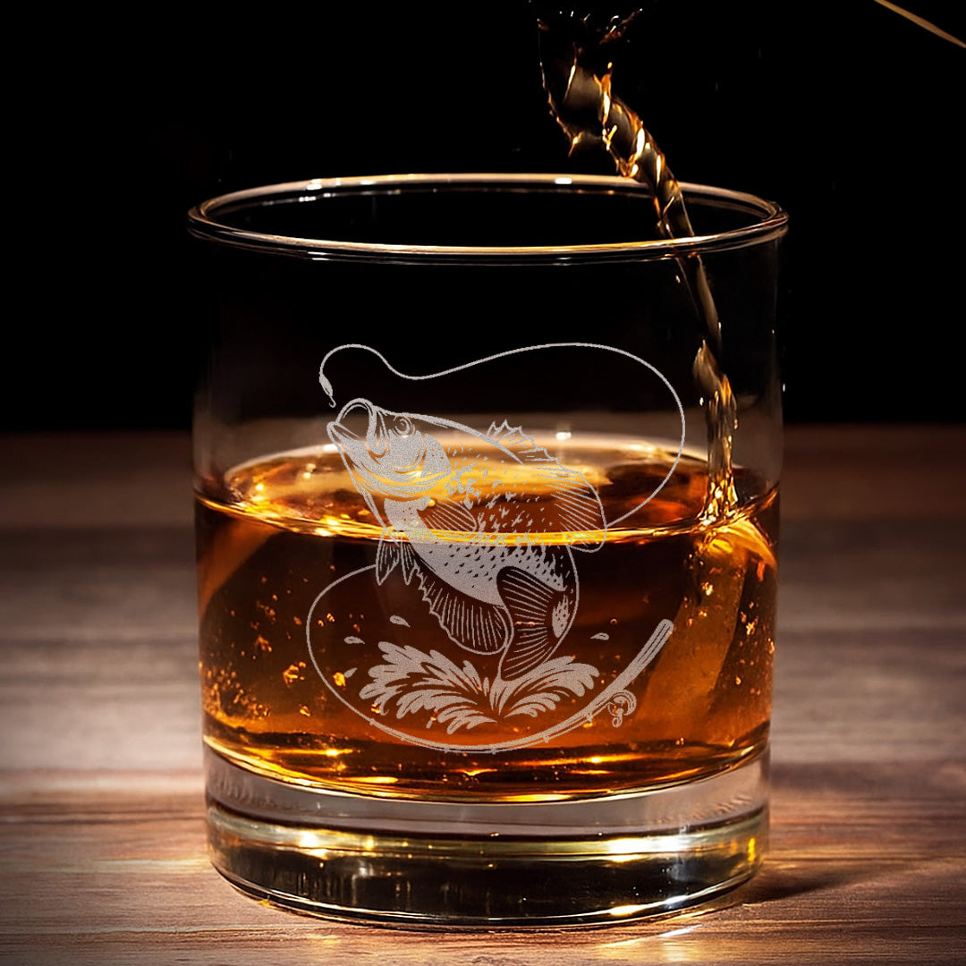 Fishing Engraved Whiskey Glass, Custom Rocks Glass Gift for Fisherman, Outdoor Barware