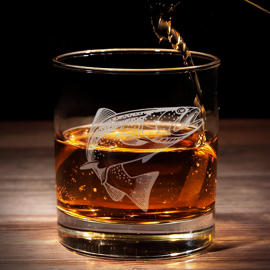 Fishing Engraved Whiskey Glass, Custom Rocks Glass with Fish Design, Gift for Men, Rustic Barware 2025
