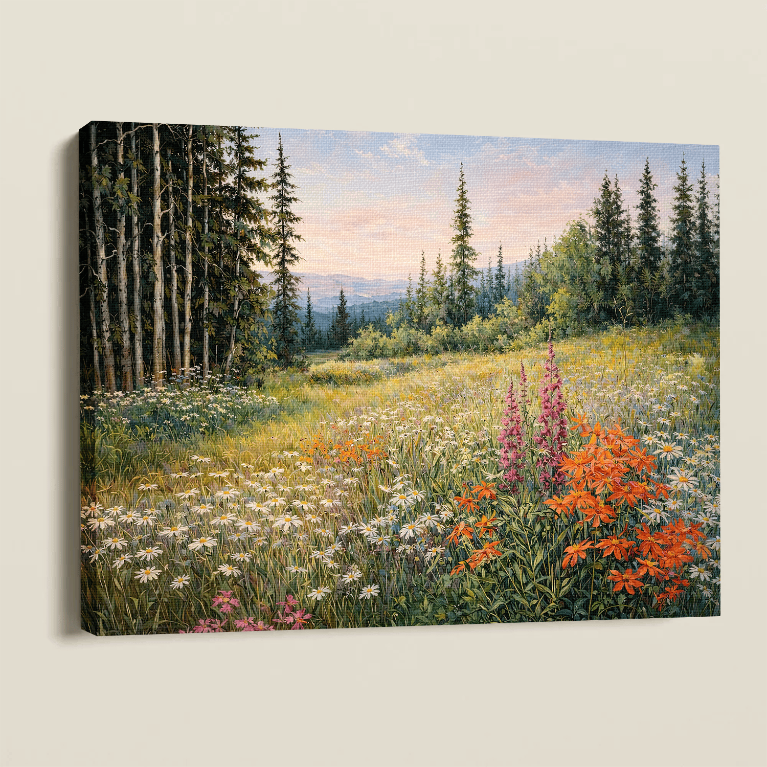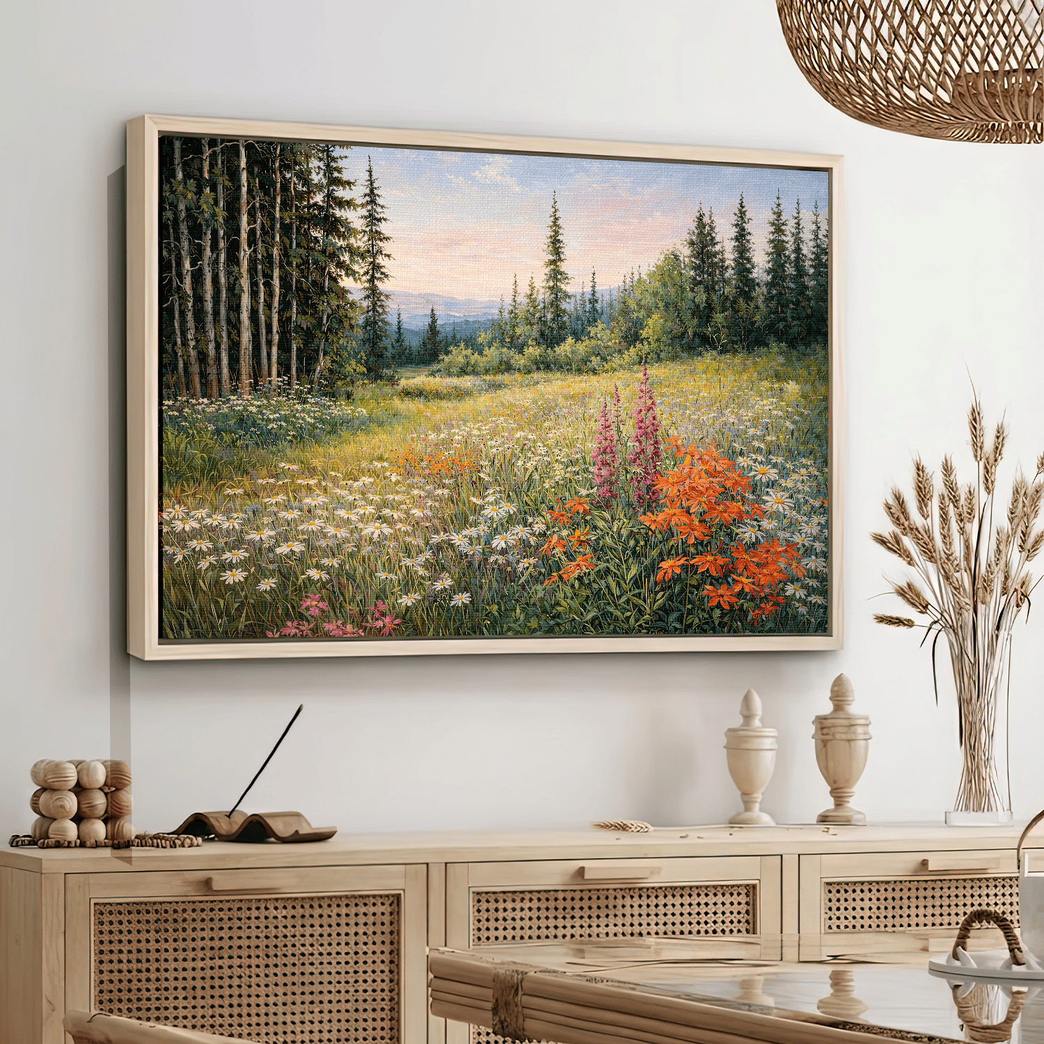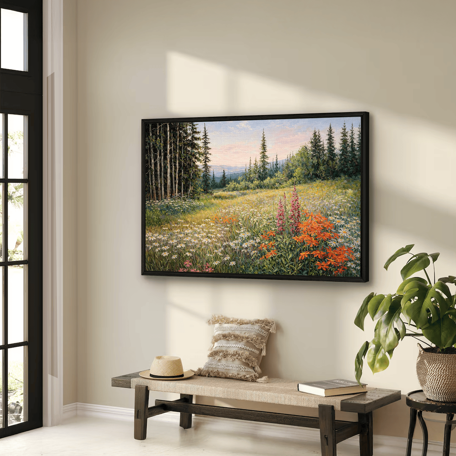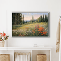 Forest Clearing Floral Landscape Framed Canvas – Quiet Wilderness Scene