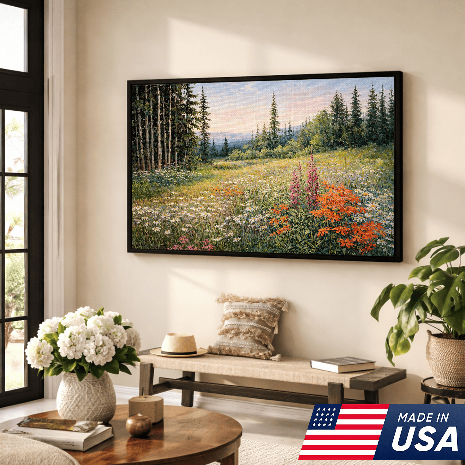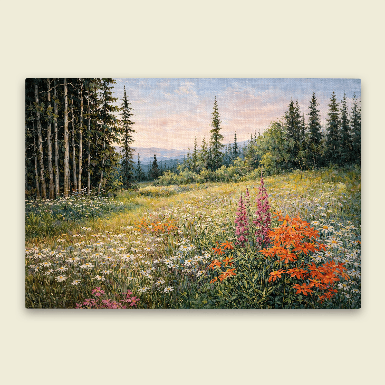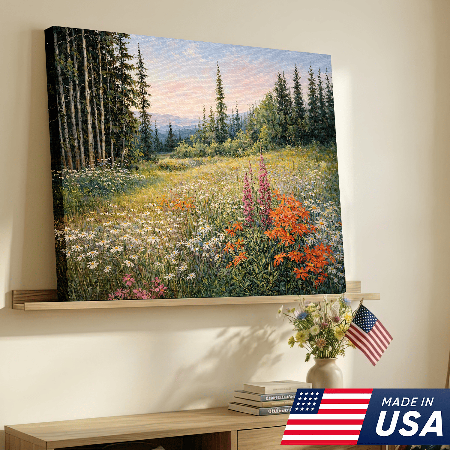 Forest Clearing Floral Landscape Framed Canvas – Quiet Wilderness Scene