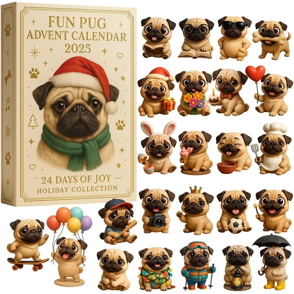 Fun Pug 2025 Advent Calendar, Advent Ornaments, 2025 Advent Calendar, Christmas Countdow Calendar