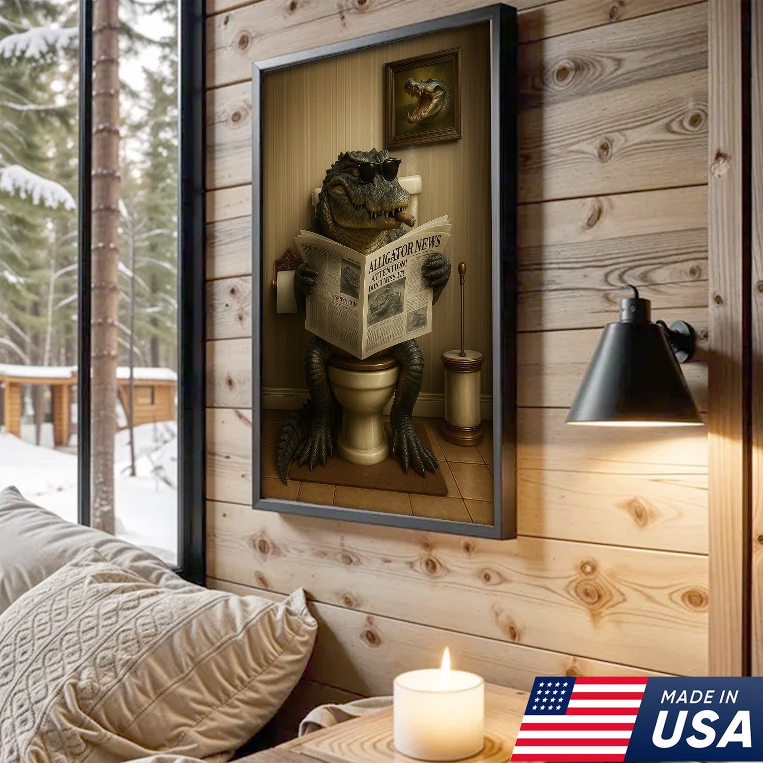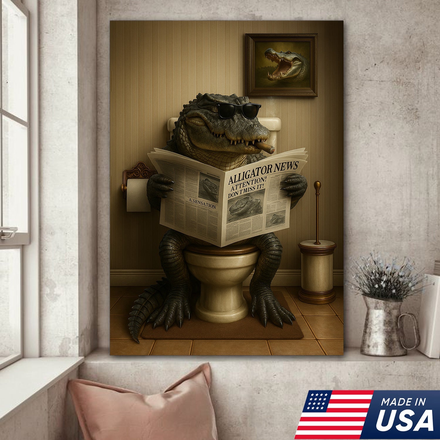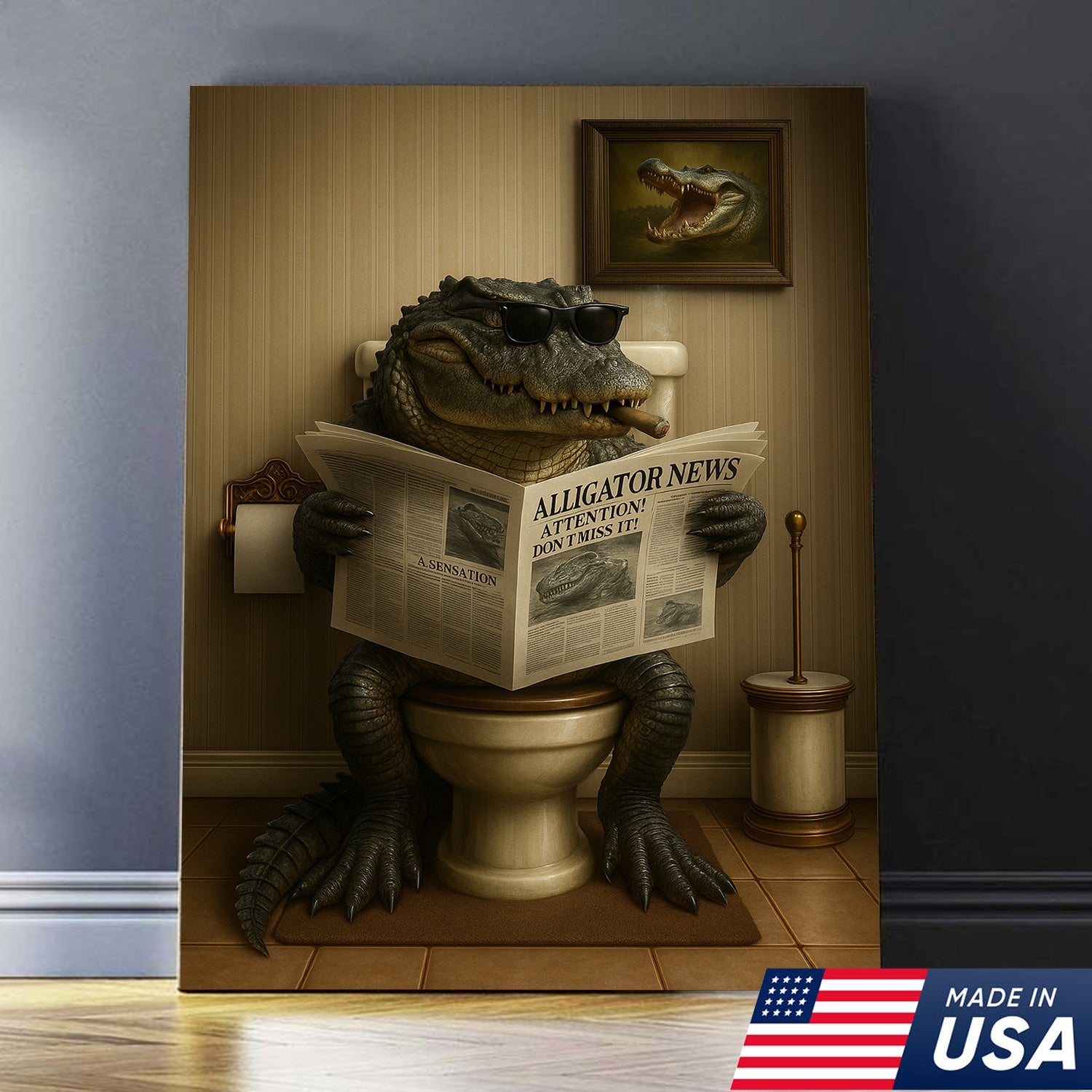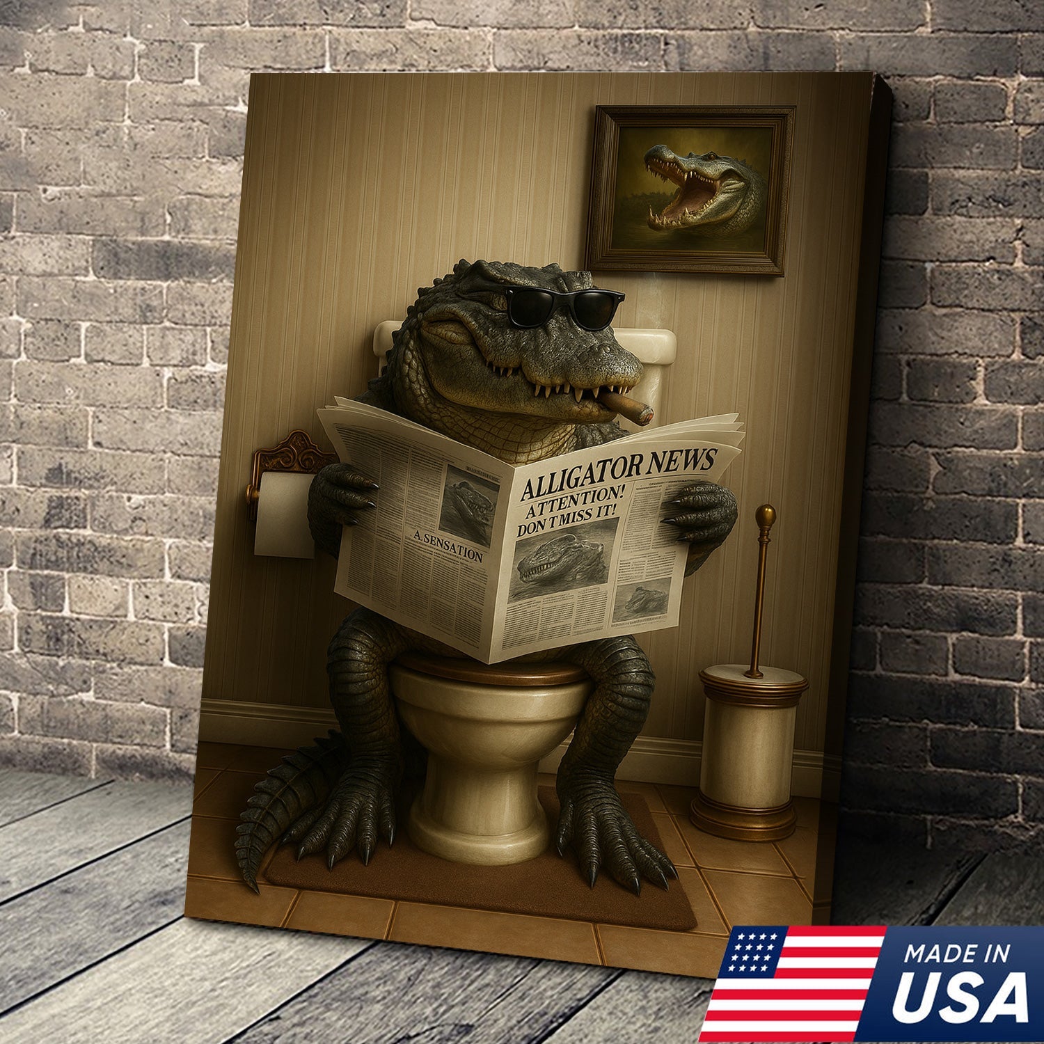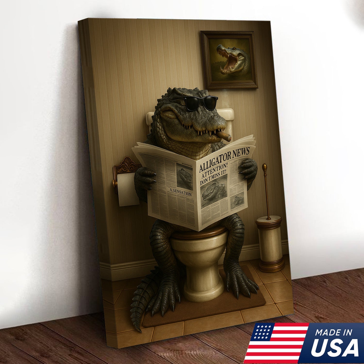 Funny Alligator Bathroom Smoking Canvas Wall Art – Unique Rustic Wildlife Lodge Decor & Gift Idea
