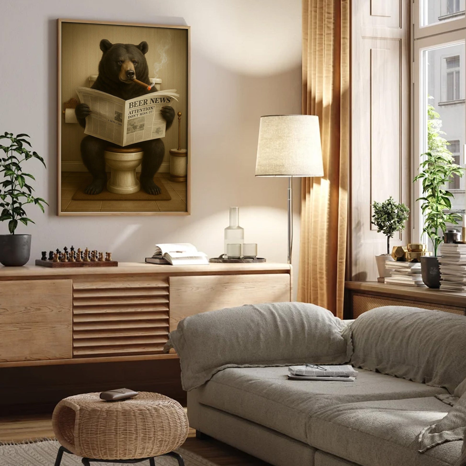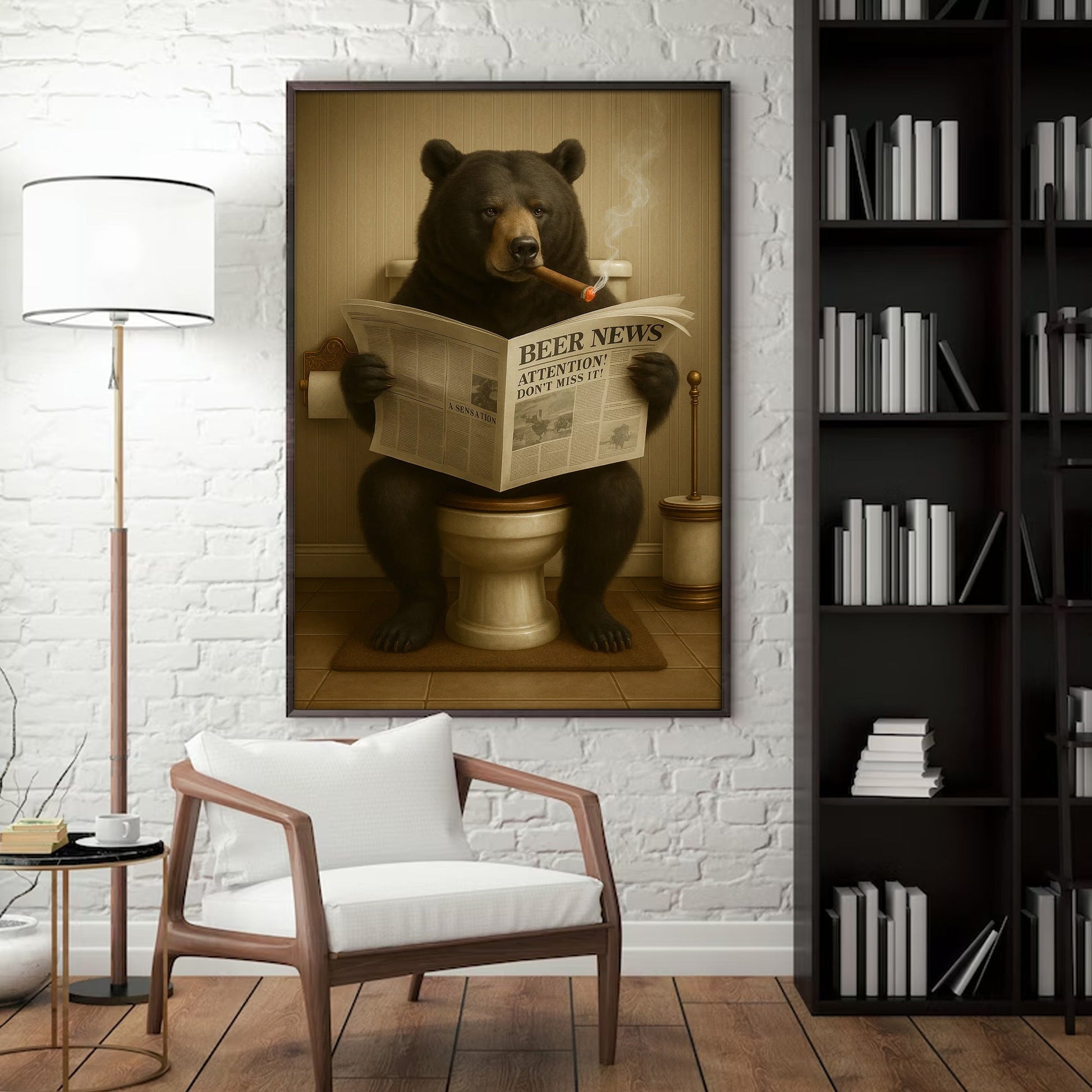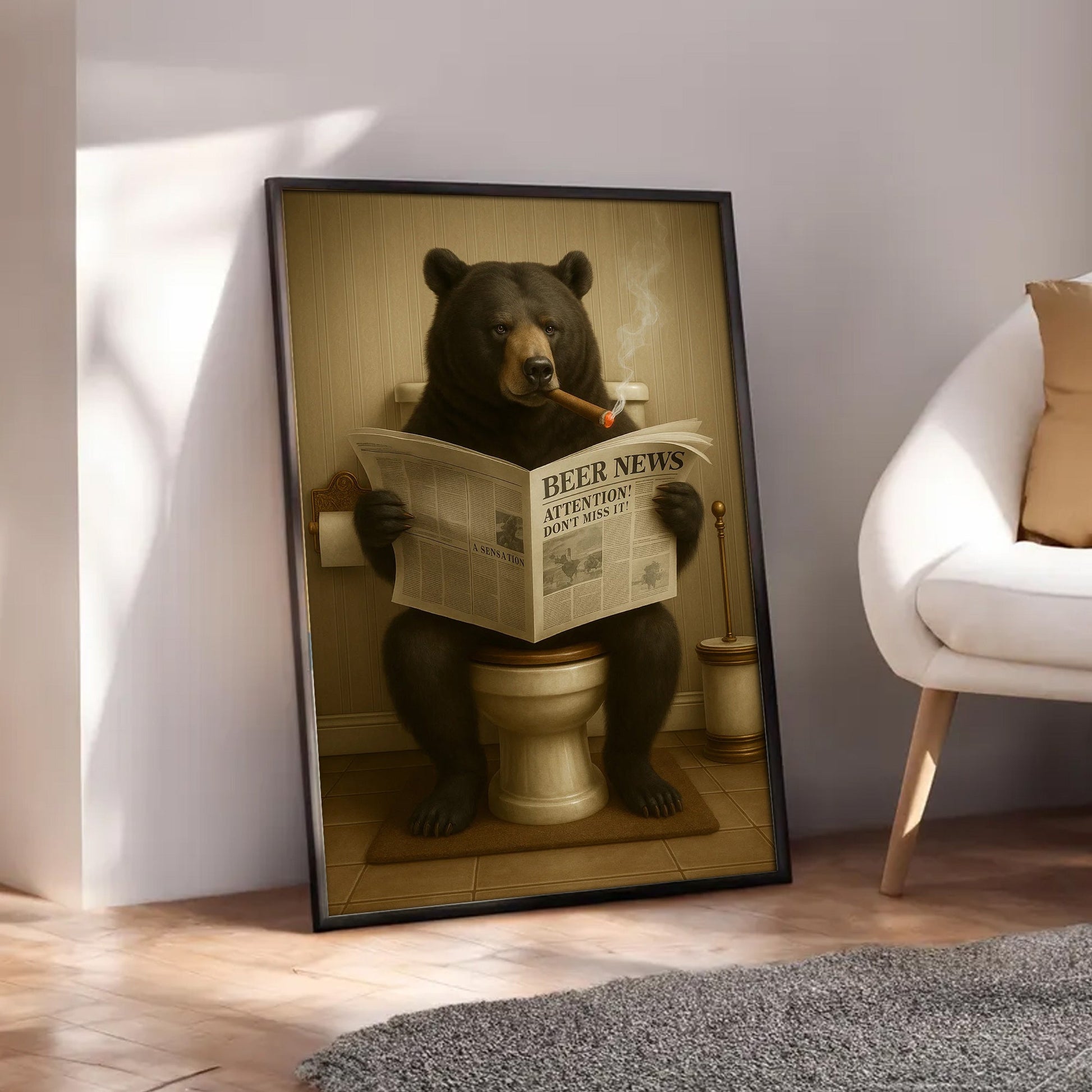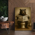 Funny Bear Newspaper Bathroom Canvas Wall Art – Wildlife Animal Poster - Unique Gift for Dad, Hunters & Outdoorsmen