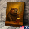 Funny Beaver Smoking with Cocktail Glasses Canvas – Rustic Cabin & Hunting Lodge Wall Art