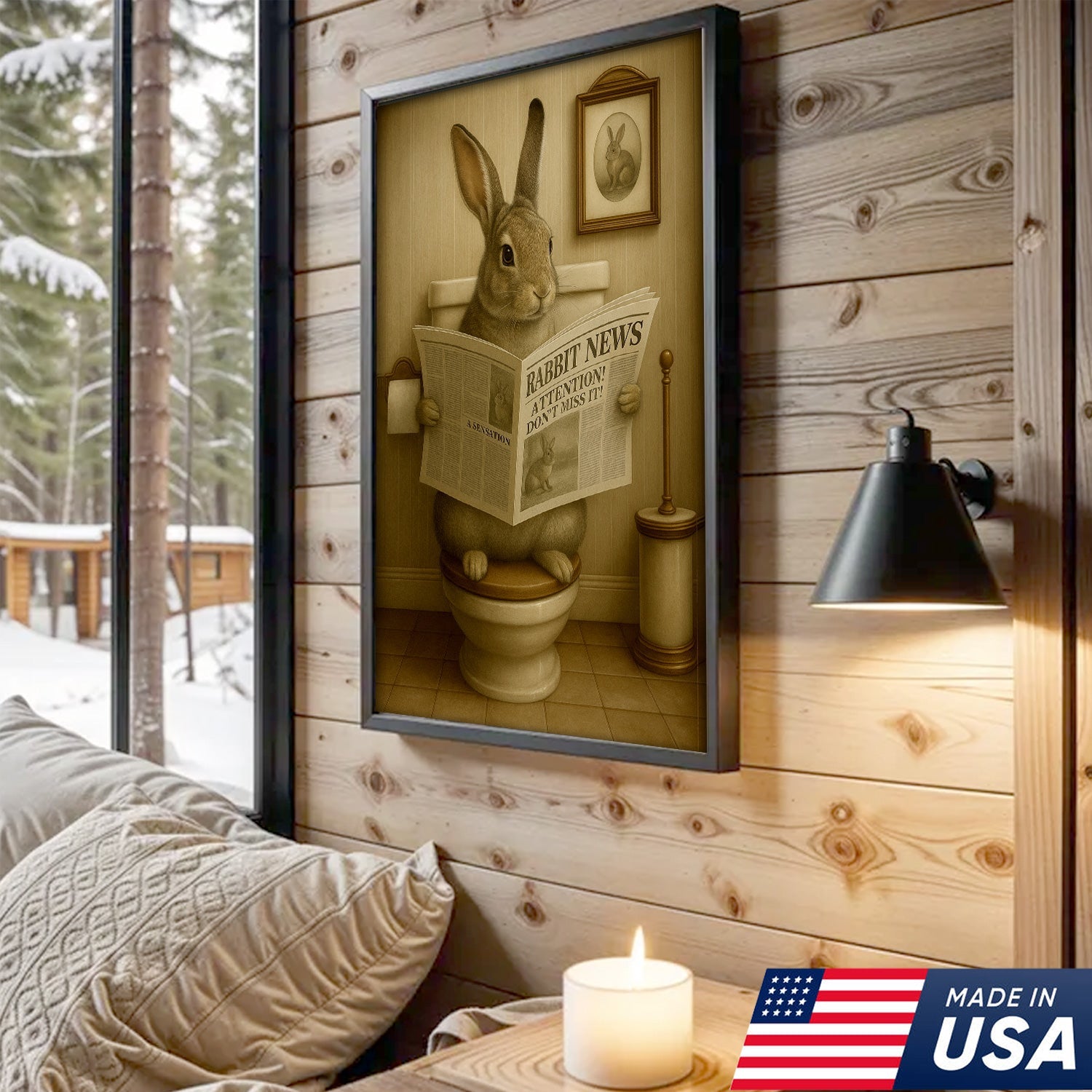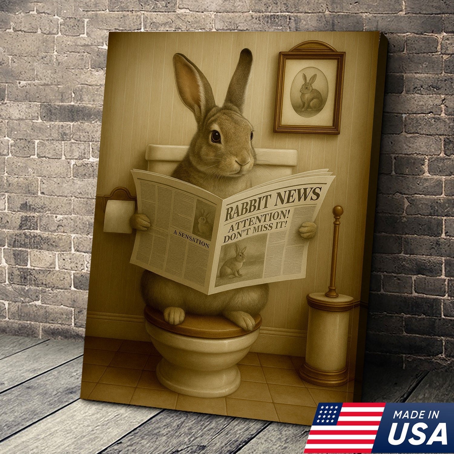 Funny Bunny Rabbit Bathroom Canvas – Unique Rustic Wildlife Decor Gift for Hunting Enthusiasts