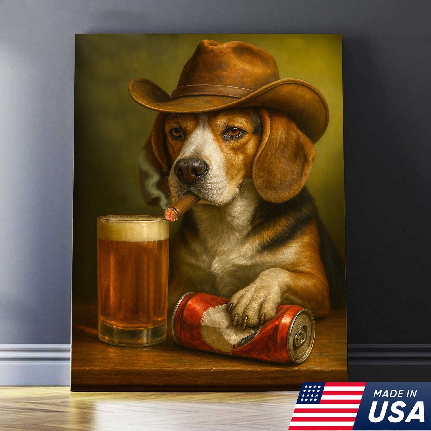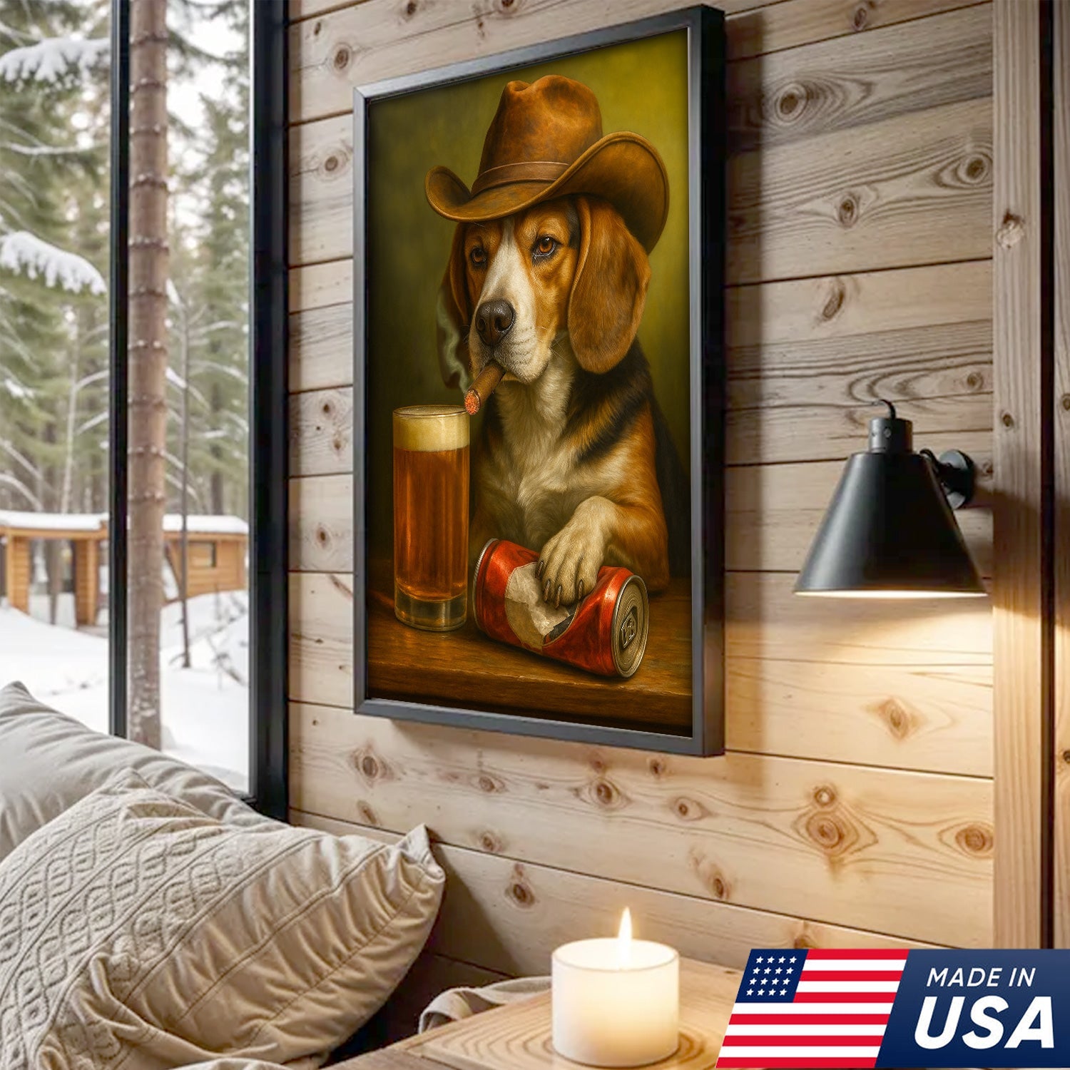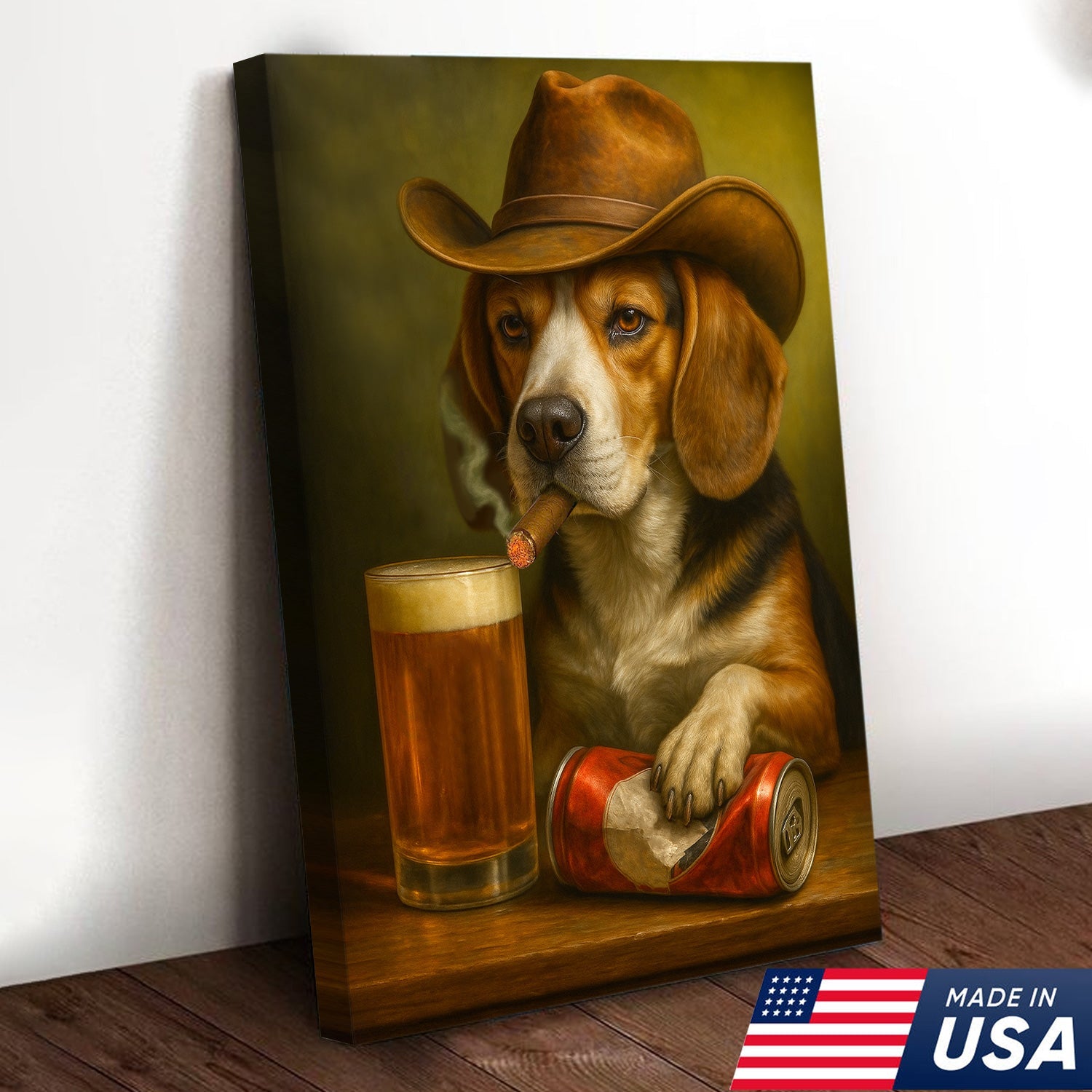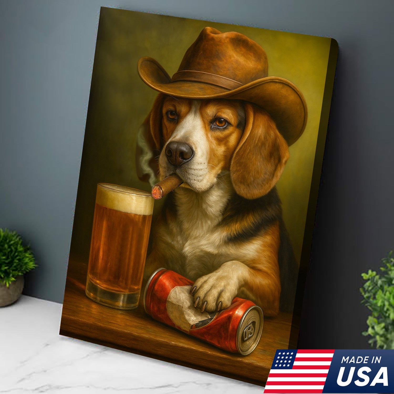 Funny Cowboy Dog Canvas Wall Art - Rustic Bar Wall Art Gift for Hunters, Outdoorsmen & Man Caves