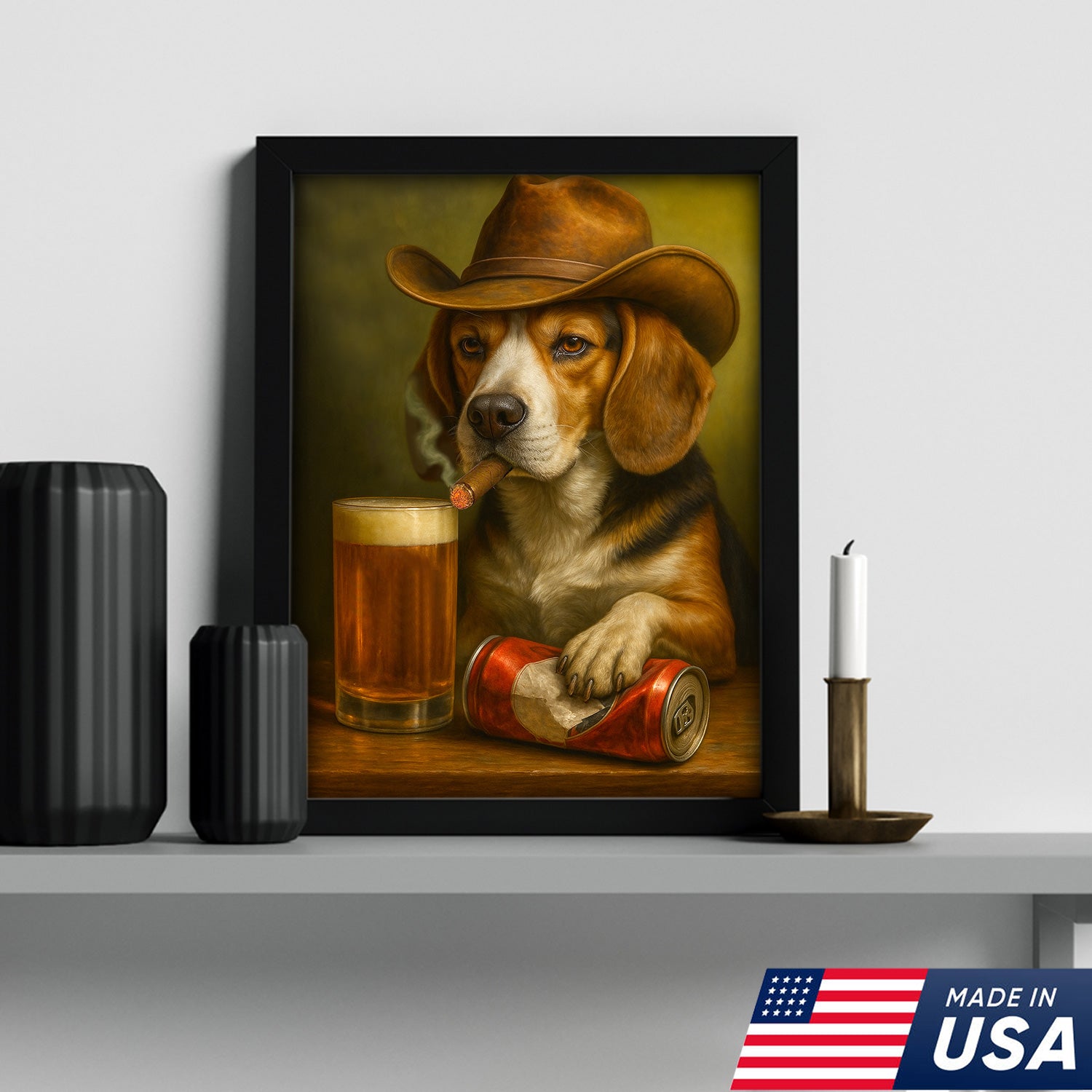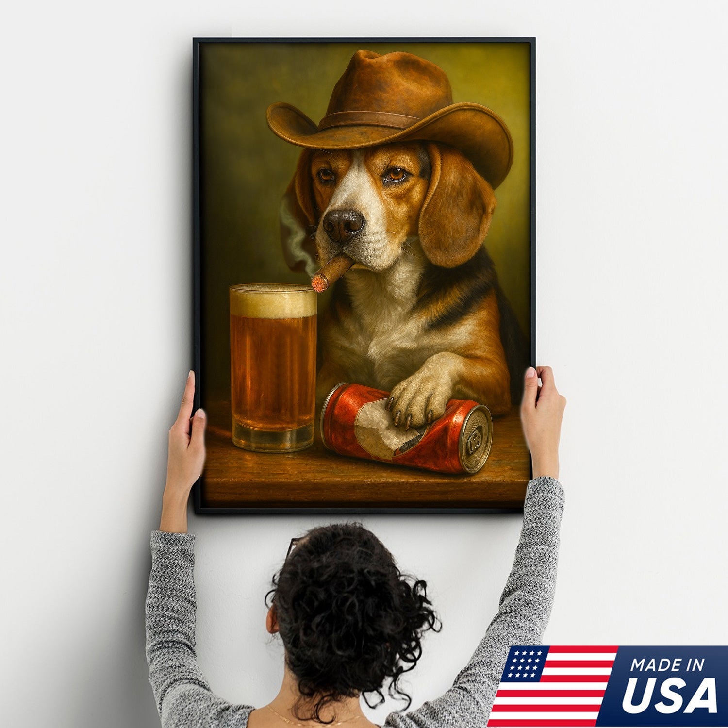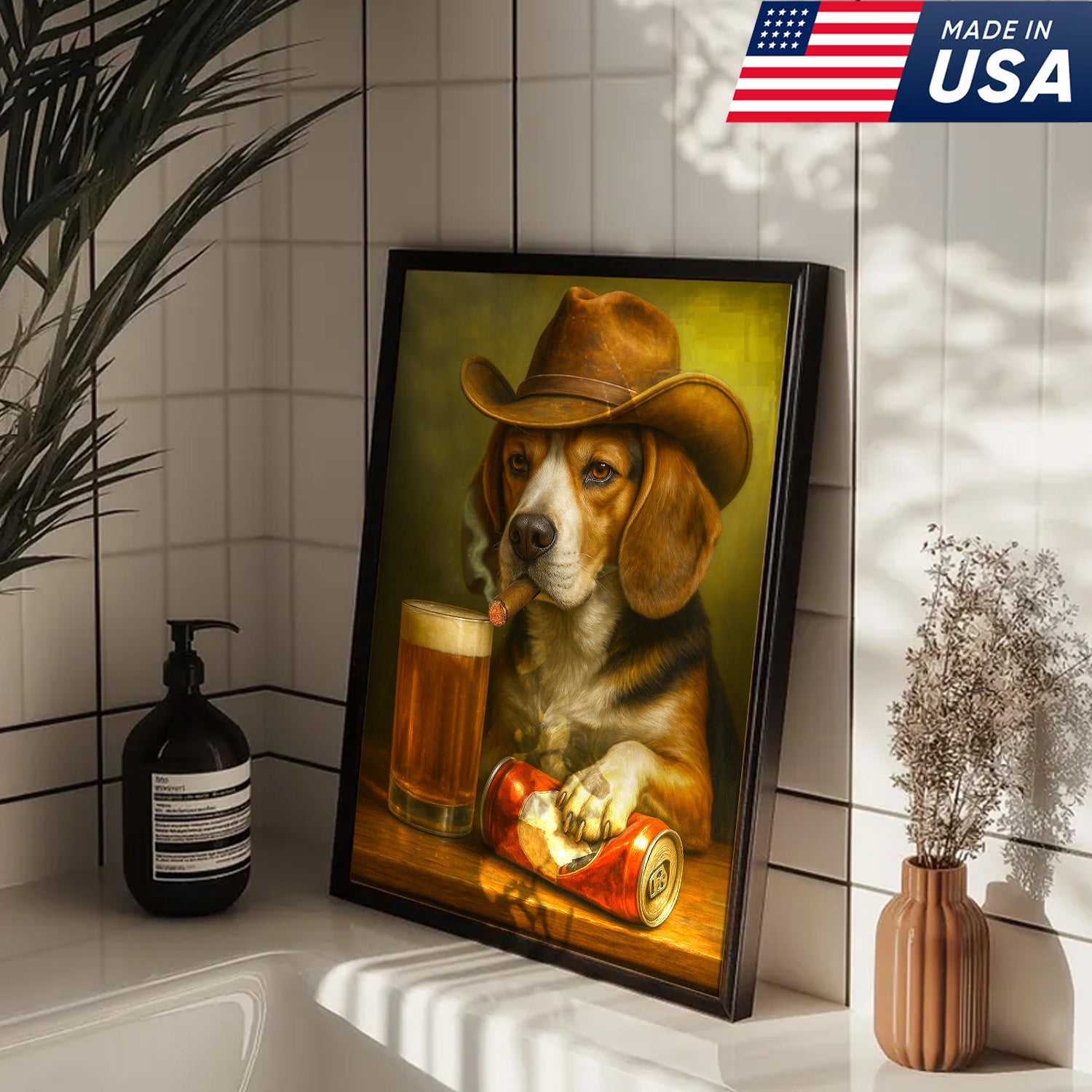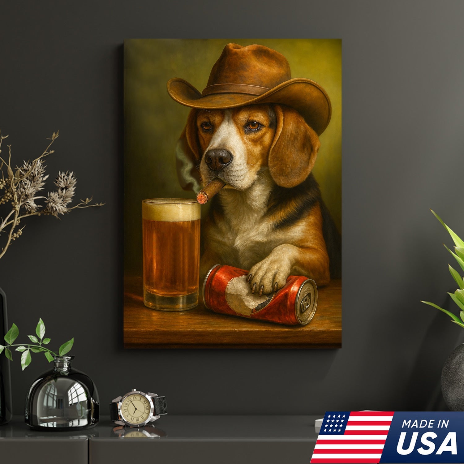 Funny Cowboy Dog Canvas Wall Art - Rustic Bar Wall Art Gift for Hunters, Outdoorsmen & Man Caves