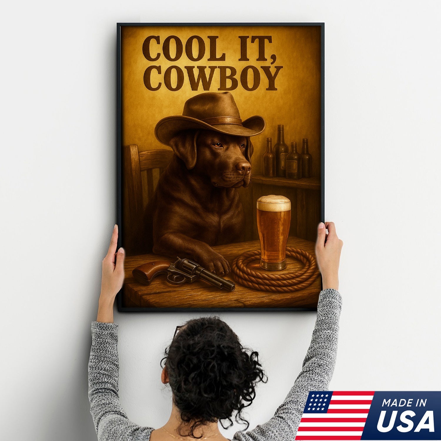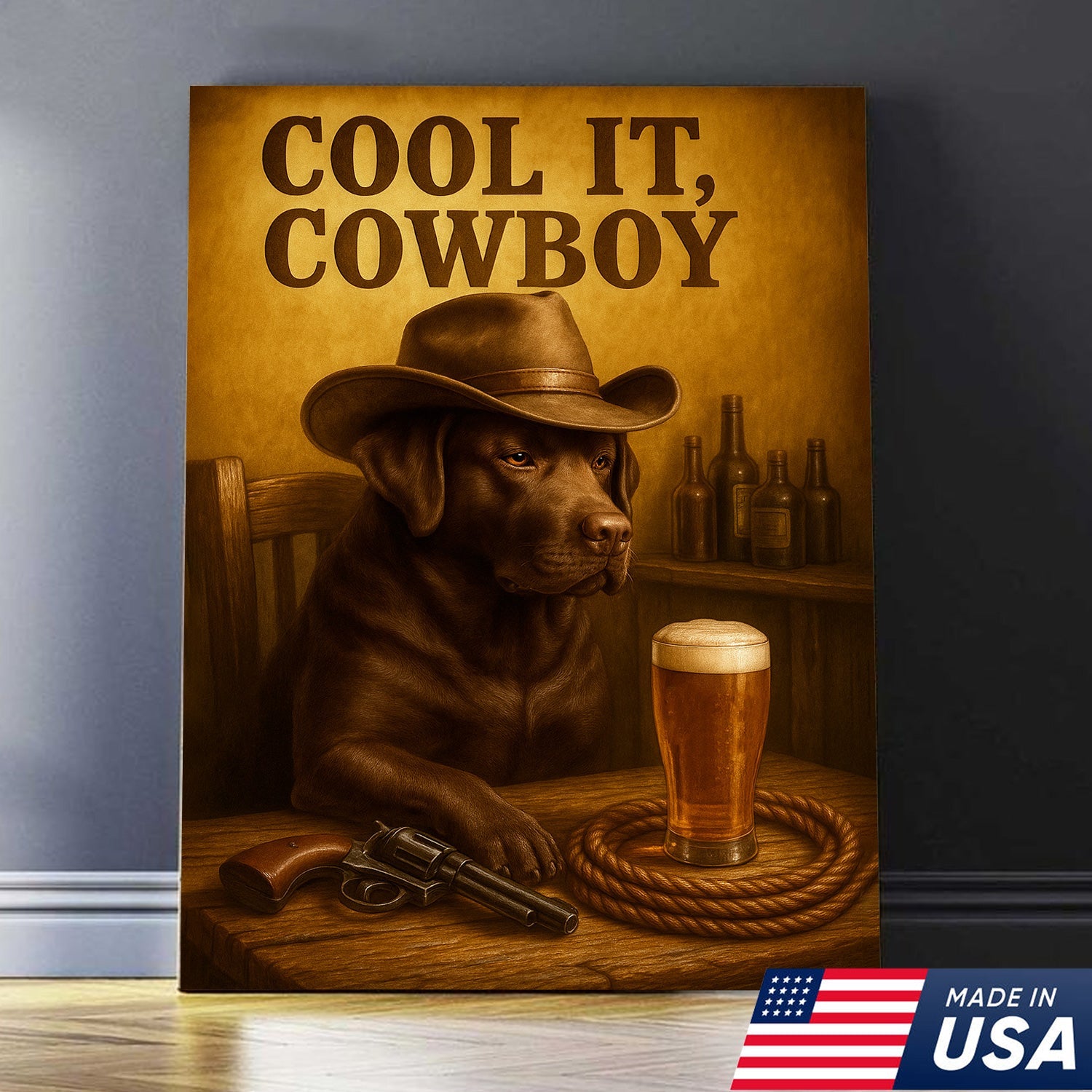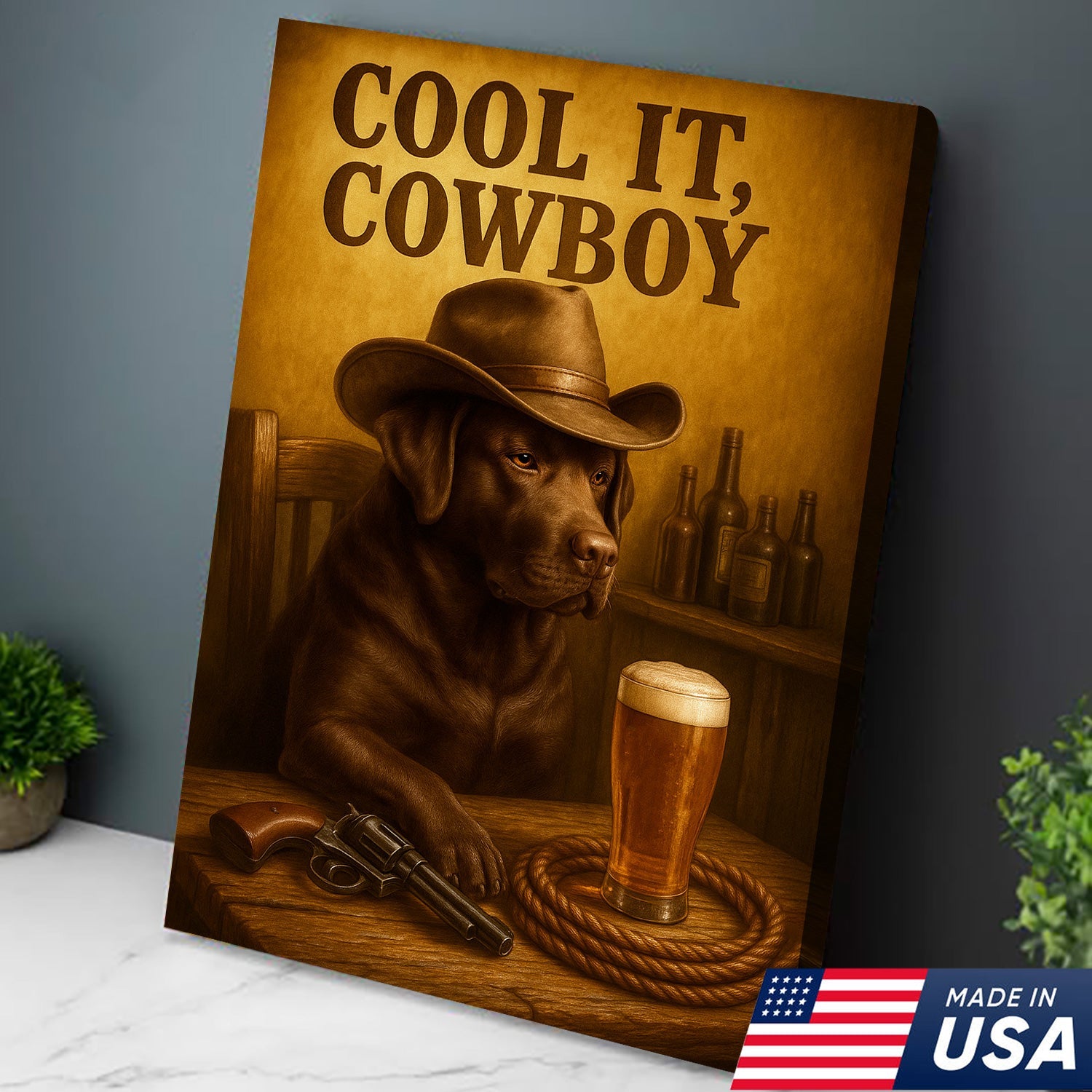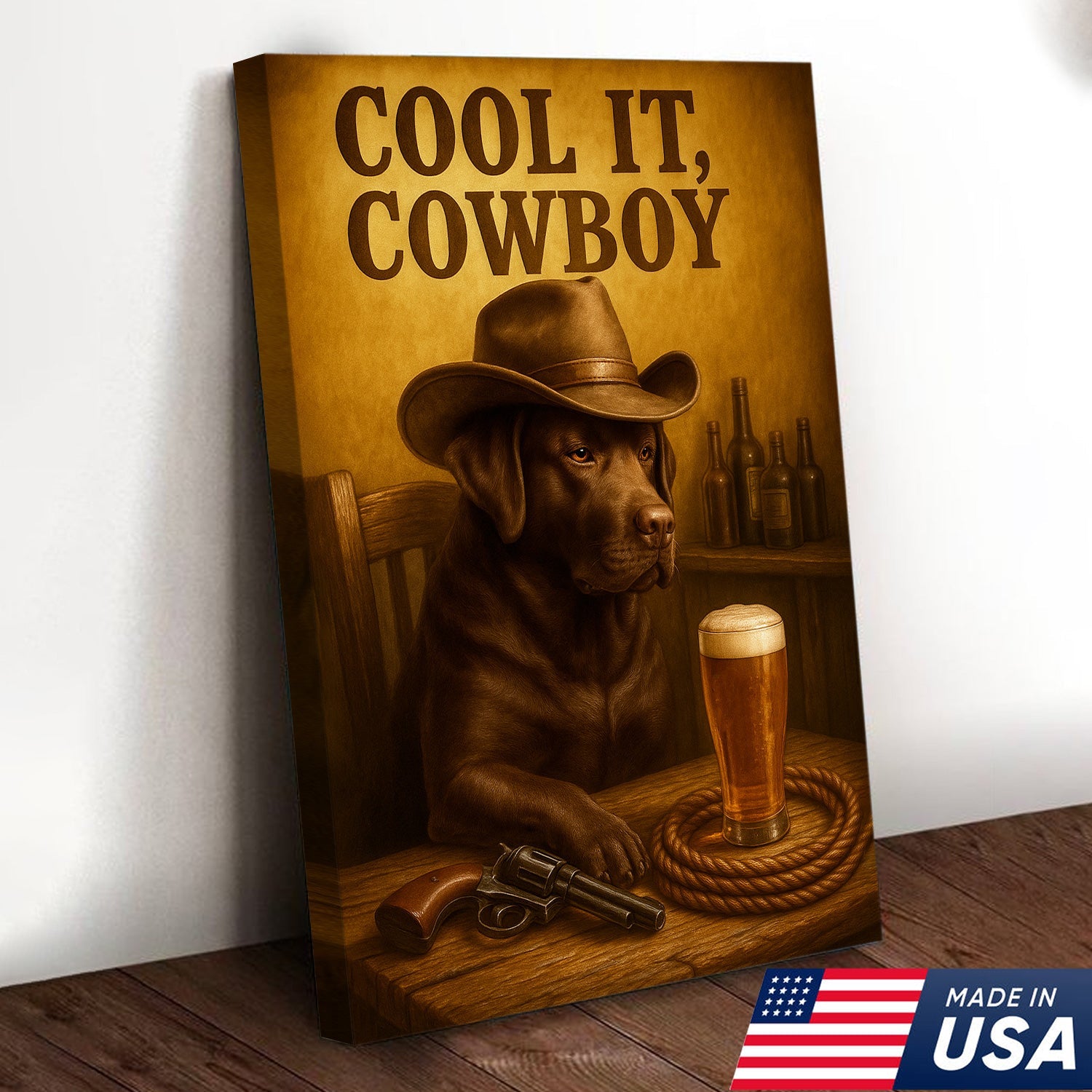 Funny Cowboy Labrador Dog Canvas Wall Art – Rustic Beer Bar Decor Gift for Hunters, Lodge and Cabin