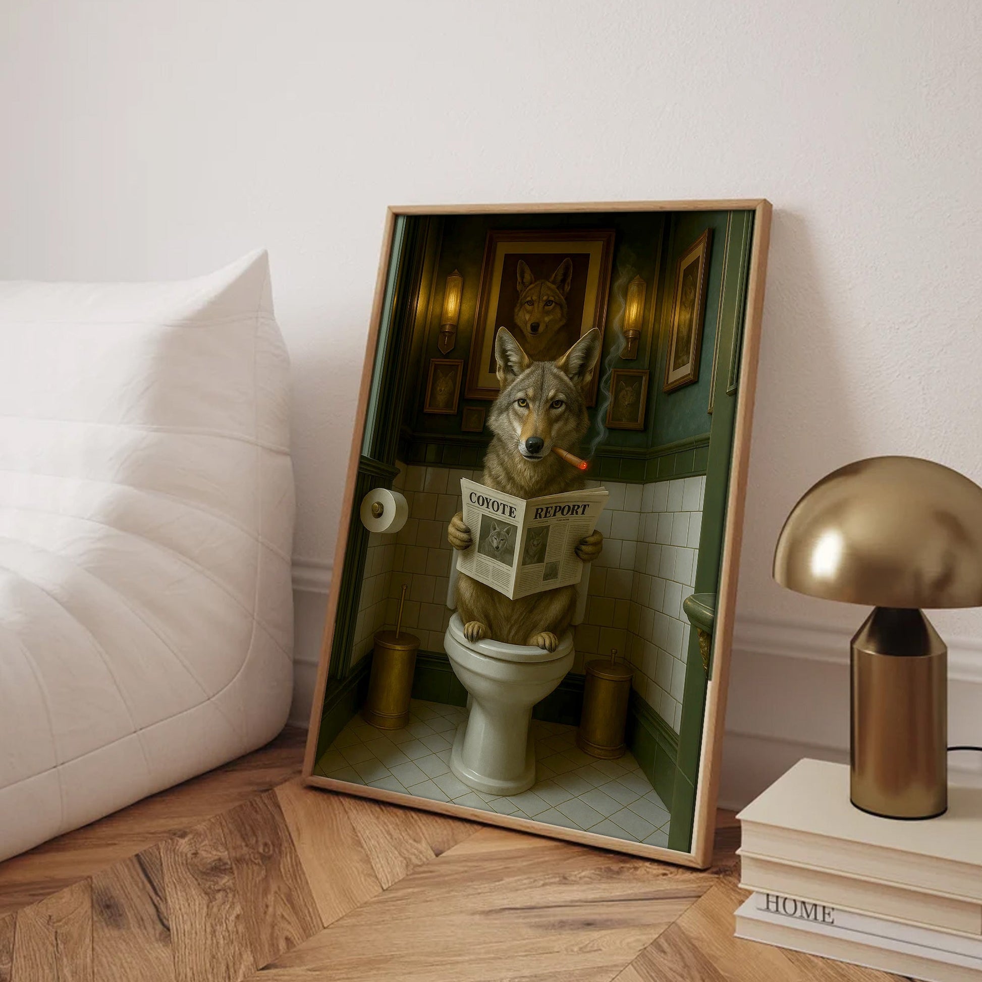 Funny Coyote Bathroom Canvas – Wild Dog on Toilet Reading Newspaper - Wolf Coyote - Rustic Lodge Decor, Gift for Outdoorsmen