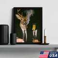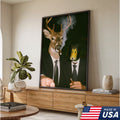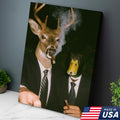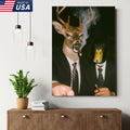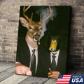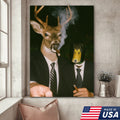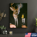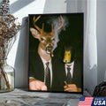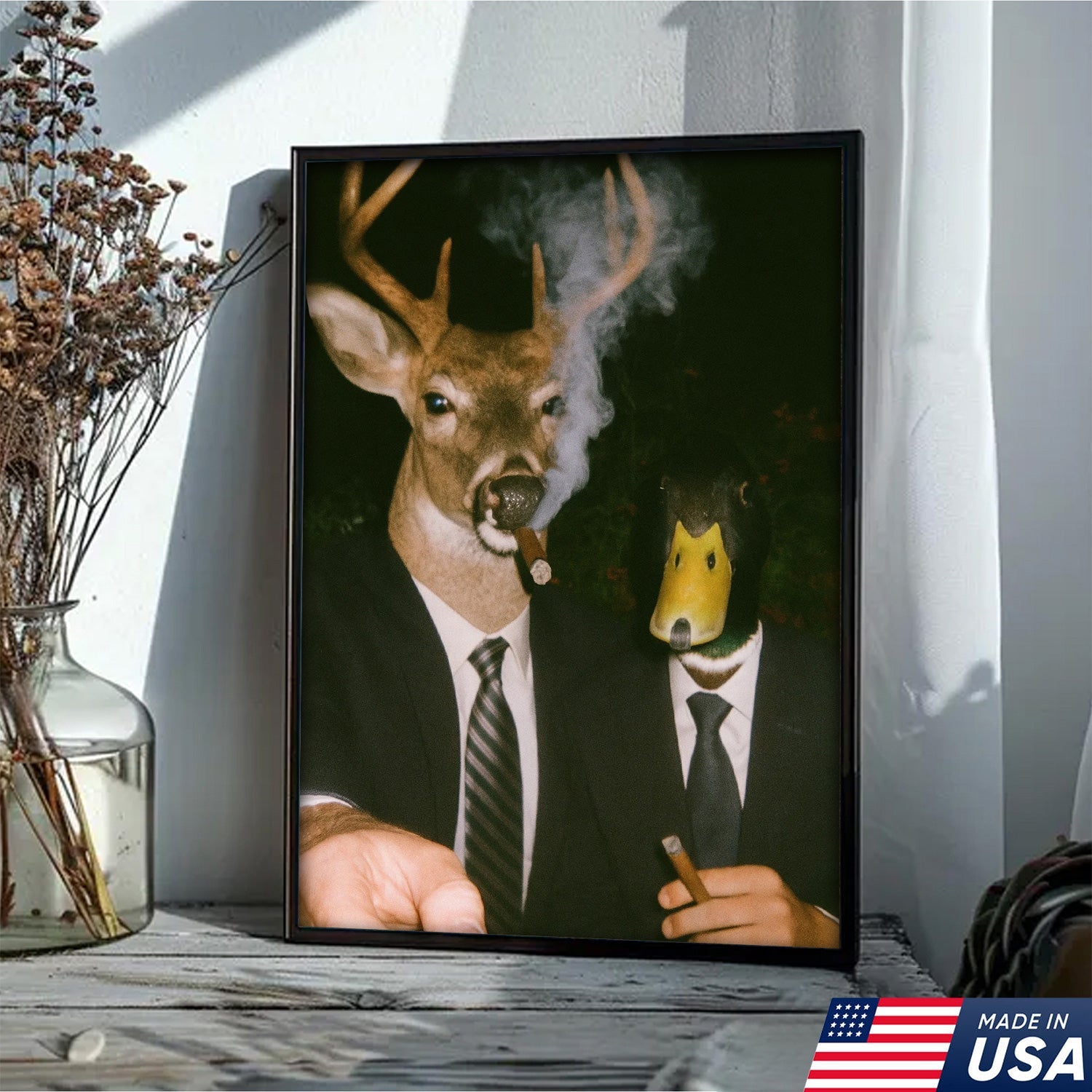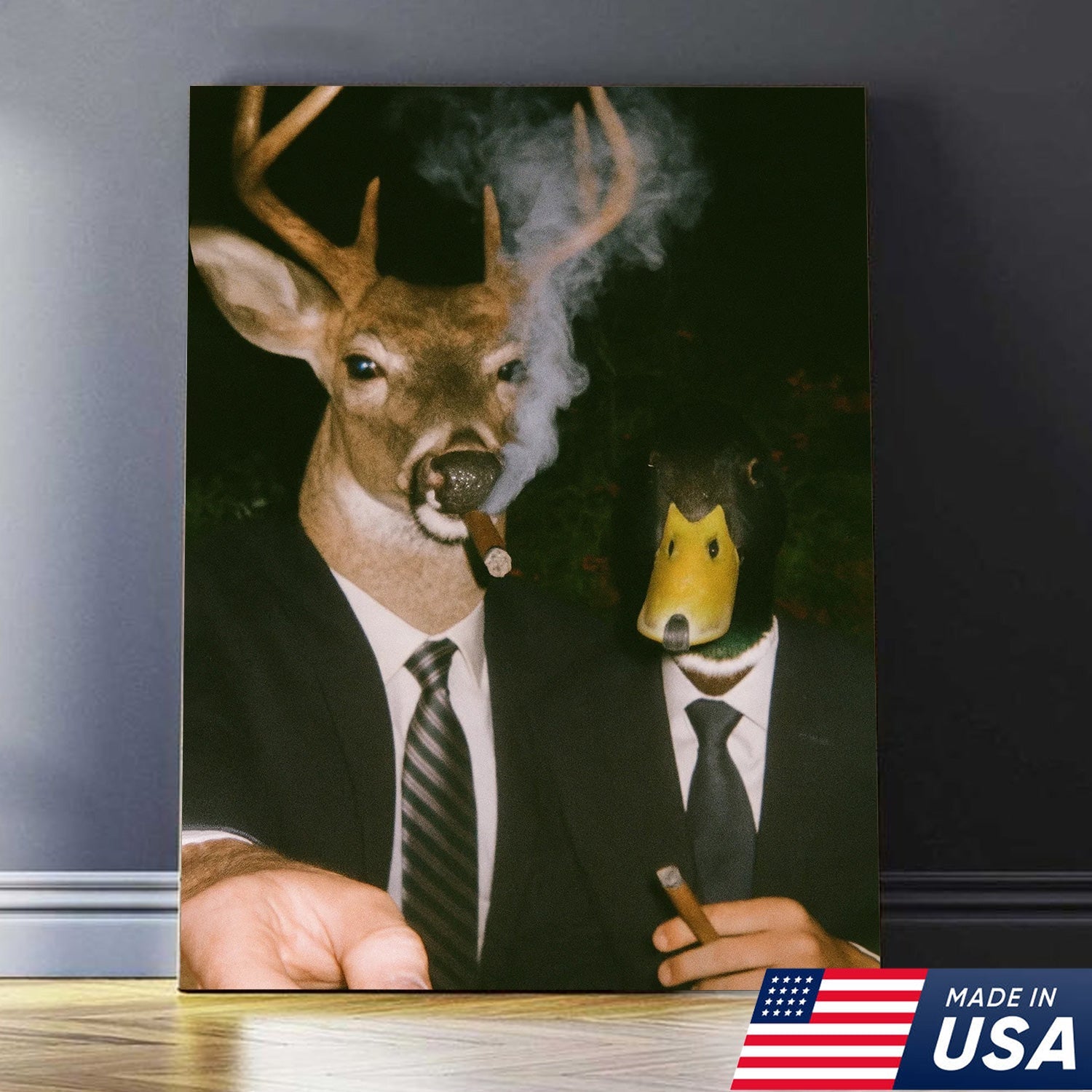 Funny Deer and Duck Canvas Wall Art - Hilarious Animal Duo in Suits - Unique Wildlife Artwork for Home Decor