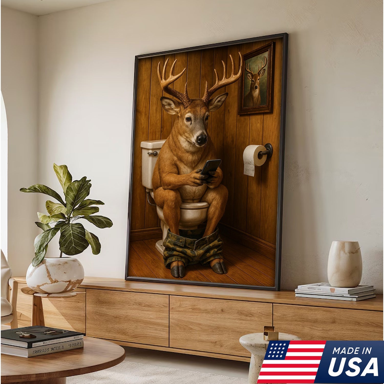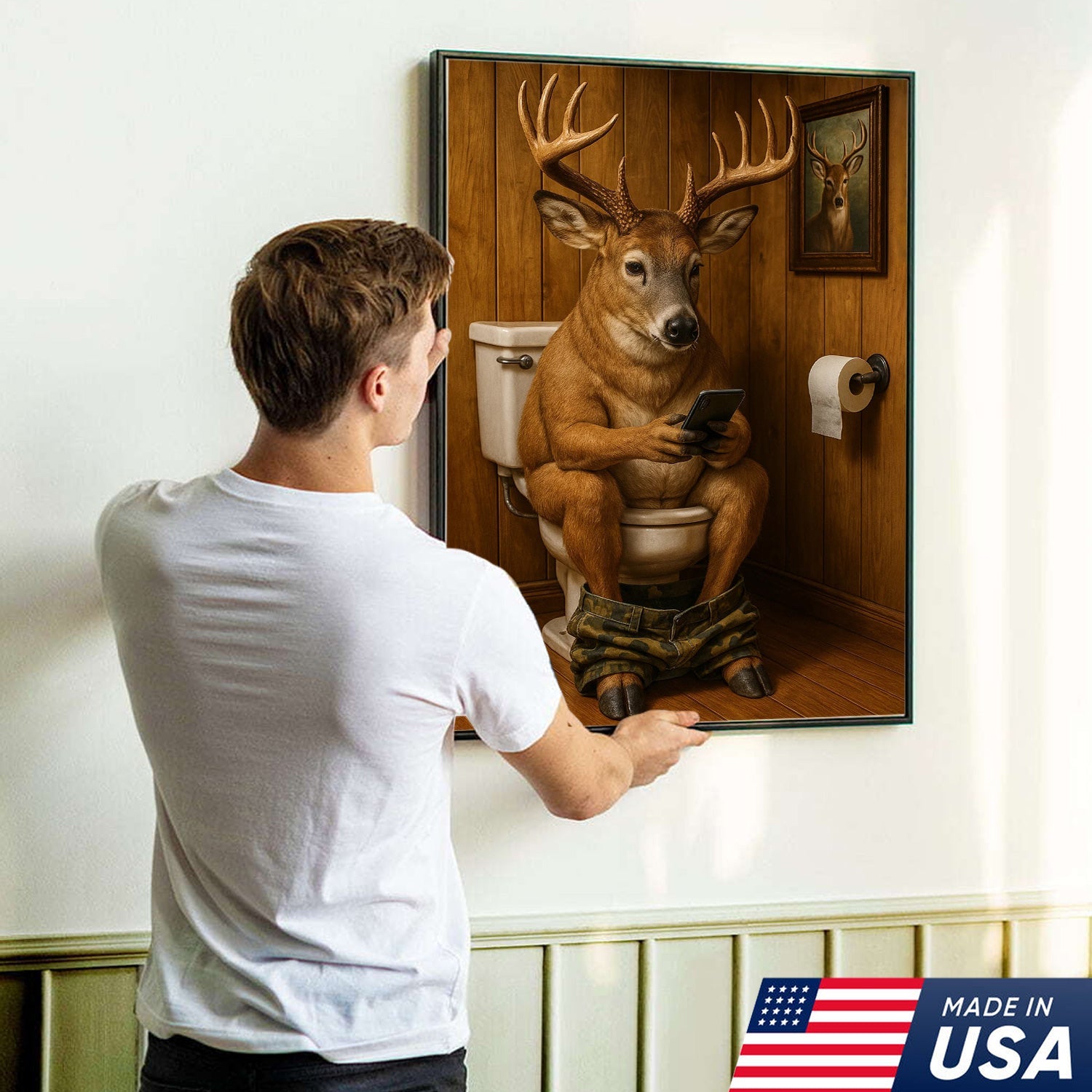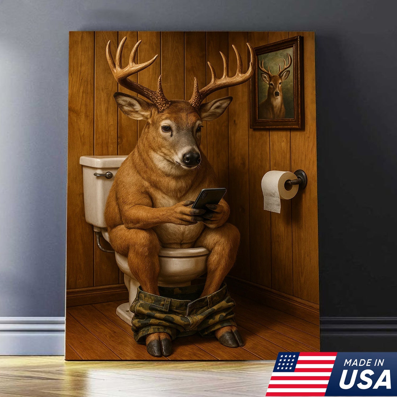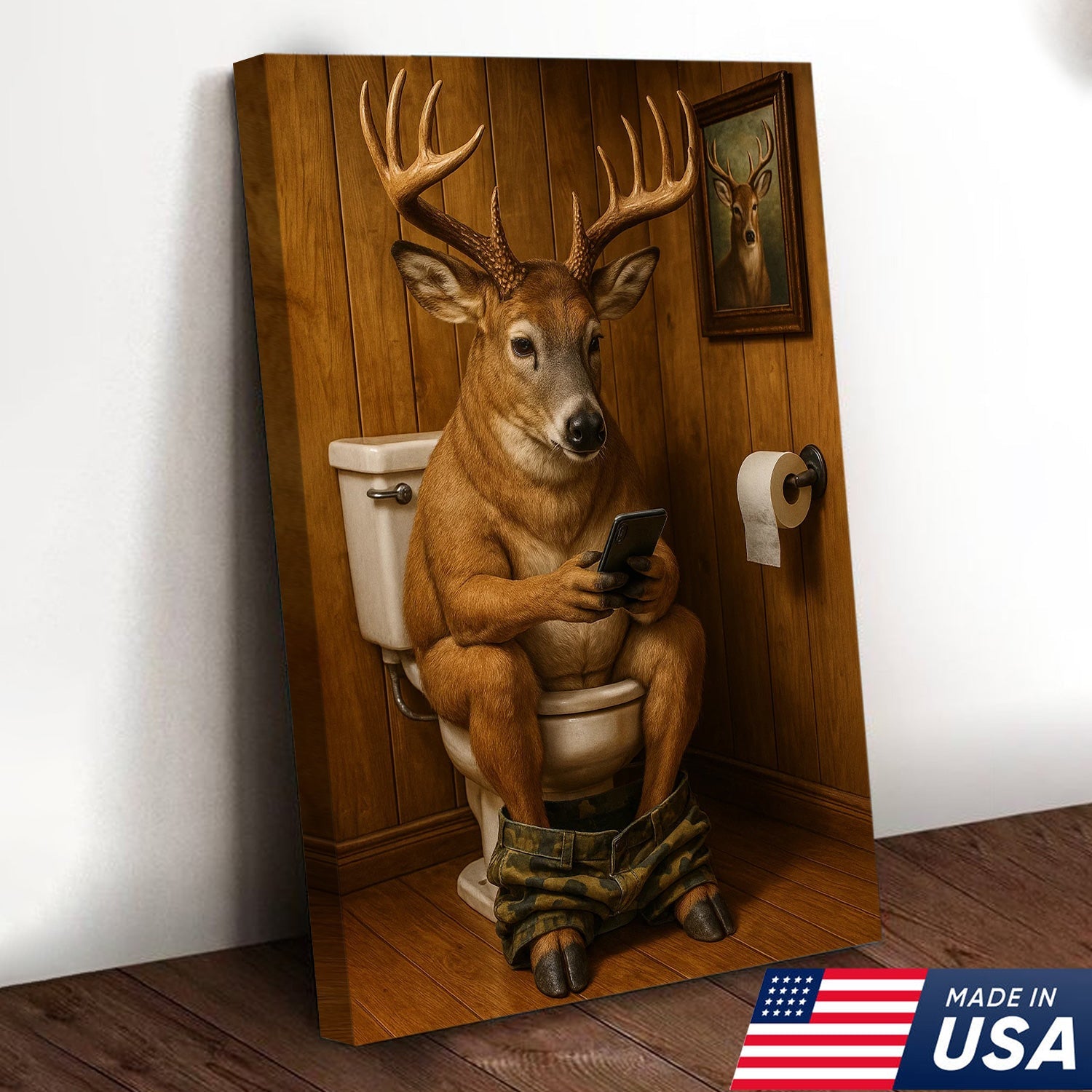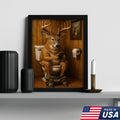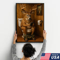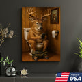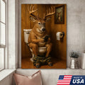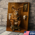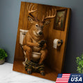Funny Deer Bathroom Canvas Wall Art – Hilarious Rustic Hunting Lodge Home Decor Gift