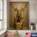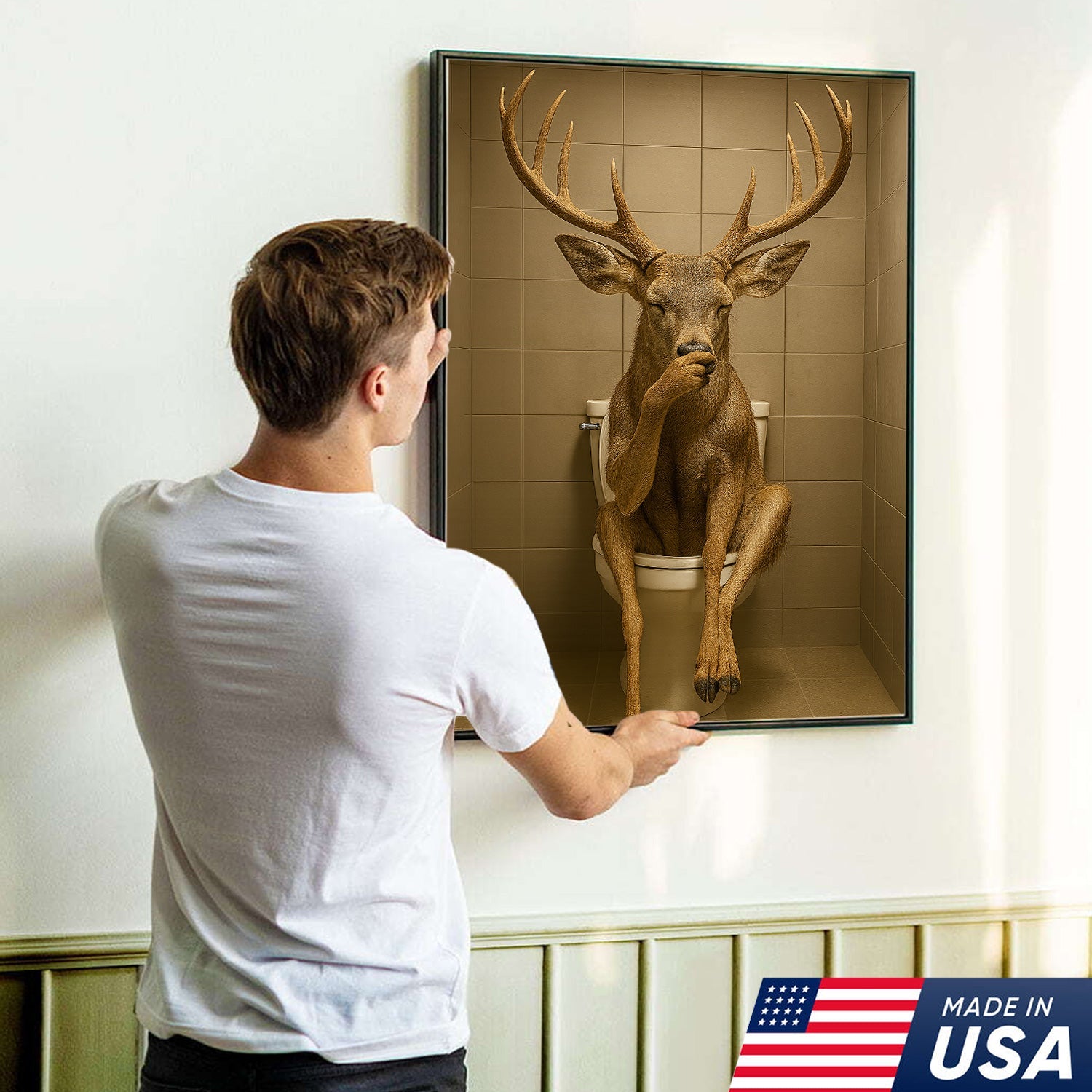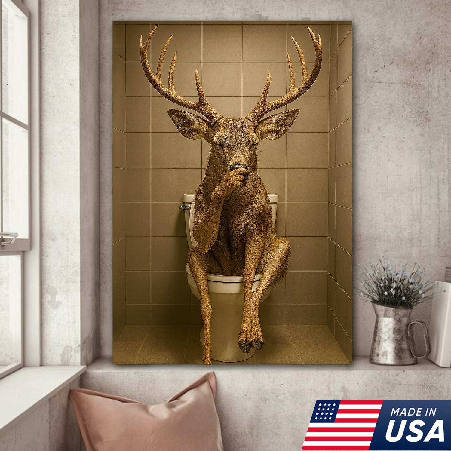 Funny Deer Bathroom Canvas Wall Art – Rustic Toilet Canvas for Cabin, Lodge & Man Cave Decor
