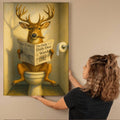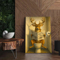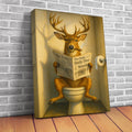 Funny Deer on Toilet Canvas – Quirky Animal Art Print with Smoking and Newspaper for Unique Wall Decor