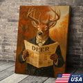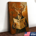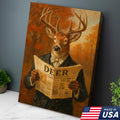 Funny Deer Reading Newspaper Canvas – Rustic Hunting Lodge Wall Art