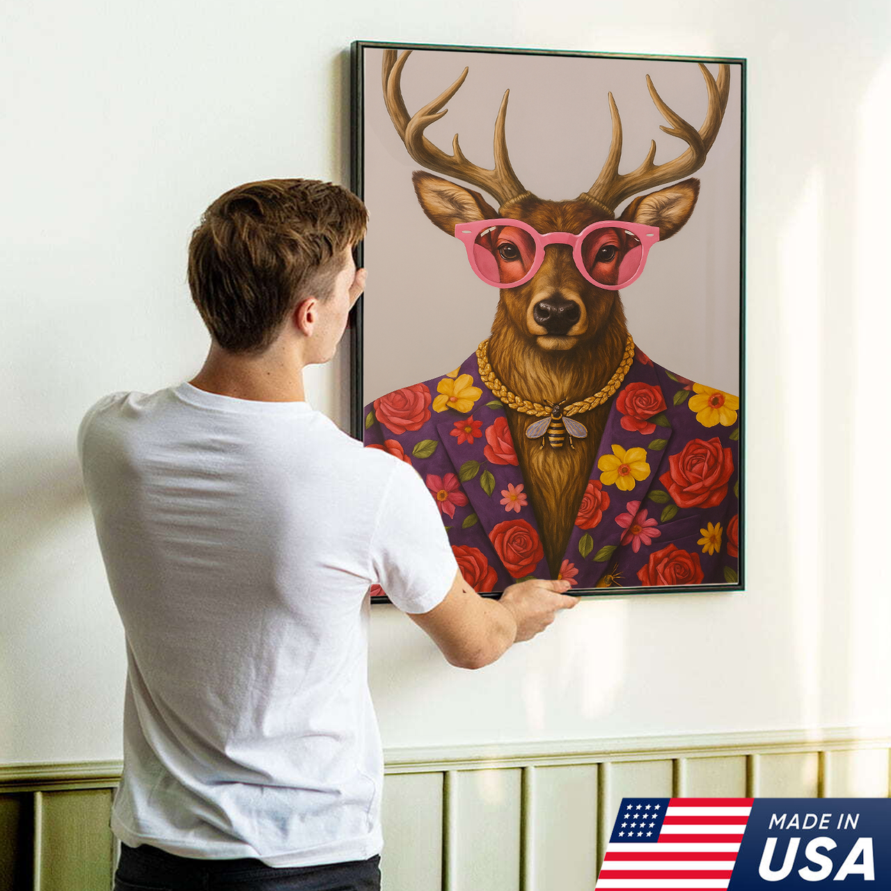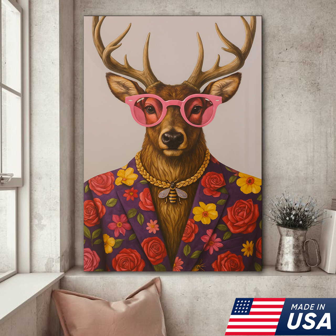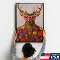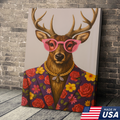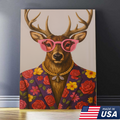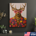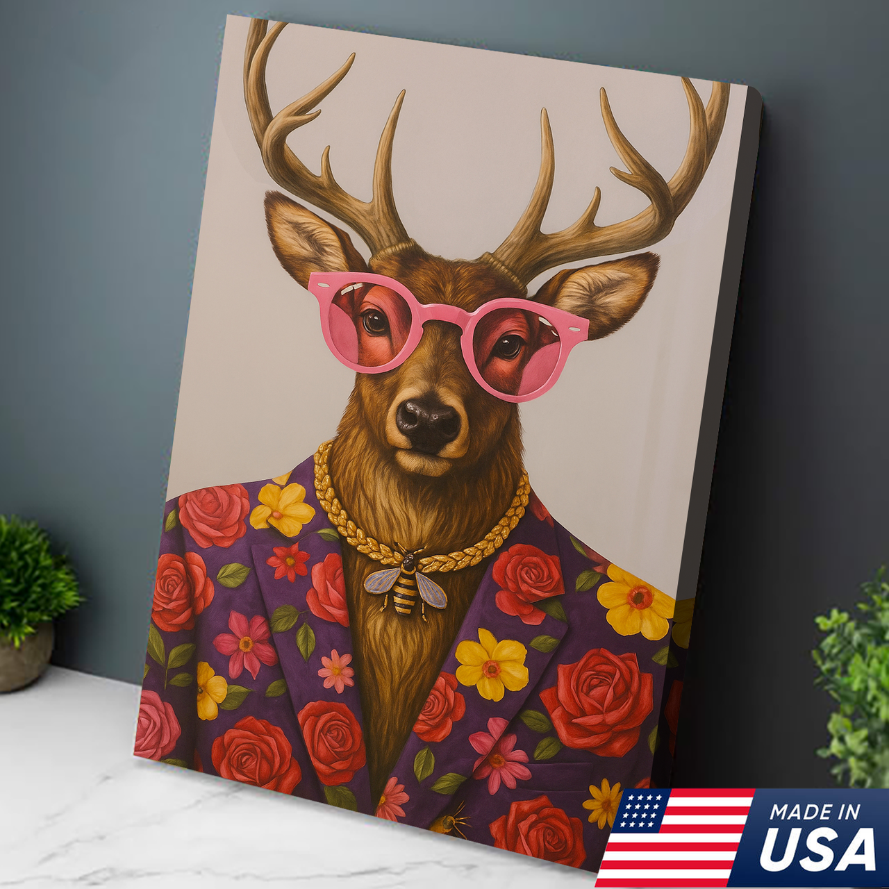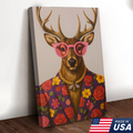 Funny Deer Wall Art Canvas – Stylish Hunter Canvas with Floral Suit & Sunglasses