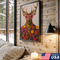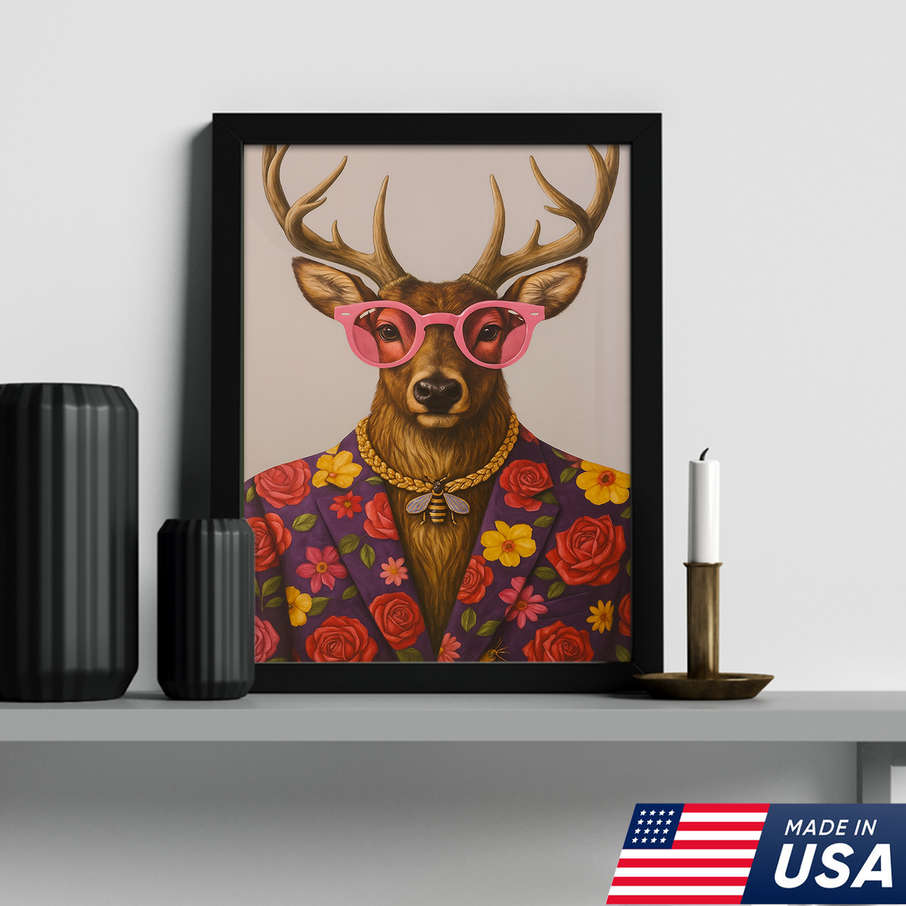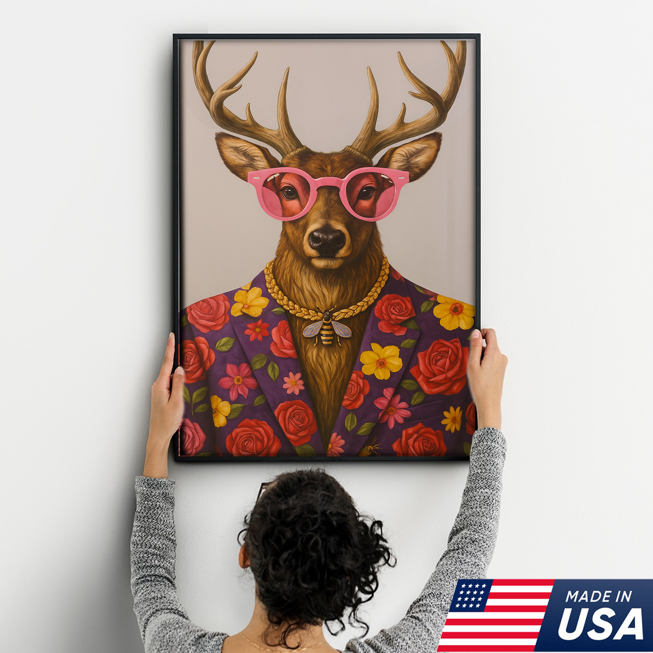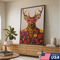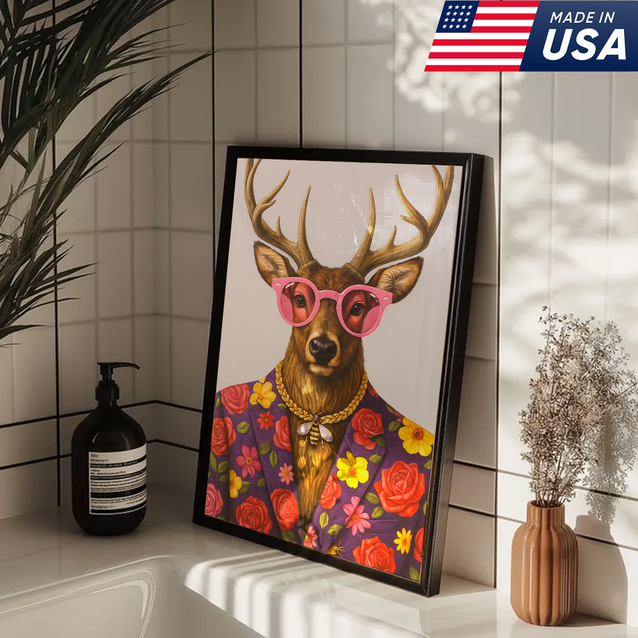 Funny Deer Wall Art Canvas – Stylish Hunter Canvas with Floral Suit & Sunglasses